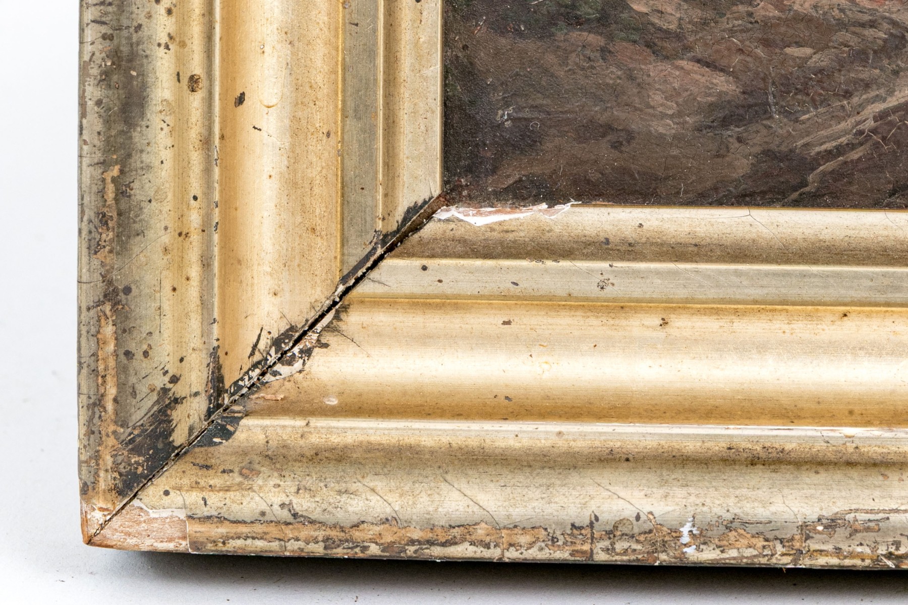 Wear to the frame with losses to the gesso and gilt finish, lower left corner not aligned. Despite wear the artwork presents well.