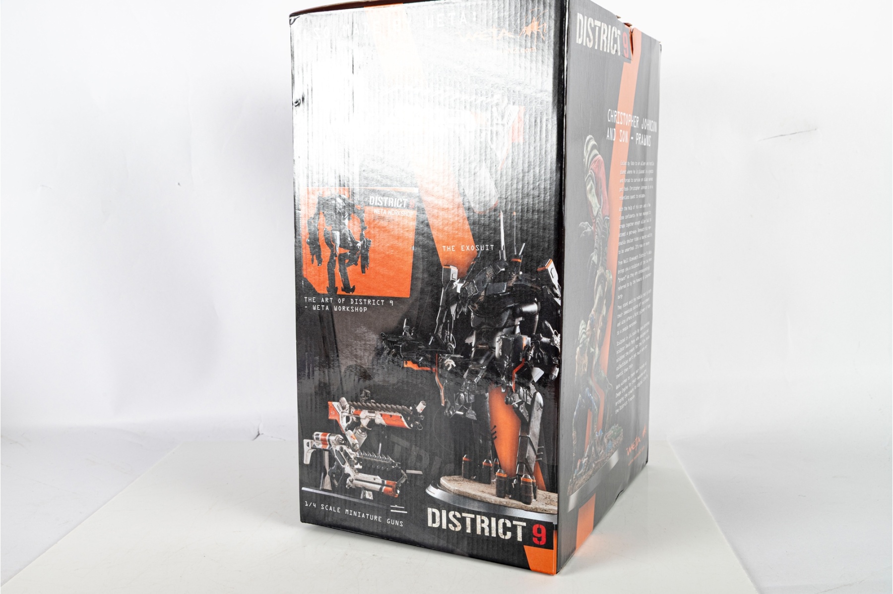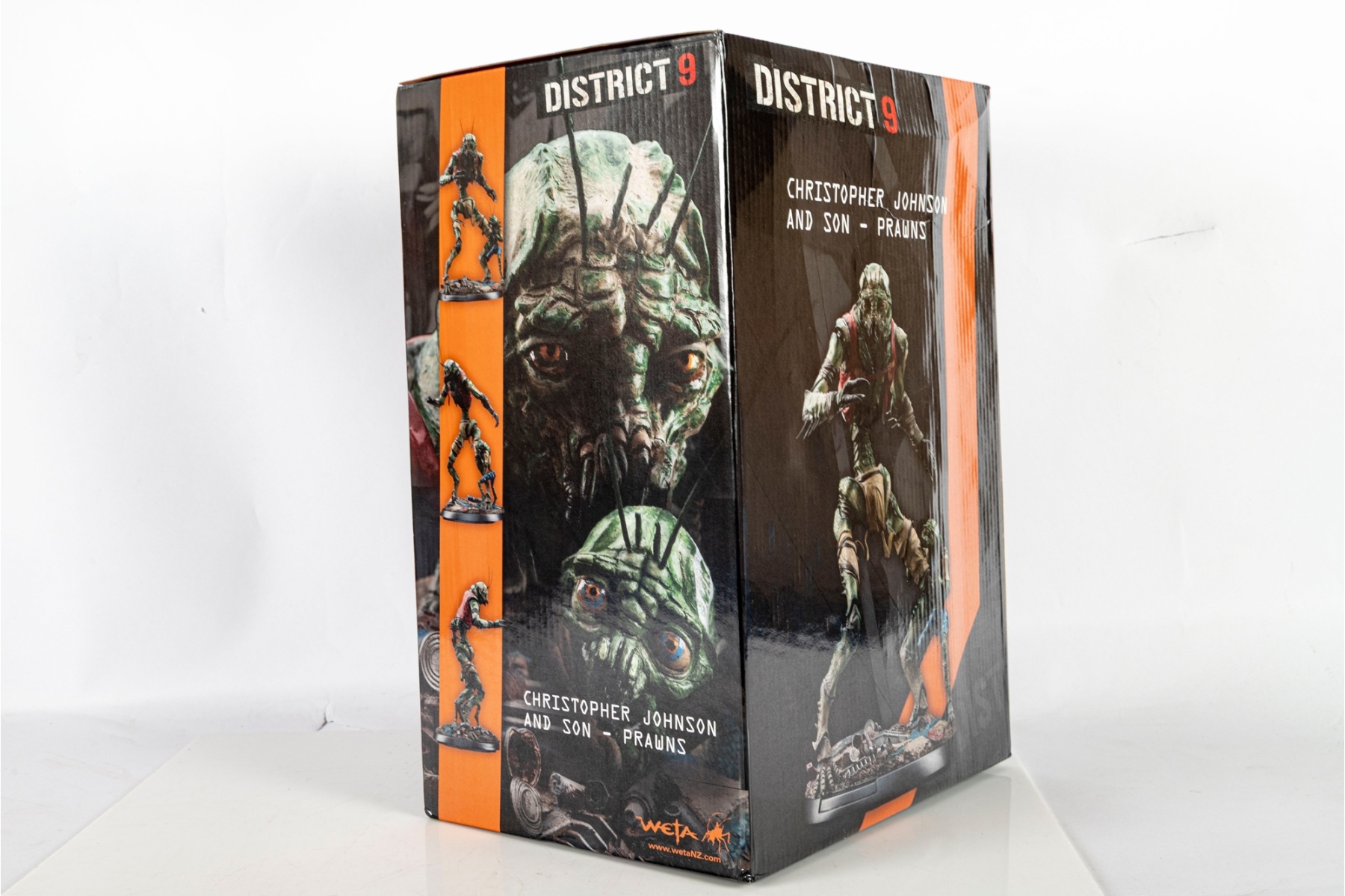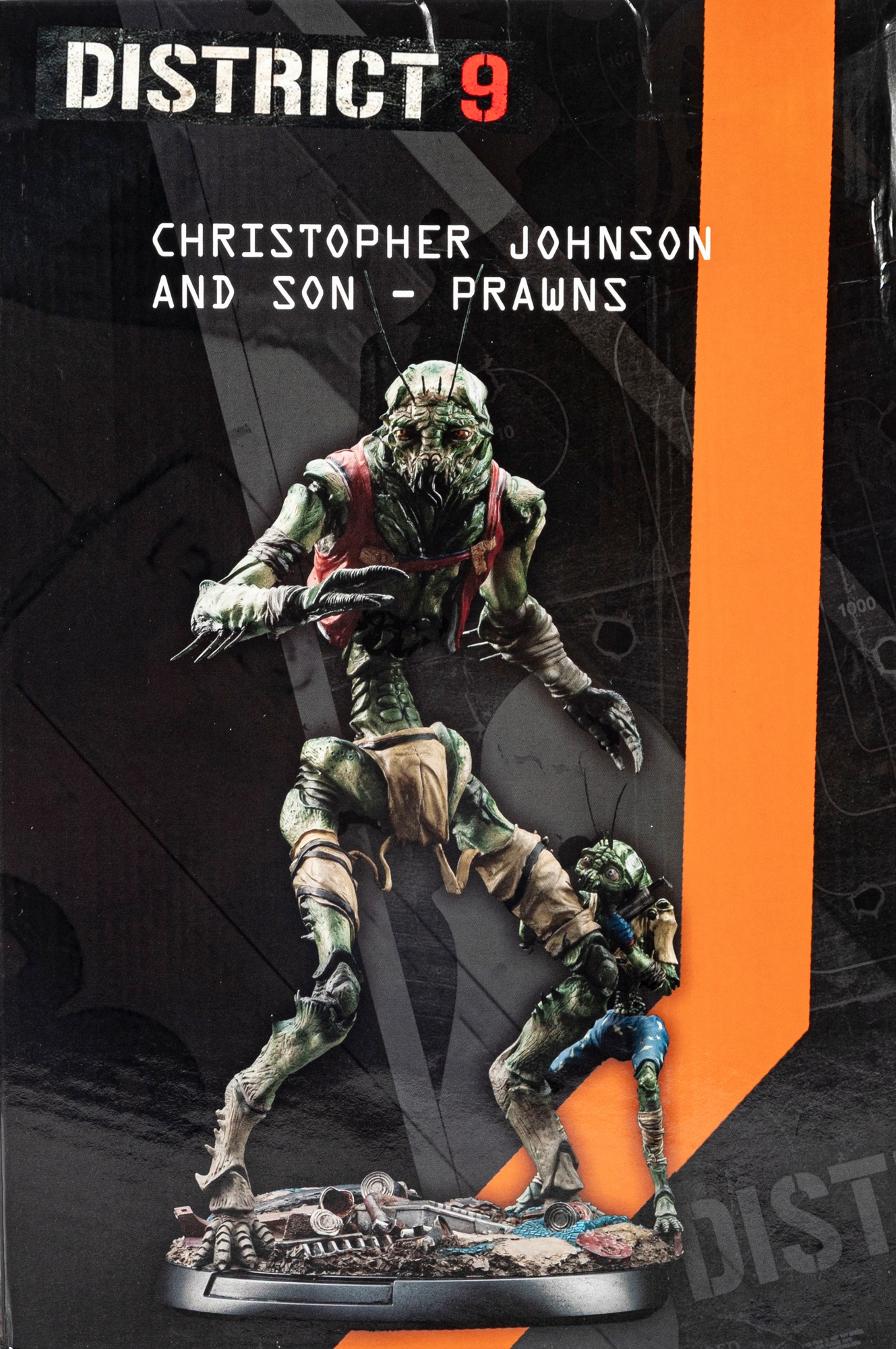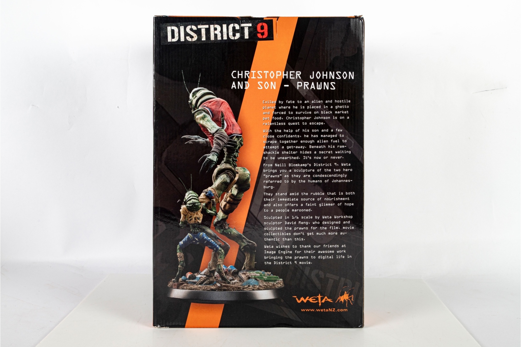 Highly detailed collectible statue depicting Christopher Johnson and Son from the 2009 sci-fi film District 9, directed by Neill Blomkamp and produced by Peter Jackson’s Wingnut Films. This limited-edition piece captures the iconic “prawn” characters in stunning realism, standing over a debris-strewn base that reflects the gritty world of the film.