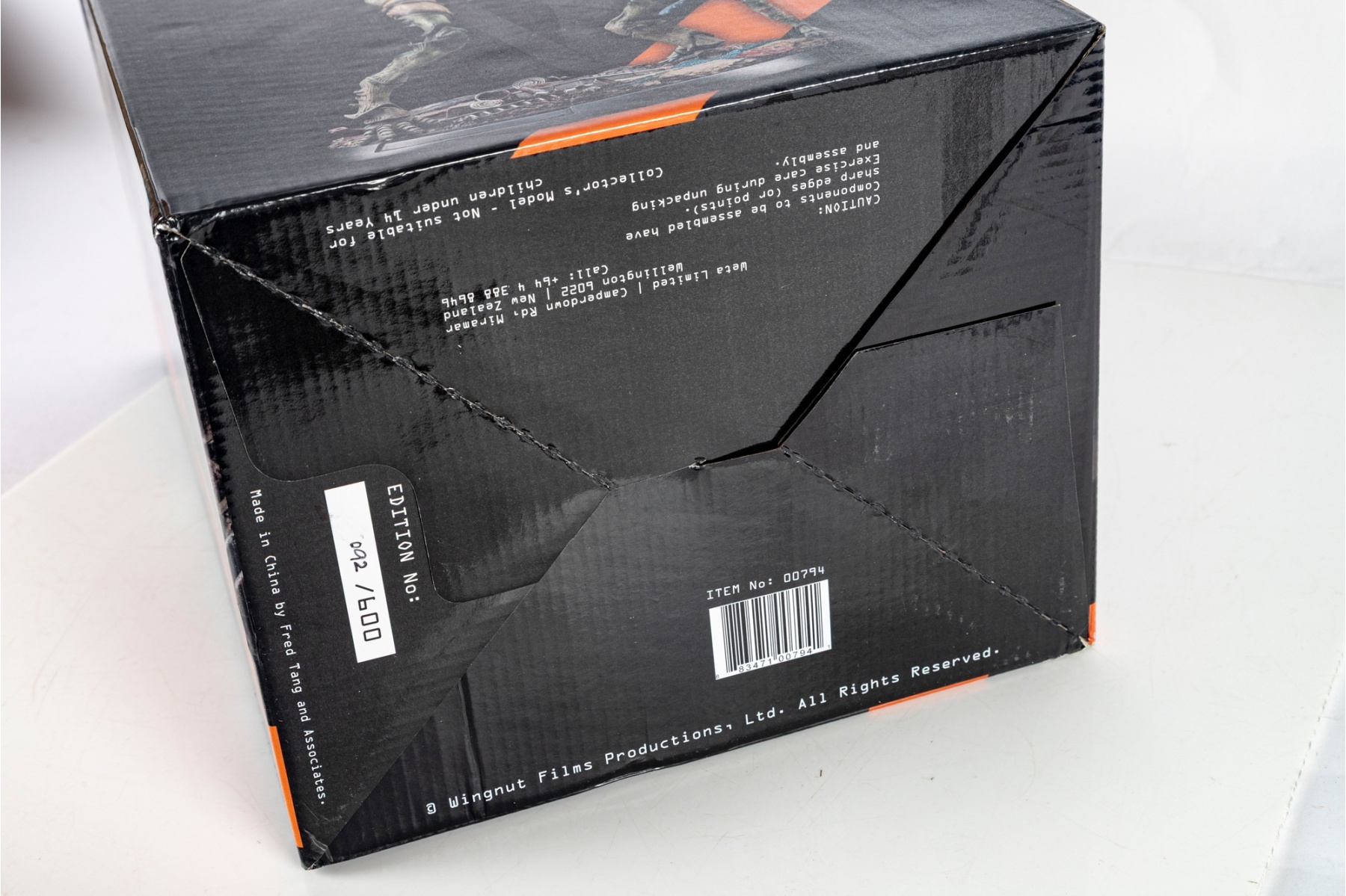 Good condition with original packaging and internal styrofoam intact. box shows light wear, small creases, and edge scuffs, as well as minor staining to inner flaps. figure appears well preserved and securely packed; not removed for inspection to maintain factory packing integrity.