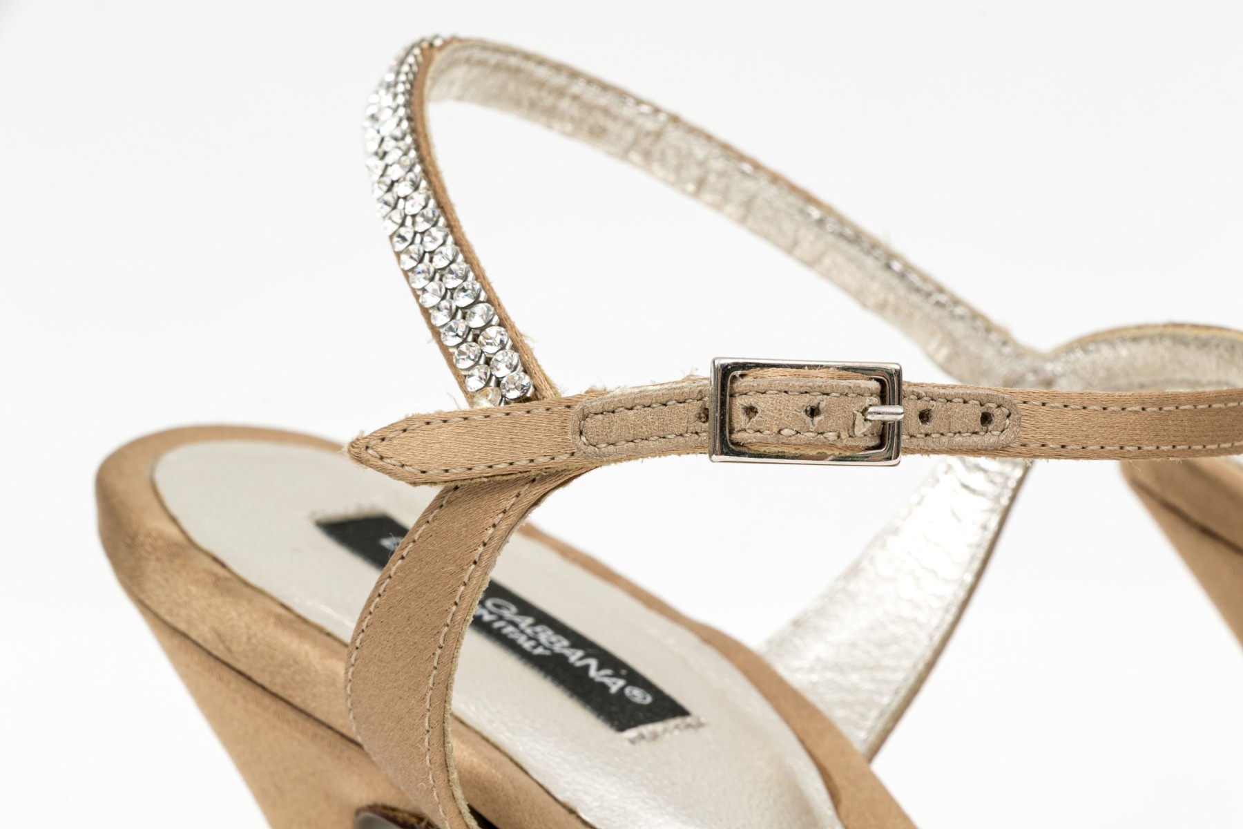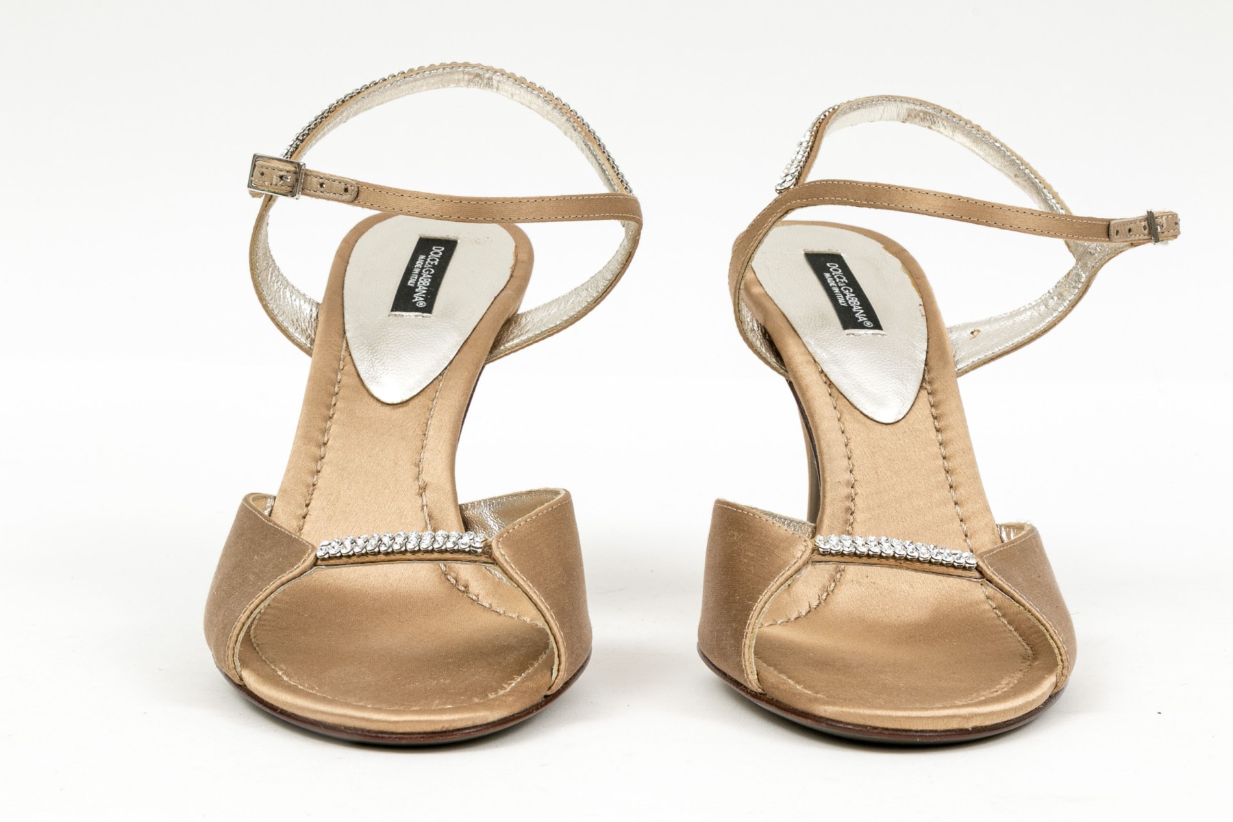 Dolce & Gabbana bedazzled champagne beige satin sandals, size 39