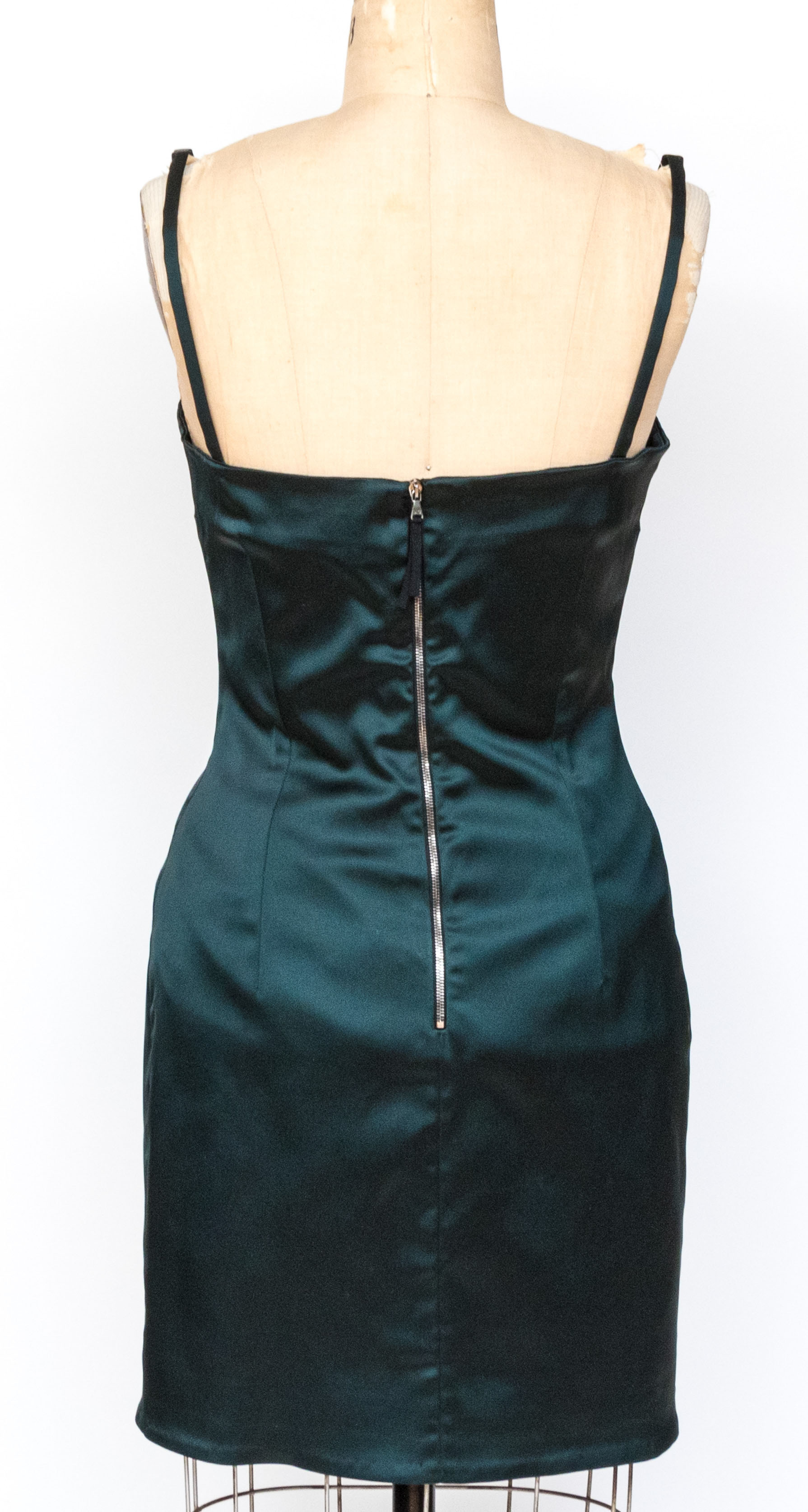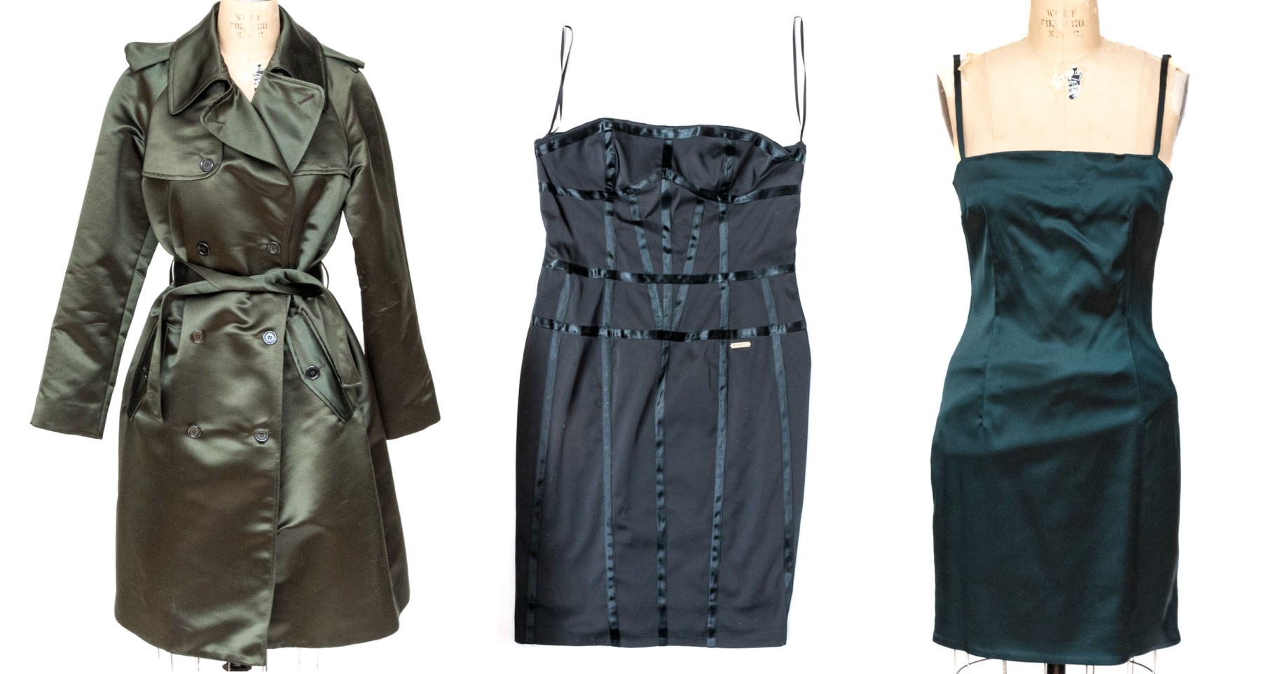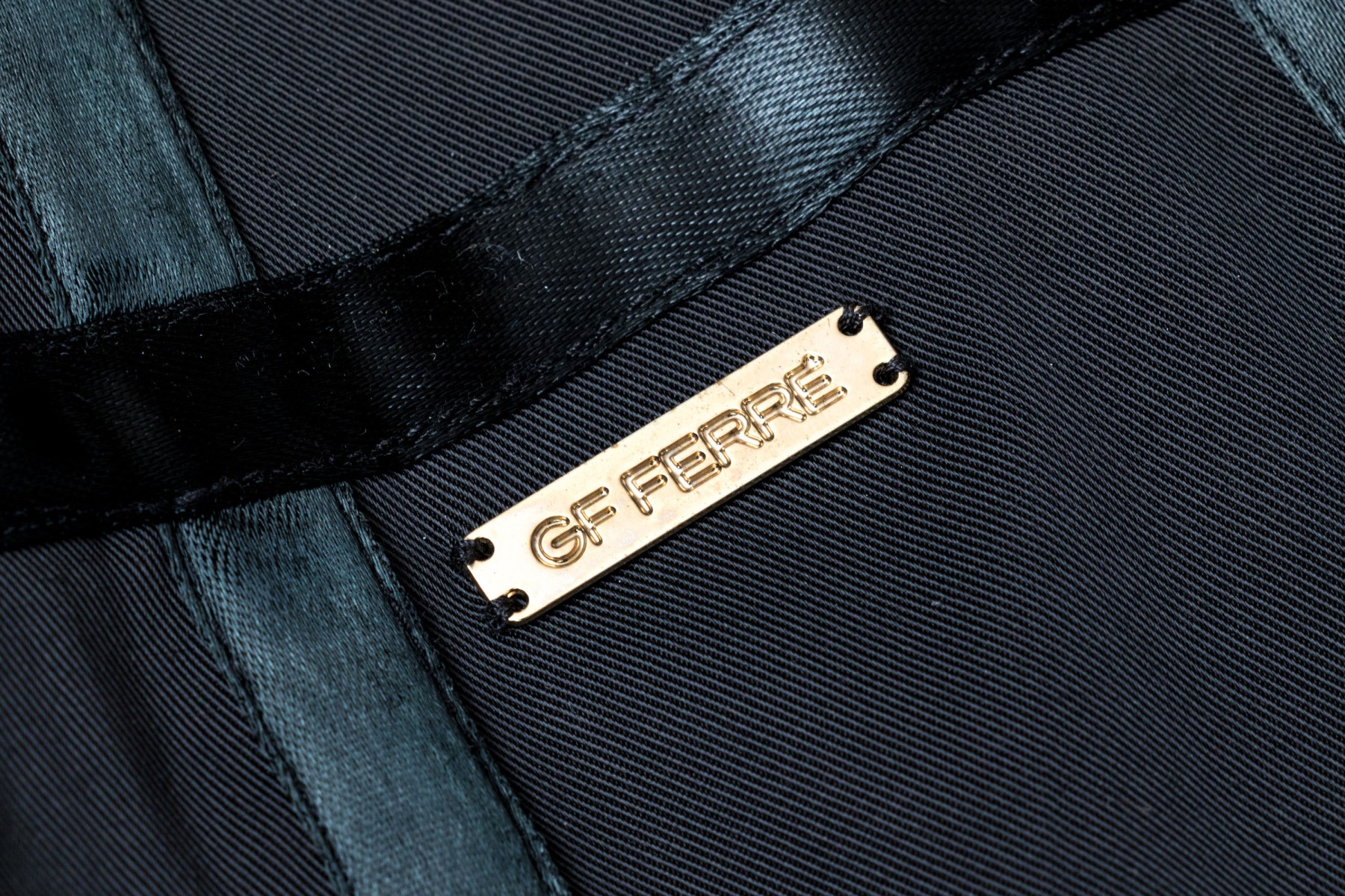 A Dolce & Gabbana green coat with complimentary green dress. With this is a black GF Ferre dress.