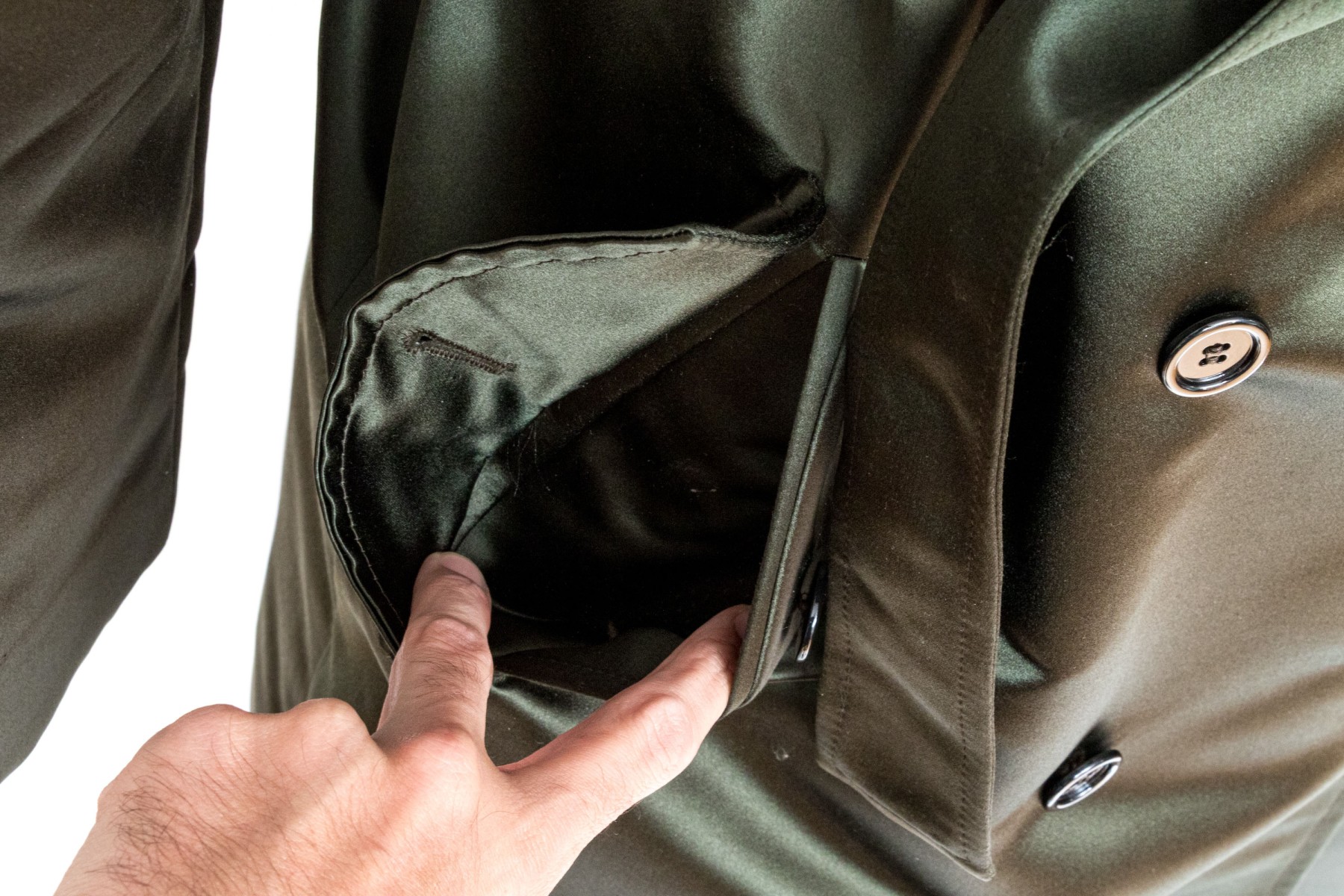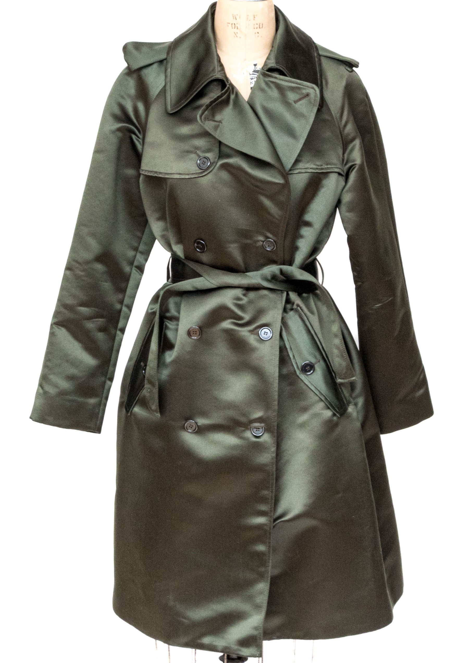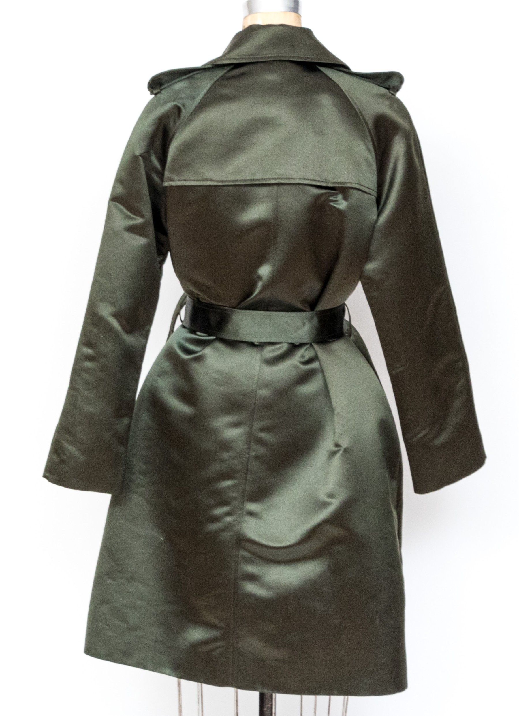 A Dolce & Gabbana green coat with complimentary green dress. With this is a black GF Ferre dress.