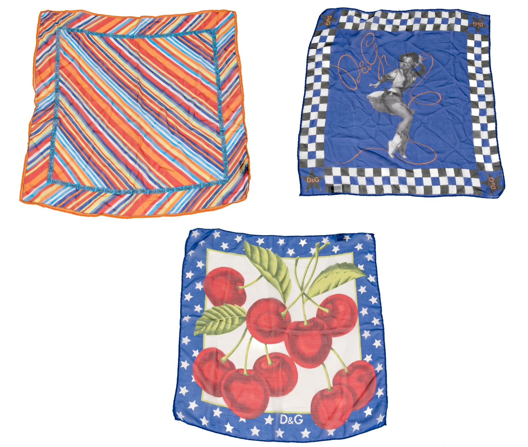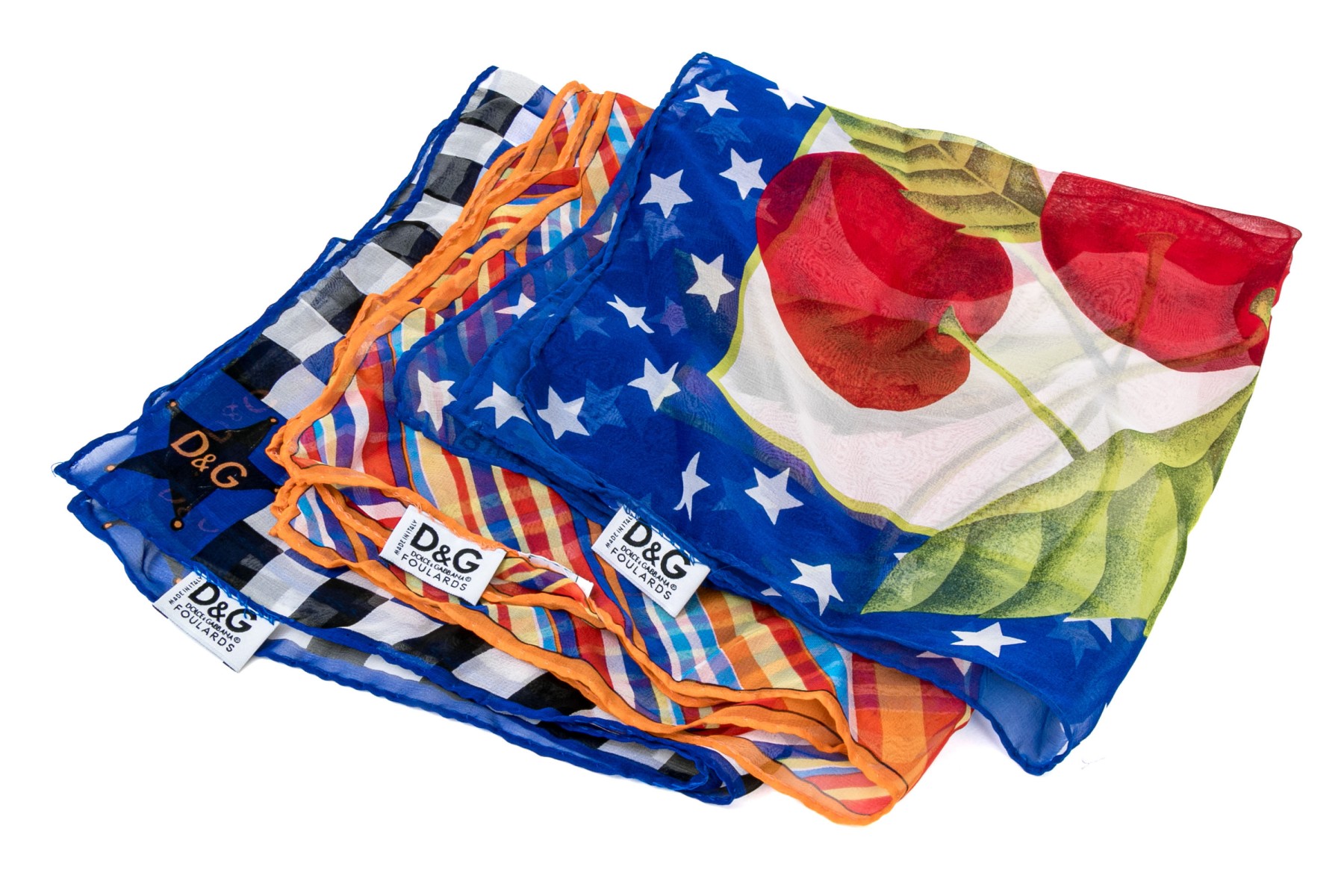 Dolce & Gabbana lot of three vintage chiffon "foulards" neck scarves
