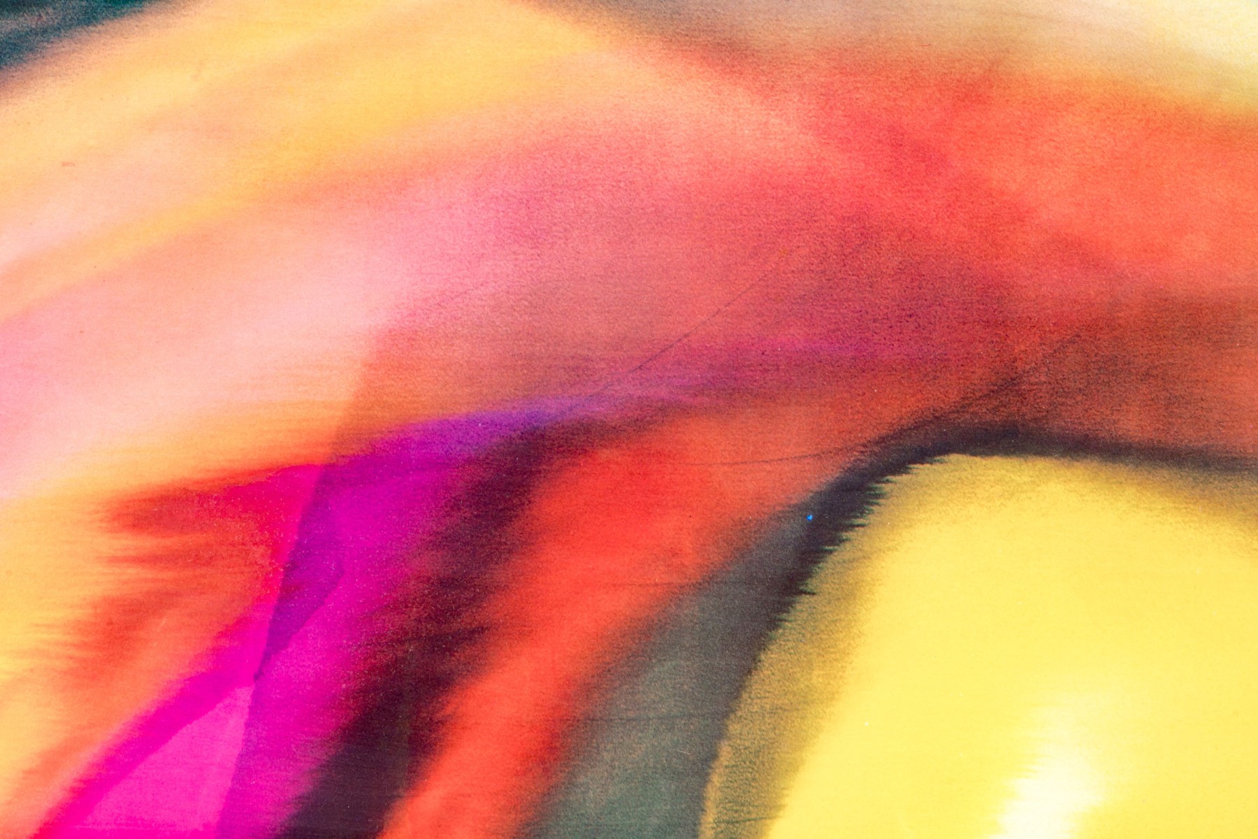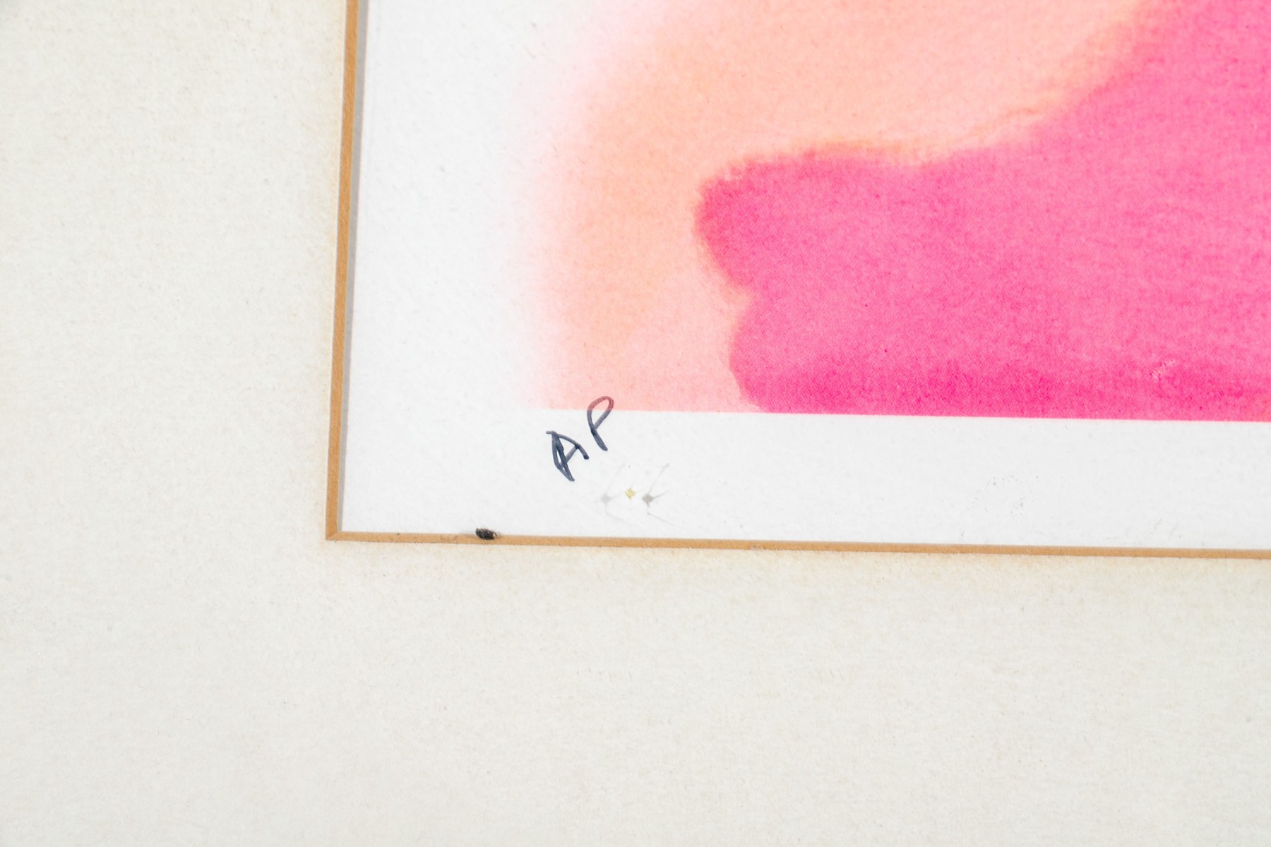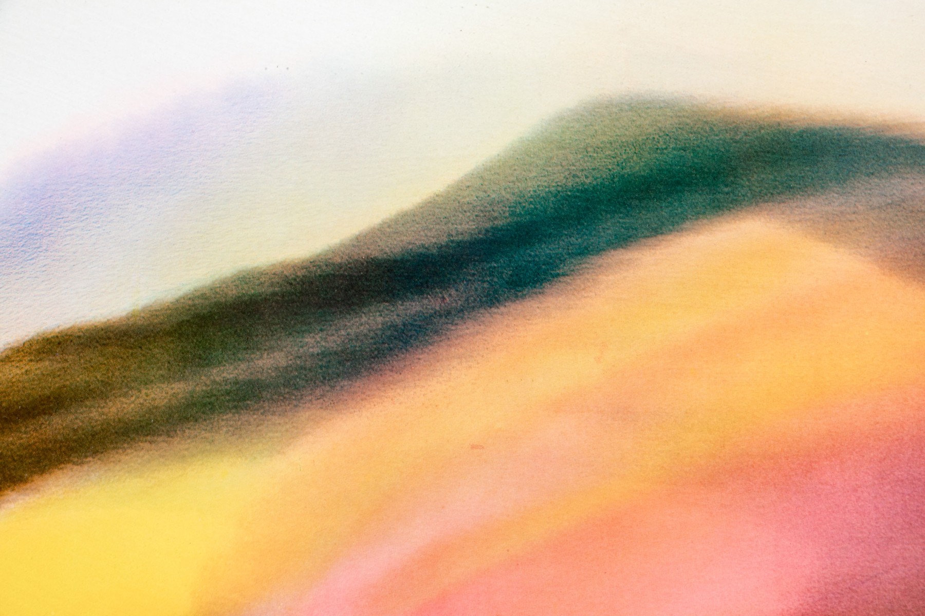 Artist proof depicting an abstract work on paper with layers of superimposed color with a soft but colorful pallet.