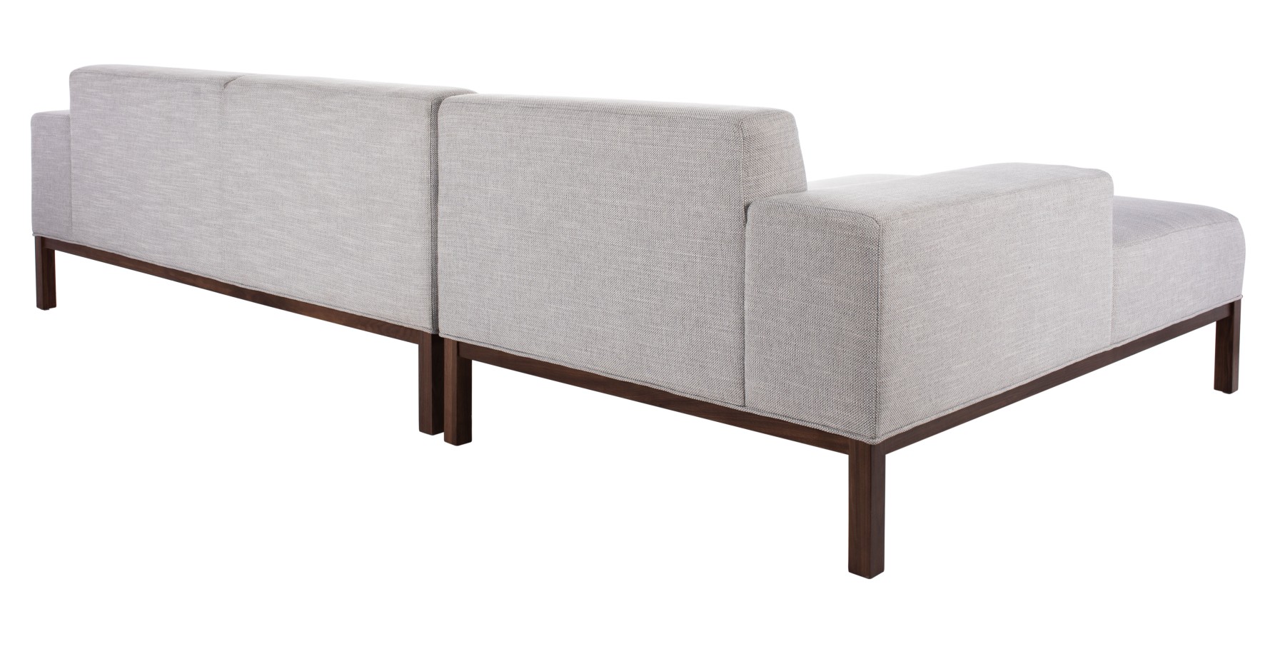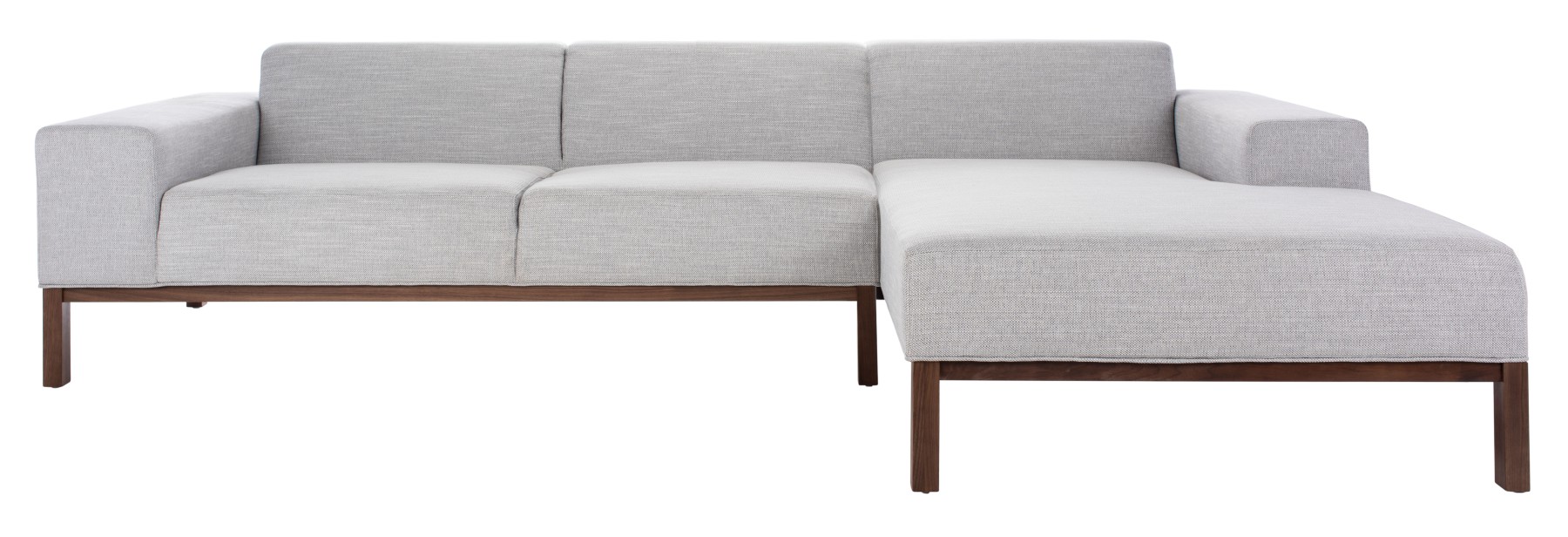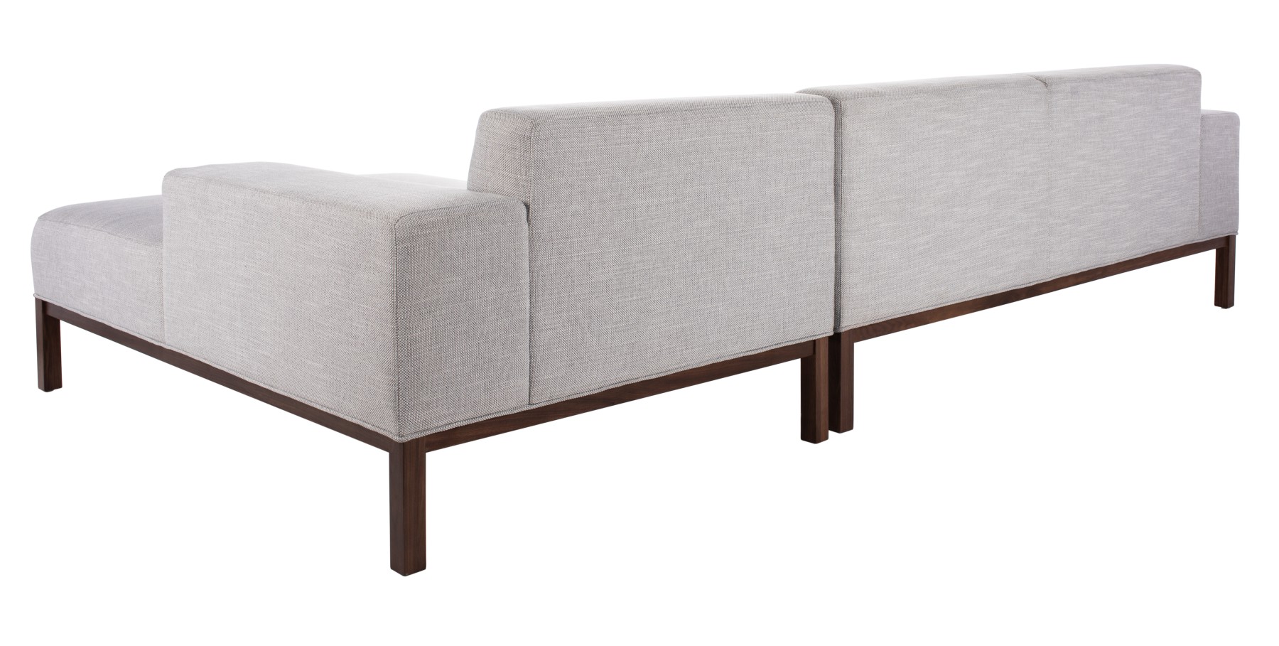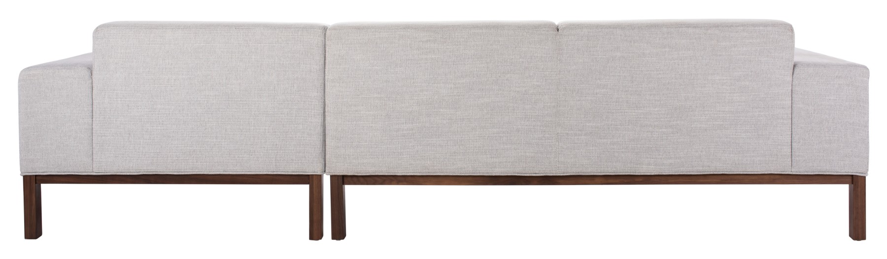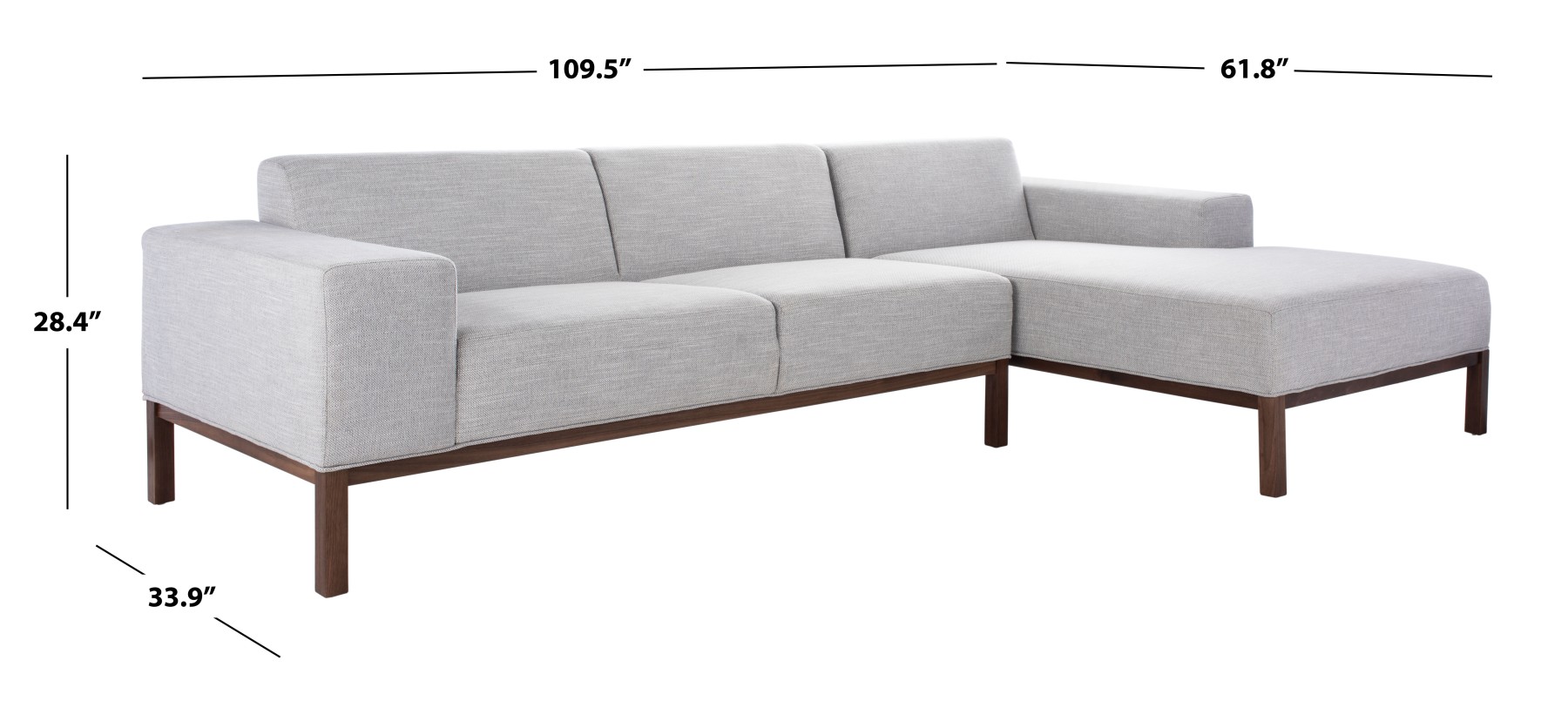 Make a monumental design statement with this decadent mid century sectional sofa. The intricate construction of its plush oatmeal upholstery and sleek legs adds instant luxury to any living room. Designers use it as an instant focal point.