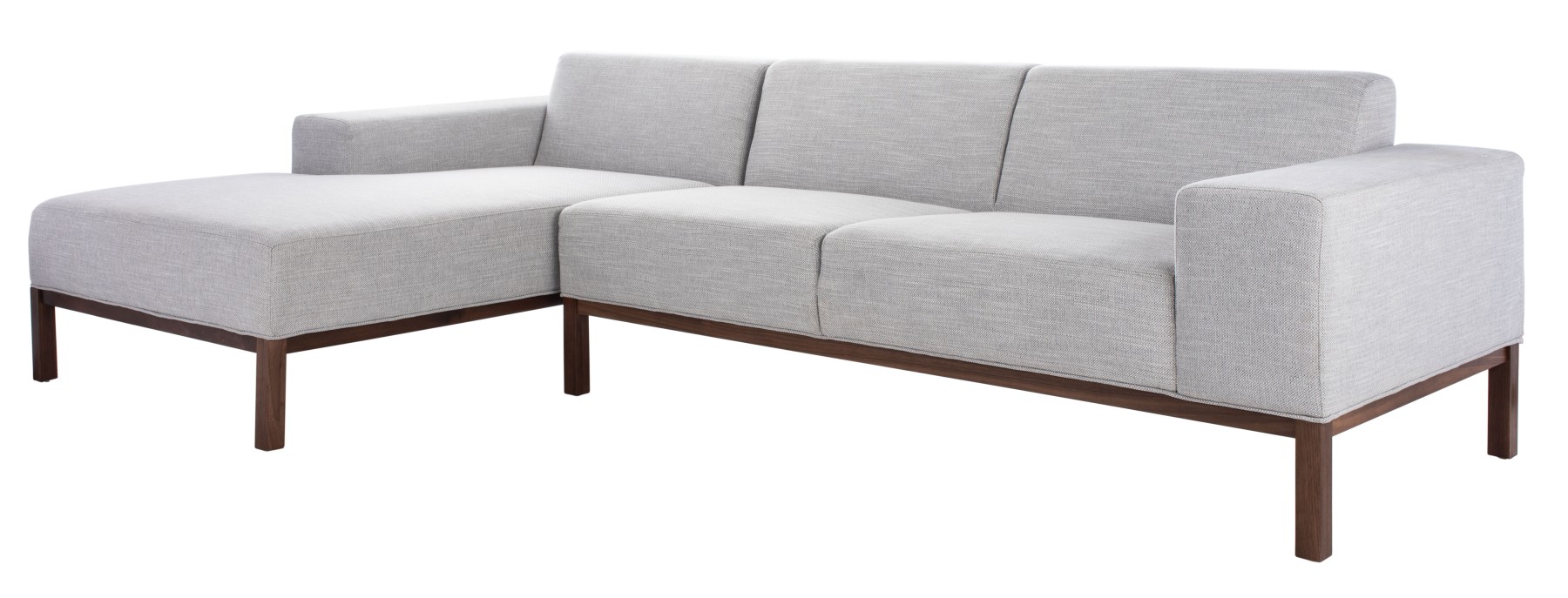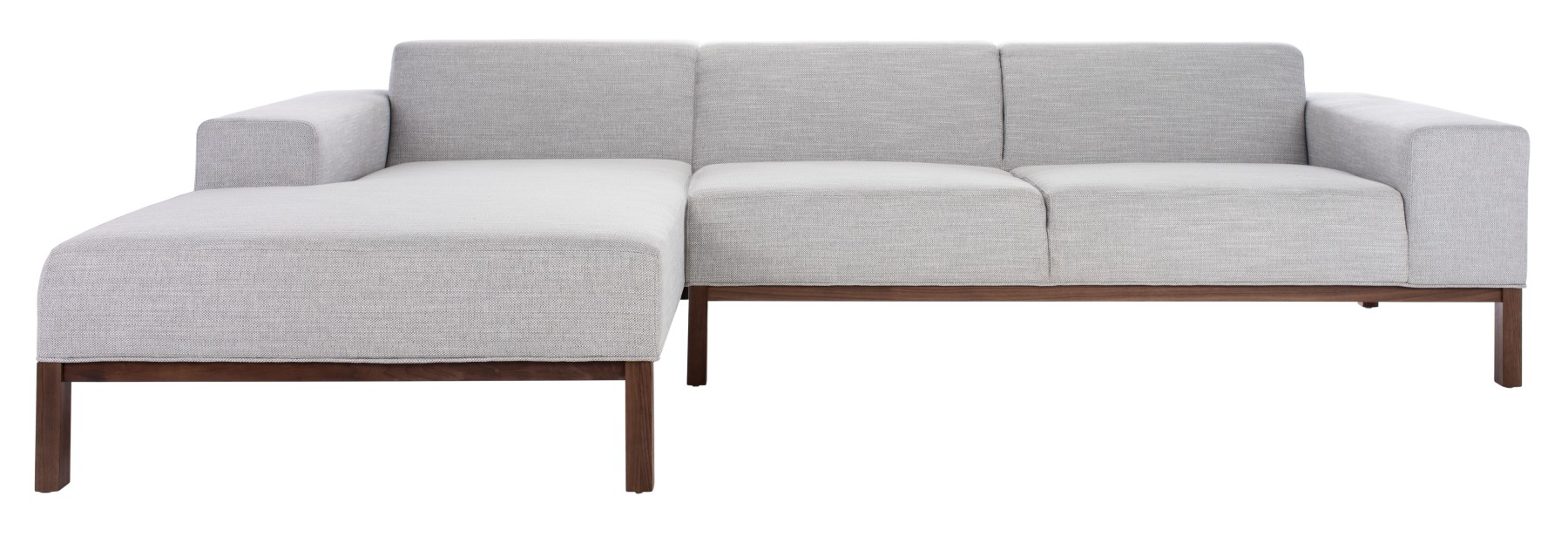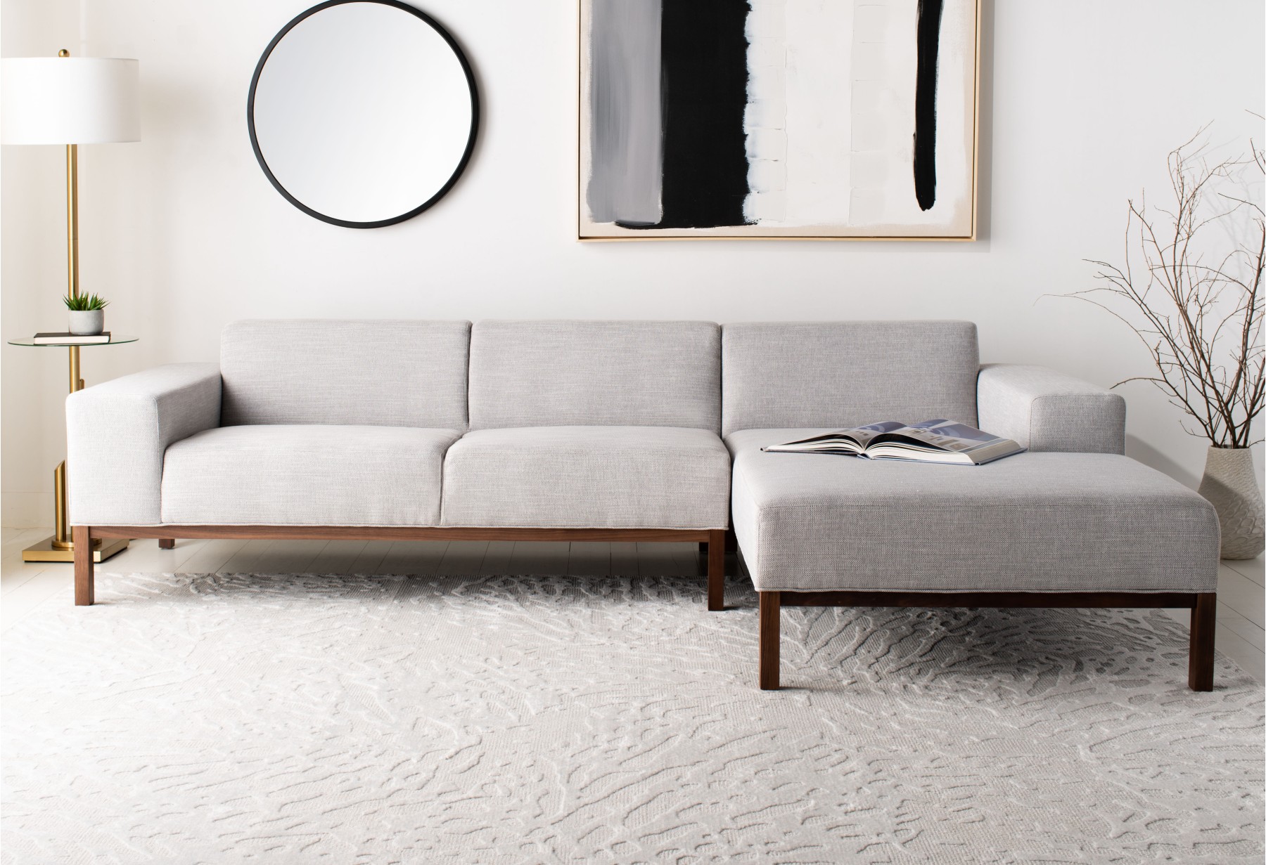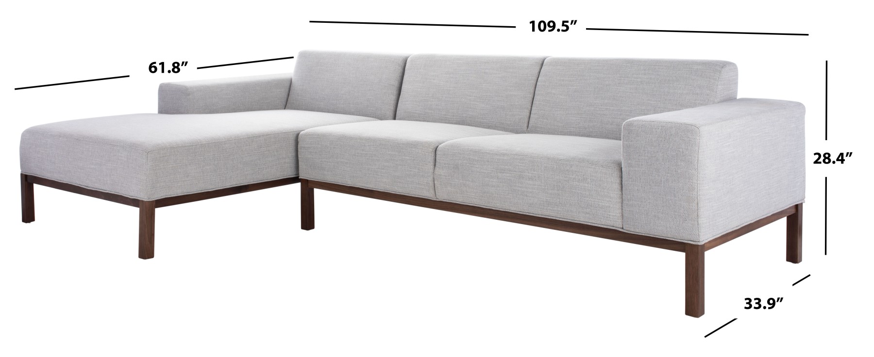 Make a monumental design statement with this decadent mid century sectional sofa. The intricate construction of its plush oatmeal upholstery and sleek legs adds instant luxury to any living room. Designers use it as an instant focal point.