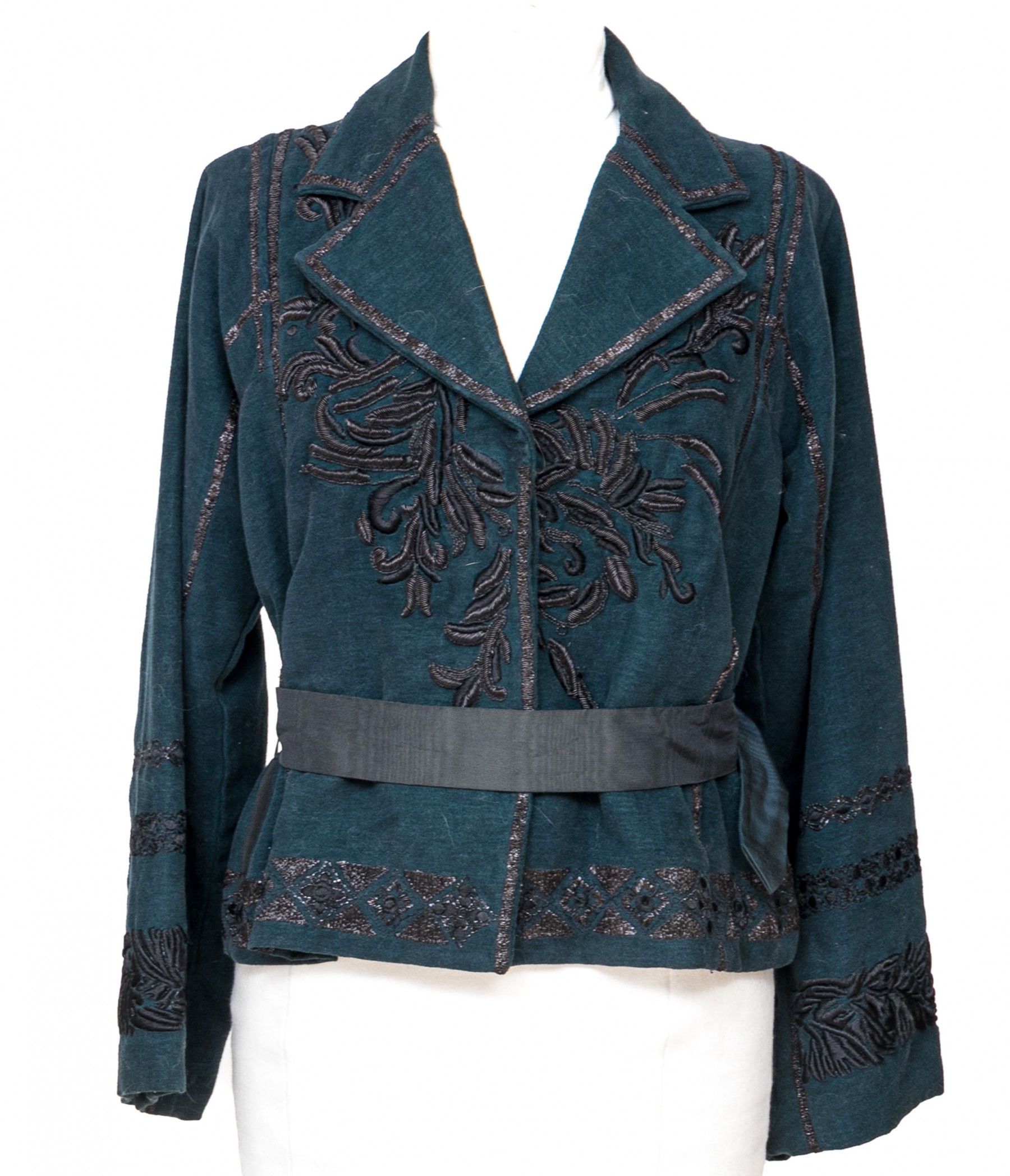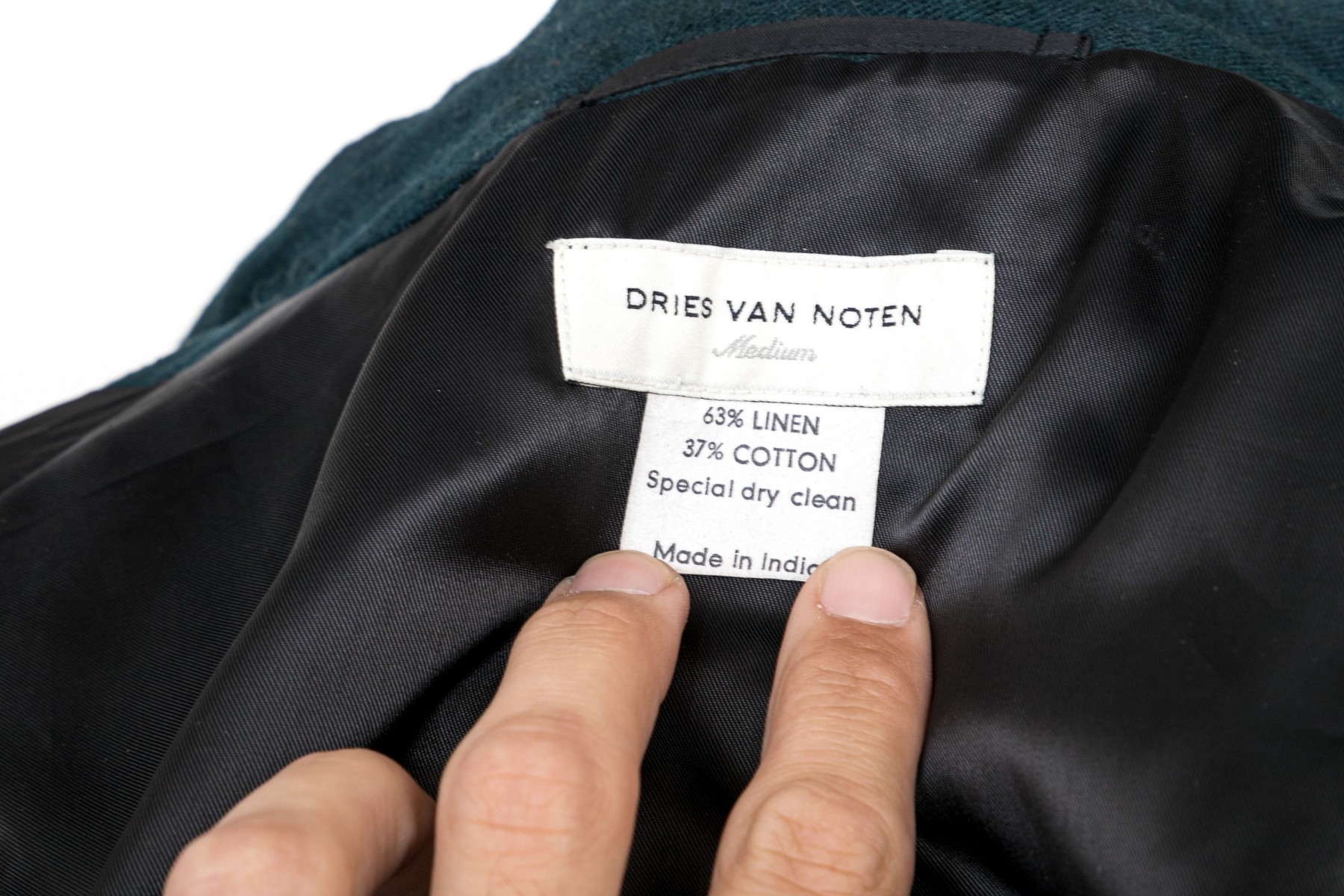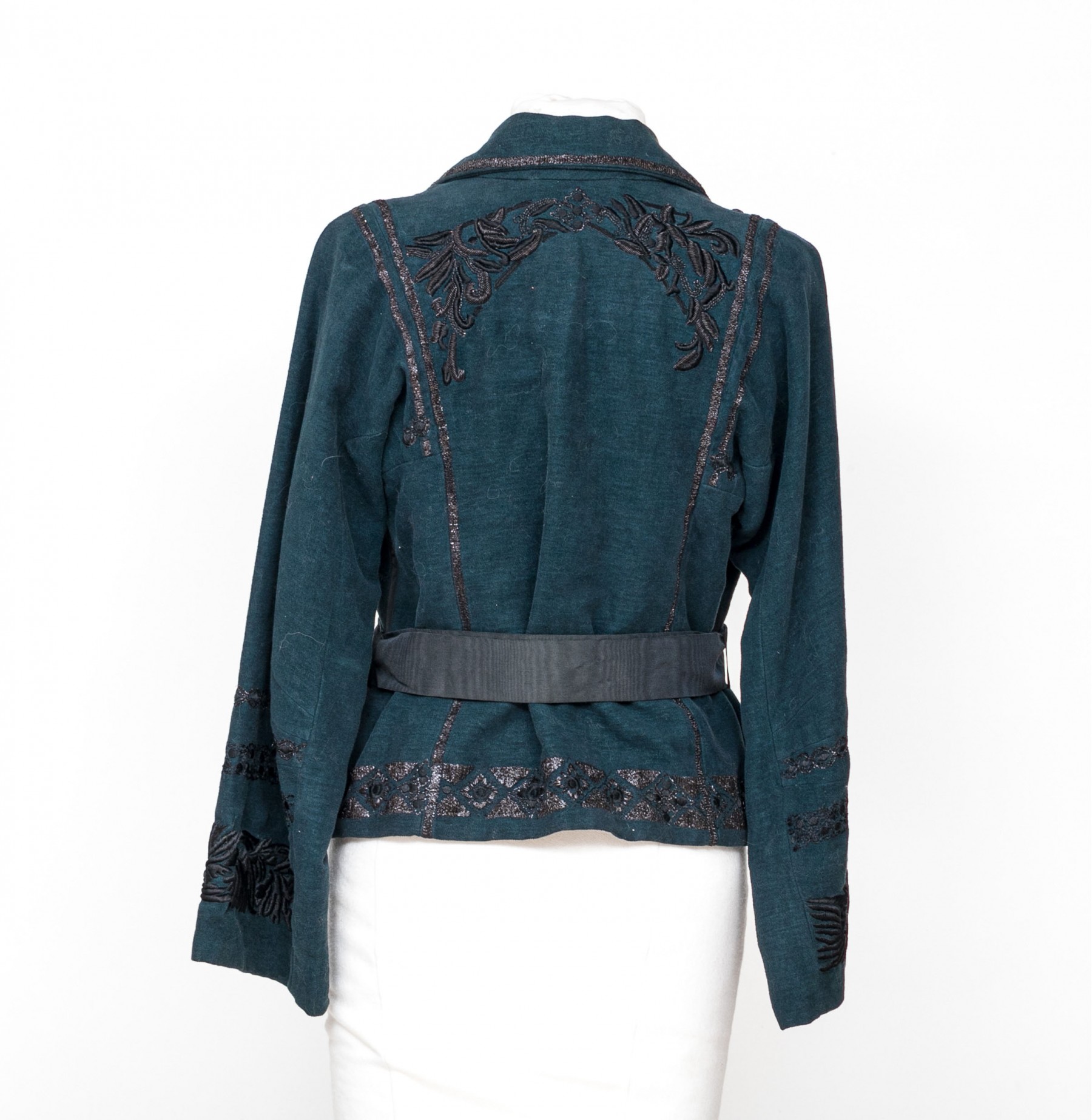 Dries Van Noten blue belted linen cotton embroidered jacket, size medium