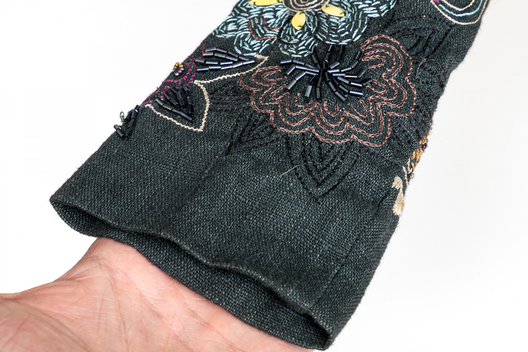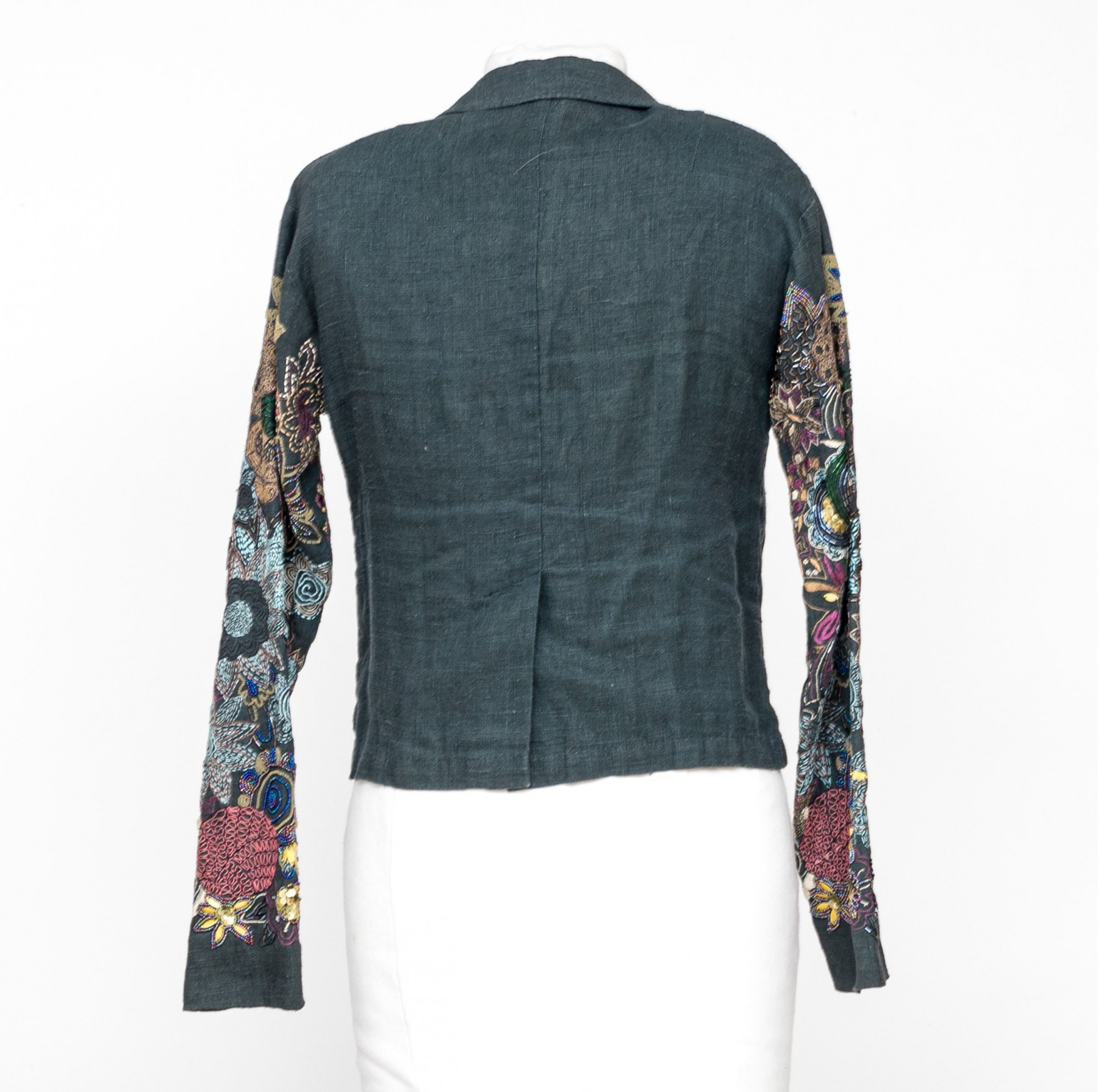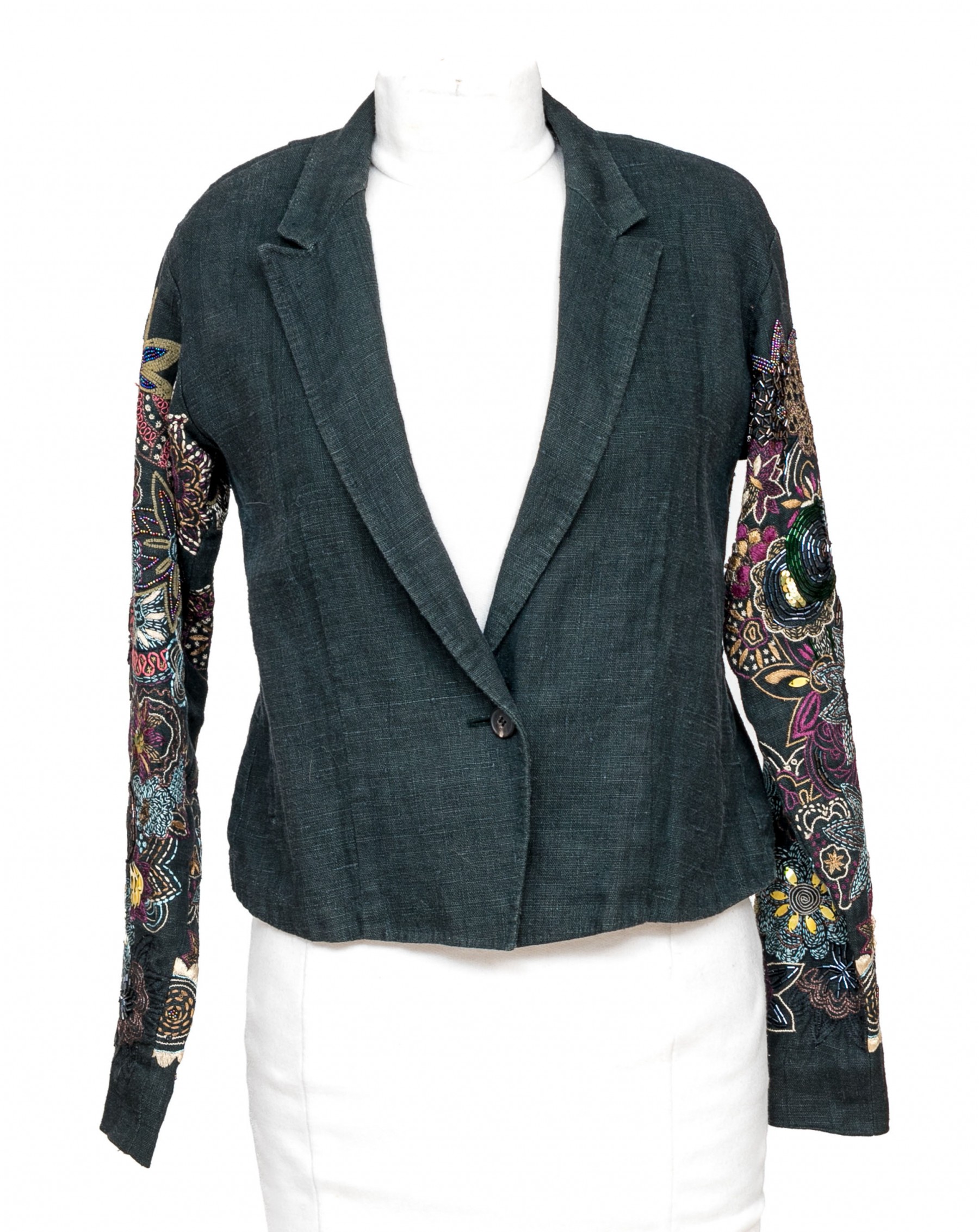 Dries Van Noten blue black linen embroidered sleeve jacket, size 38