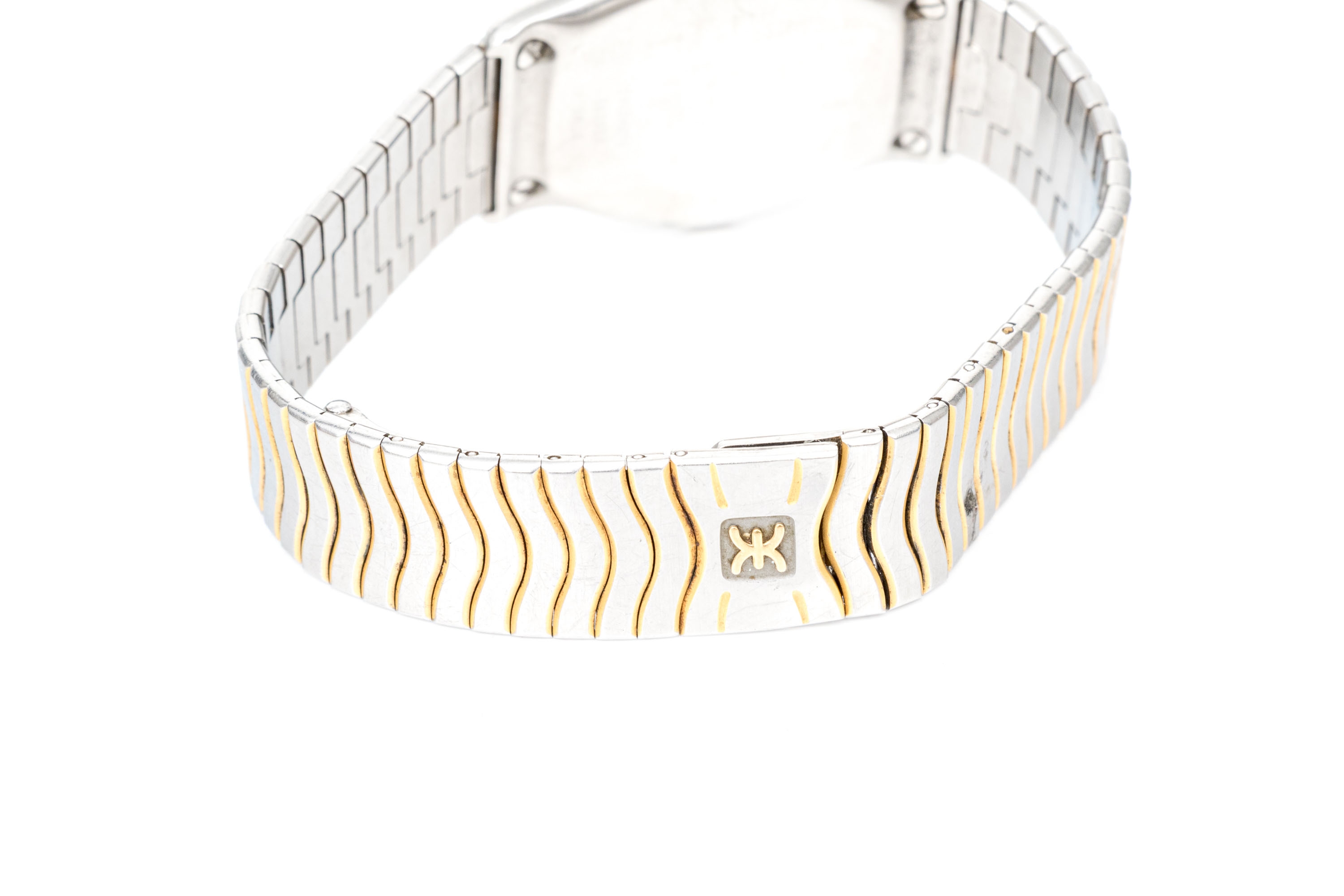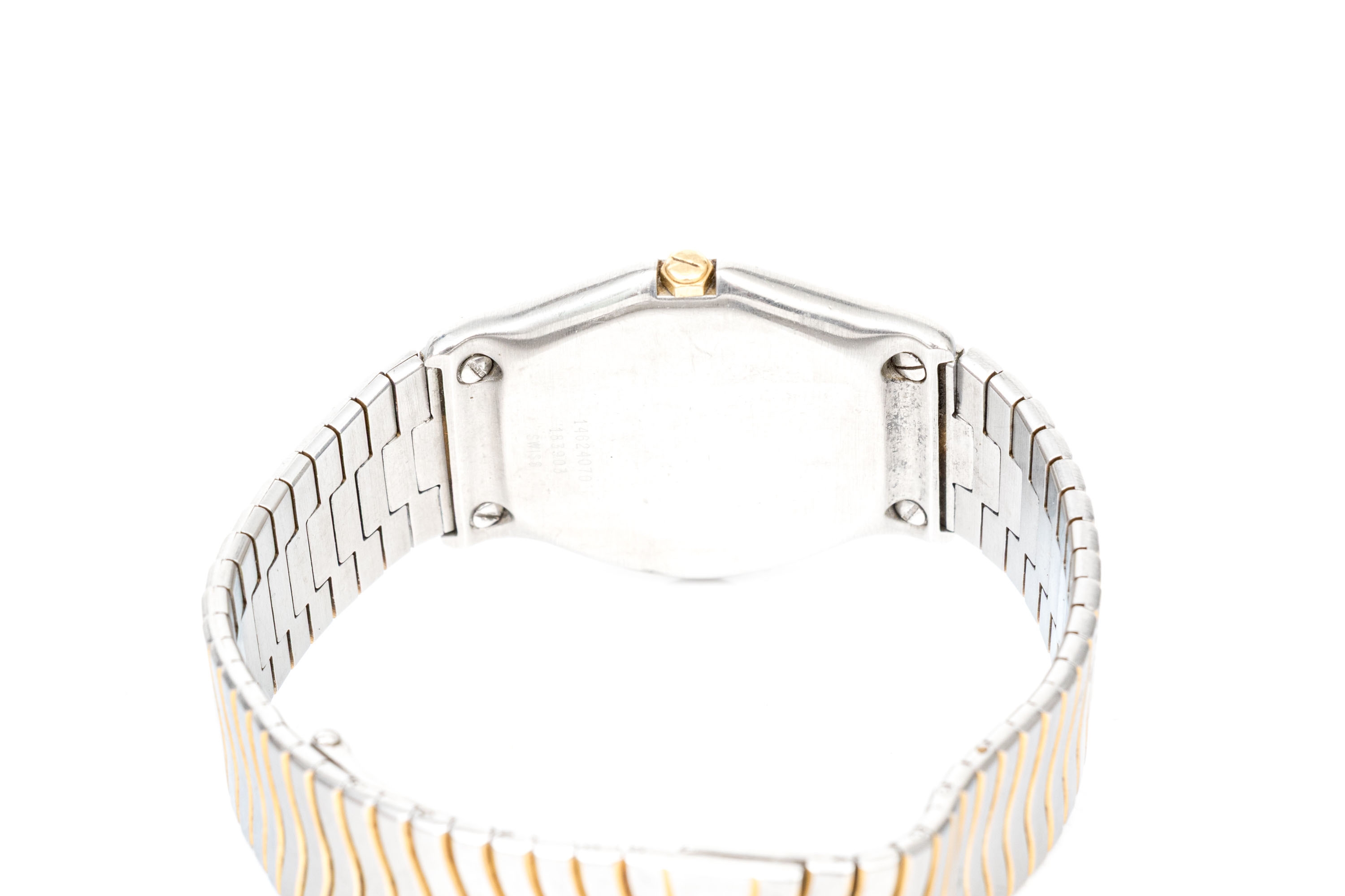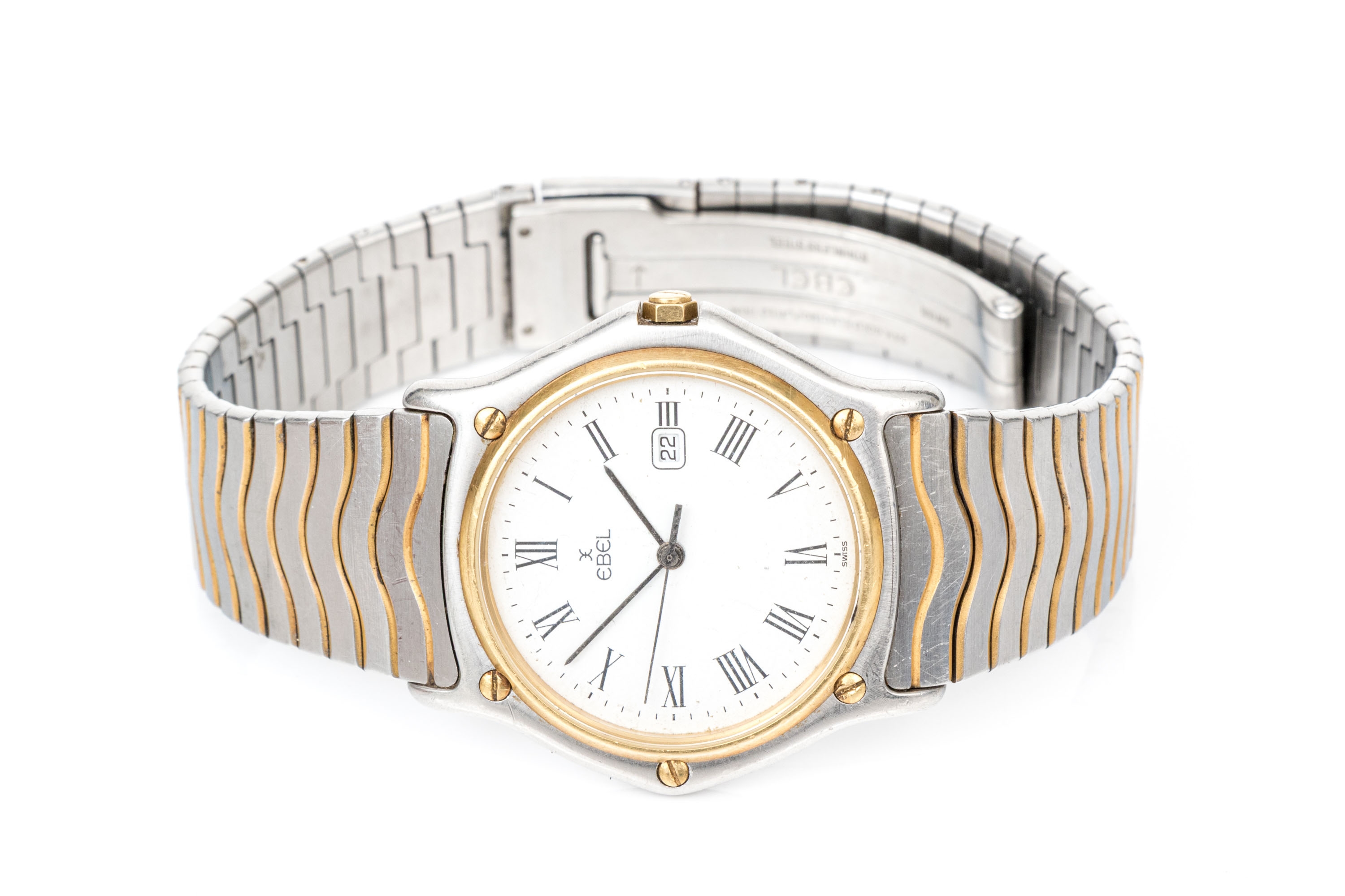 Ebel stainless steel vintage 34mm Sport Classic quartz watch, in stainless steel with a yellow gold crown and bezel, white roman dial and finished with a classic style bracelet.