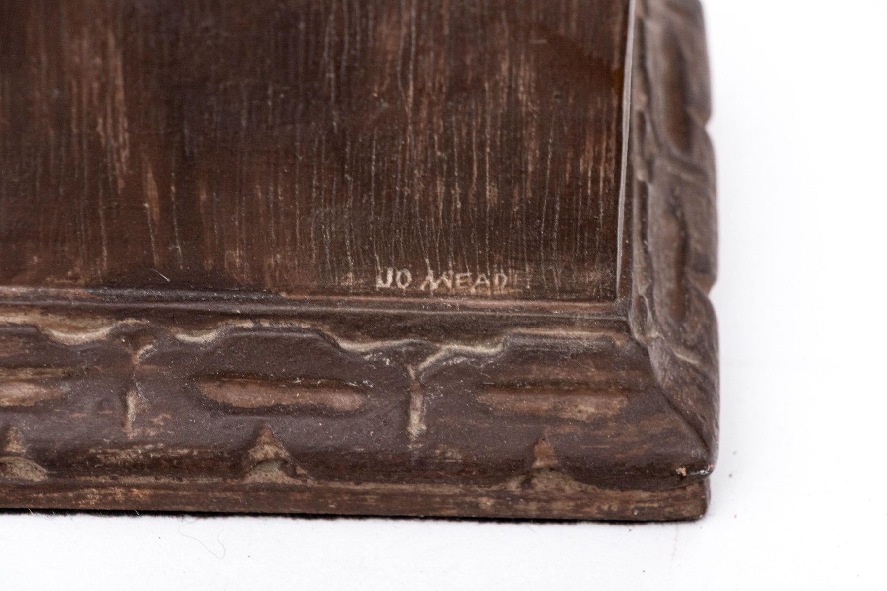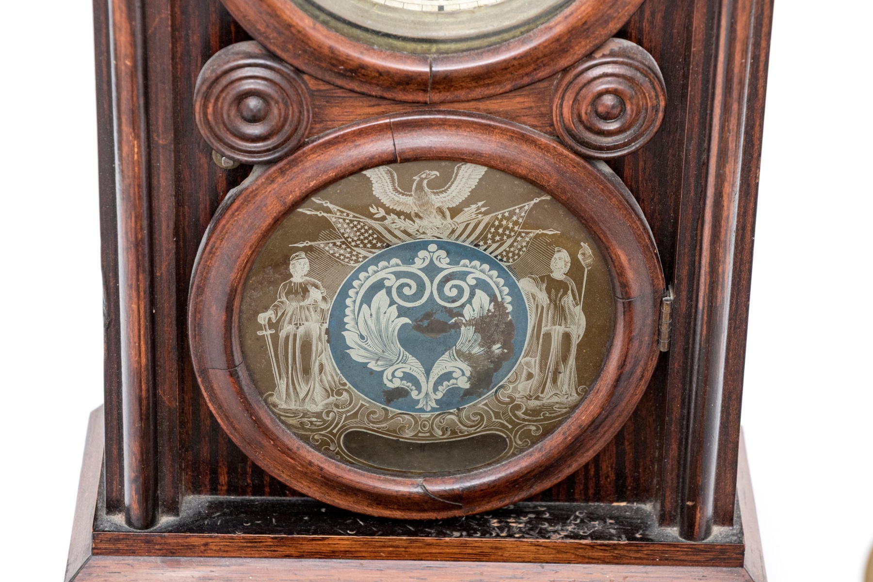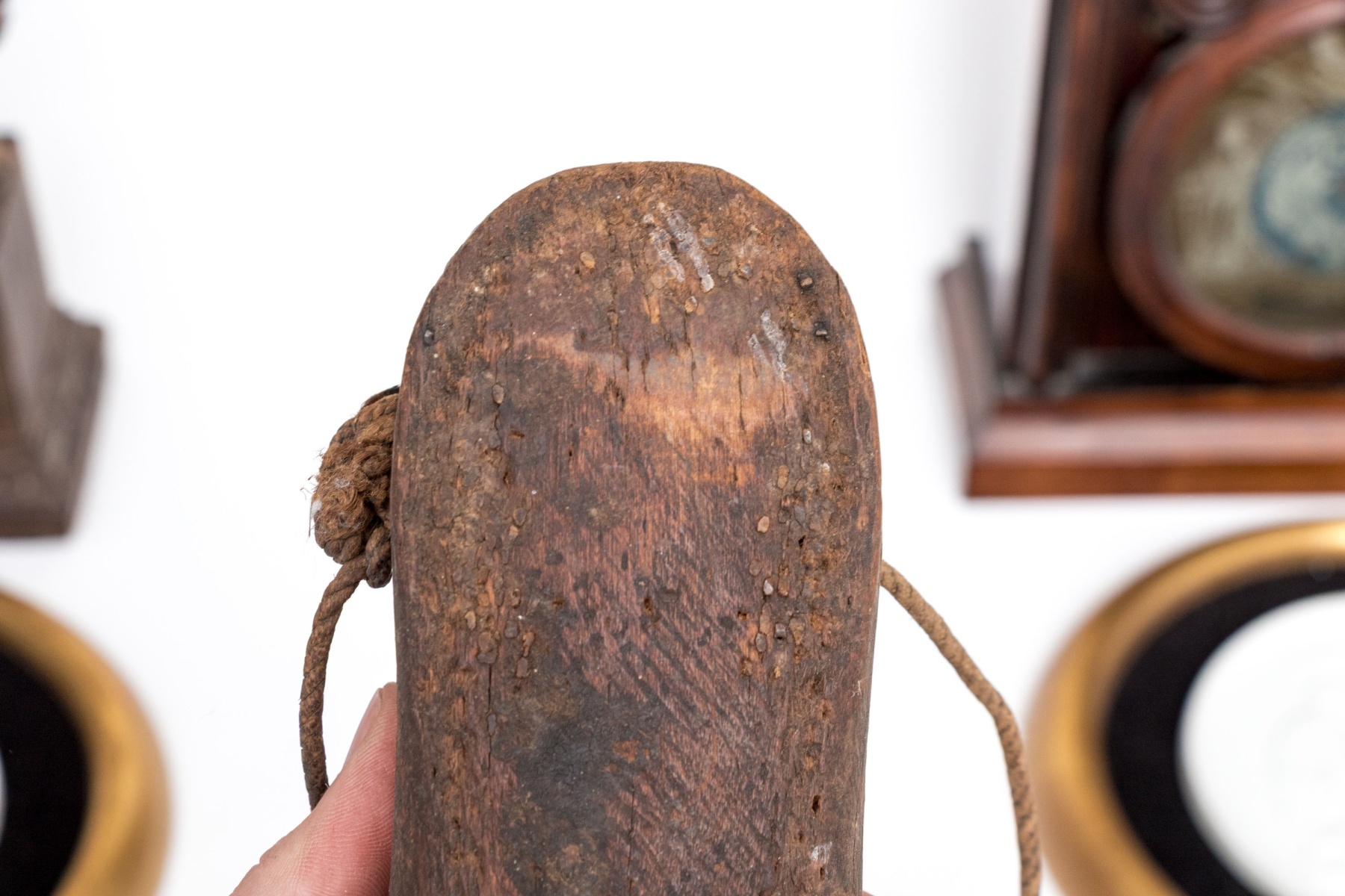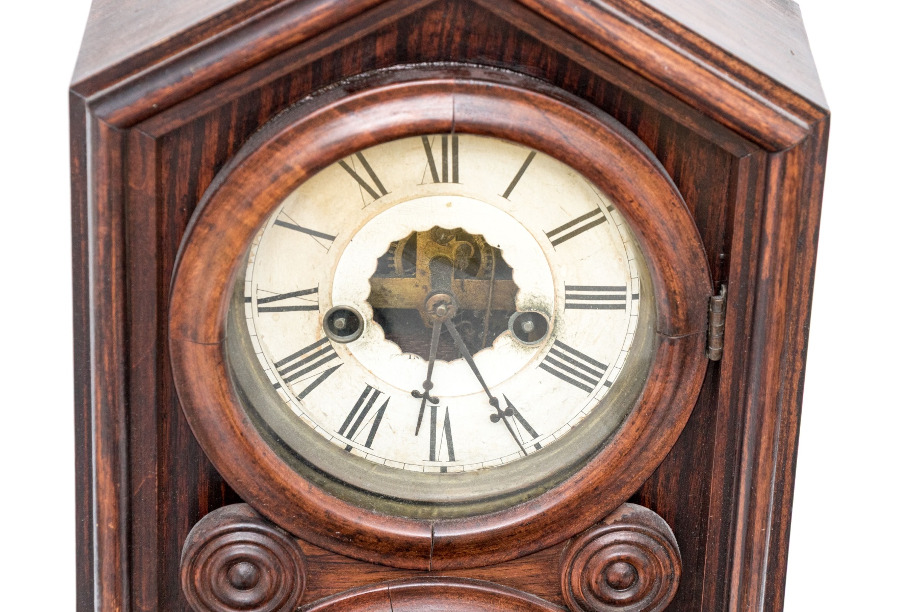 Comprised of a Quimper ceramic plate, Staffordshire fairing depicting a couple under archway, mantel clock, bust, carved wood shoe forms, and more.