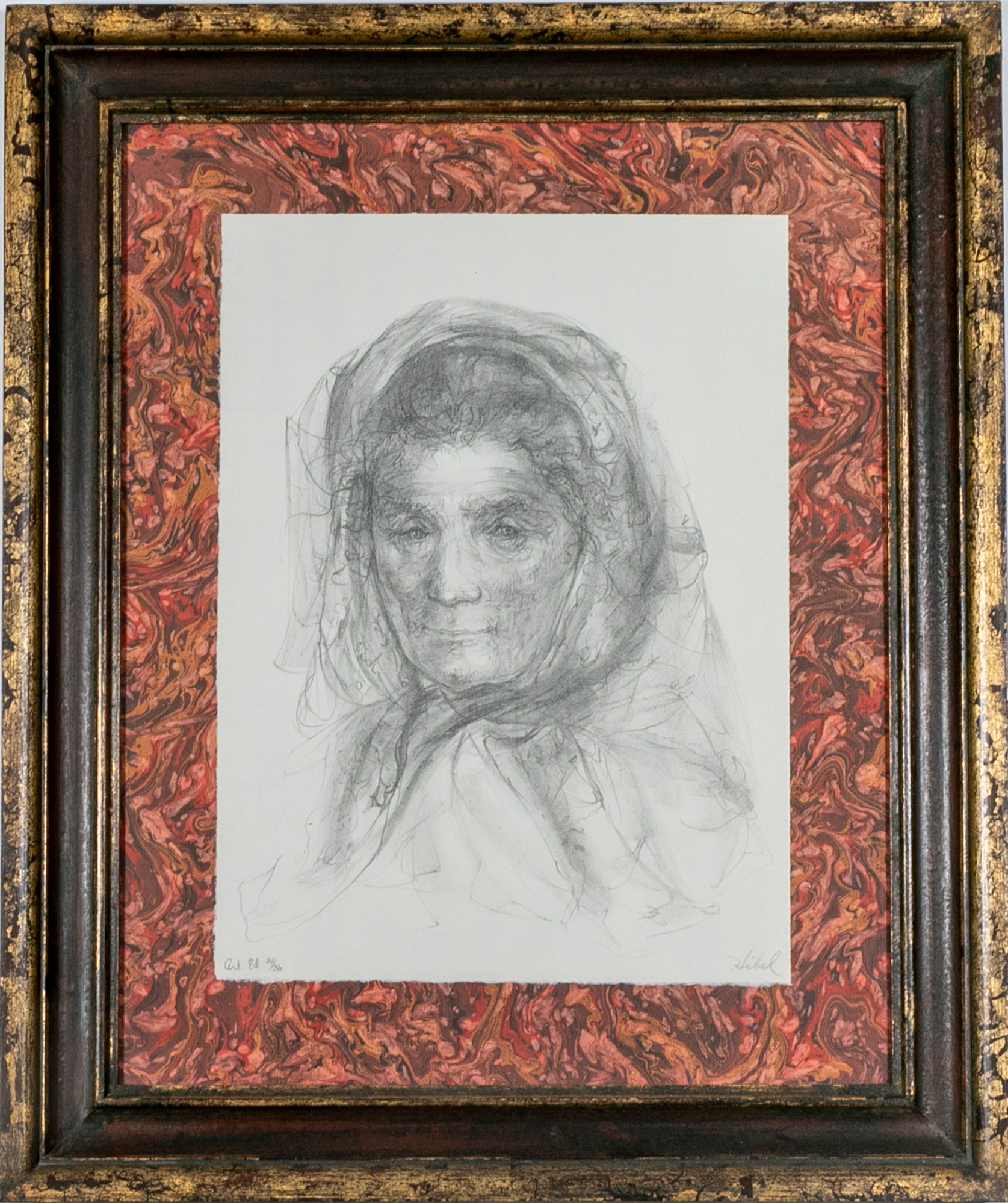 A pencil-signed lithograph capturing the essence of a woman, a piece of art created by the renowned Edna Hibel (1917-2014). This lithograph beautifully portrays her skillful artistry. Signed 21/36 artist addition