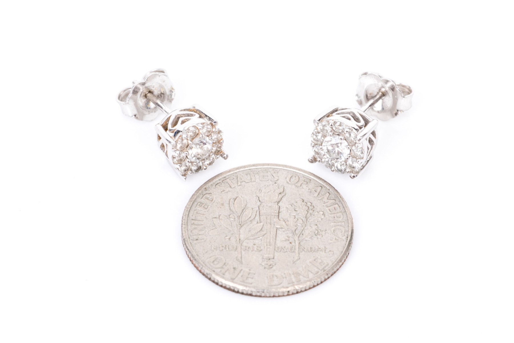 Effy 14k white gold lovely diamond cluster earrings, app. 0.44 TCW, finished with posts and clutch style backs
