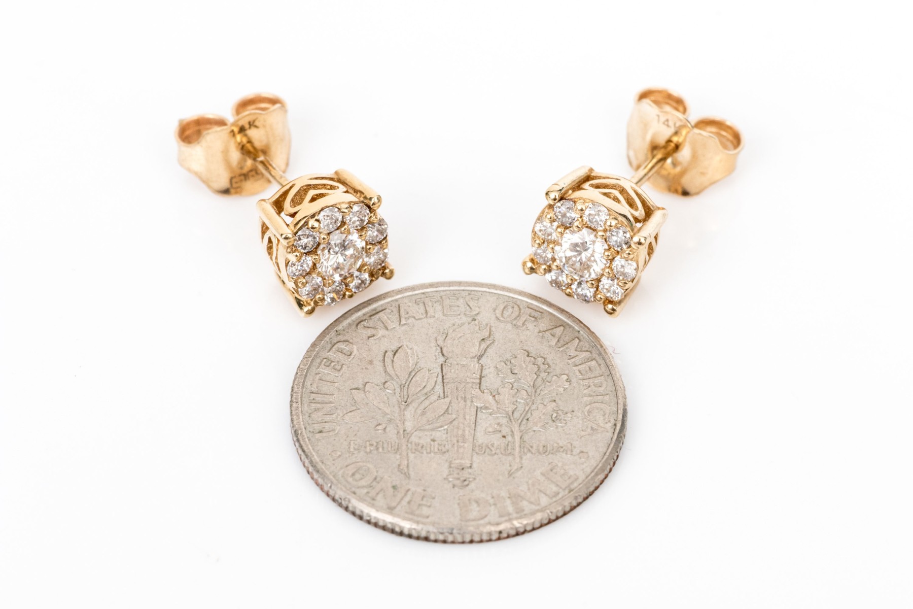 Effy 14k yellow gold pretty diamond cluster earrings, app. 0.50 TCW, with box, finished with posts and clutch style backs