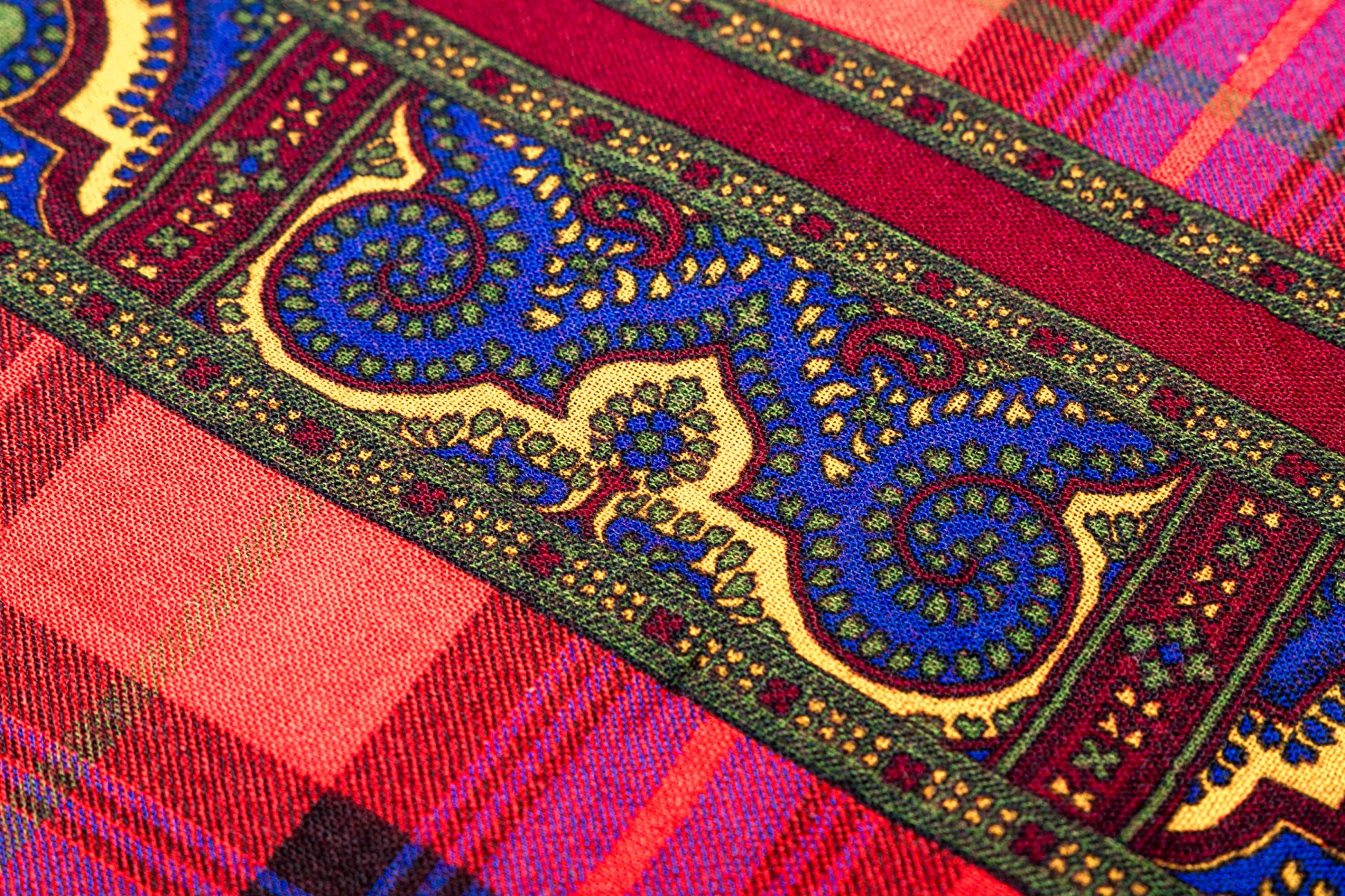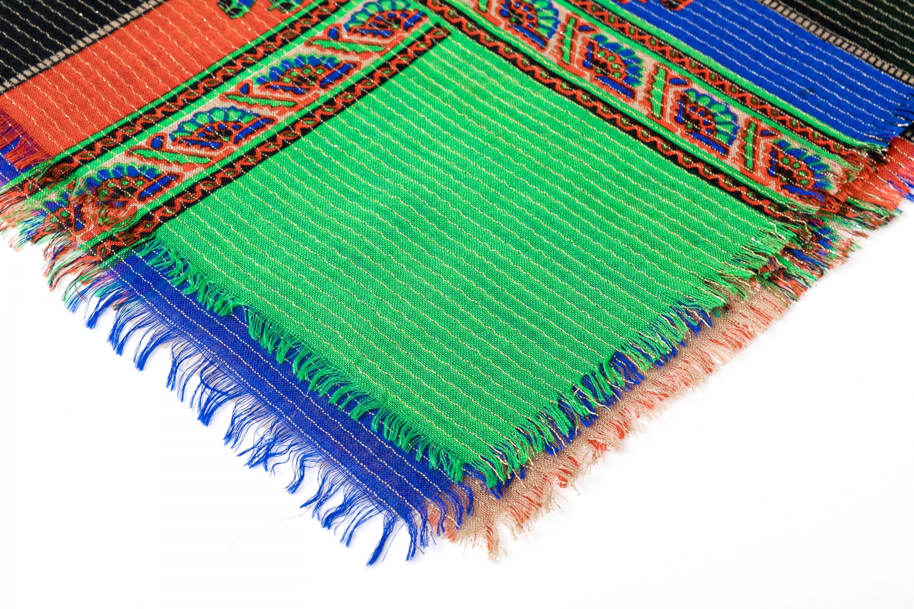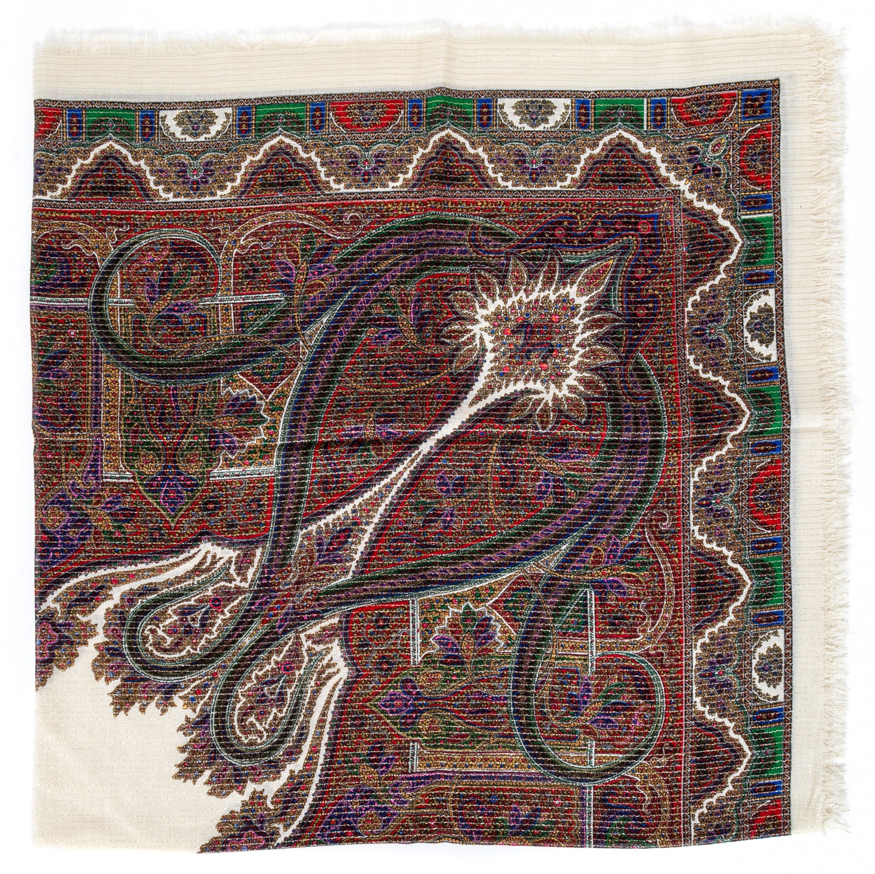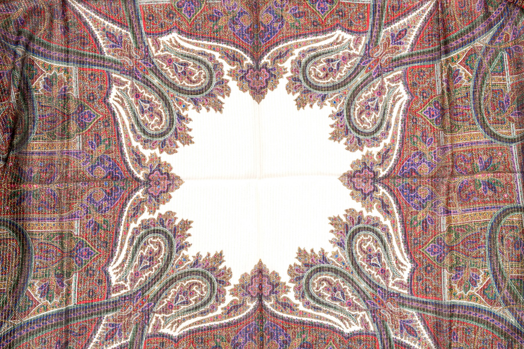 Dimensions: Sizes vary 53" x 53"-Red Plaid, black butterflies, Four Multicolored with Fringe Edges, 64" L x 14 1/2" W-Cream Scarf with Fringe.