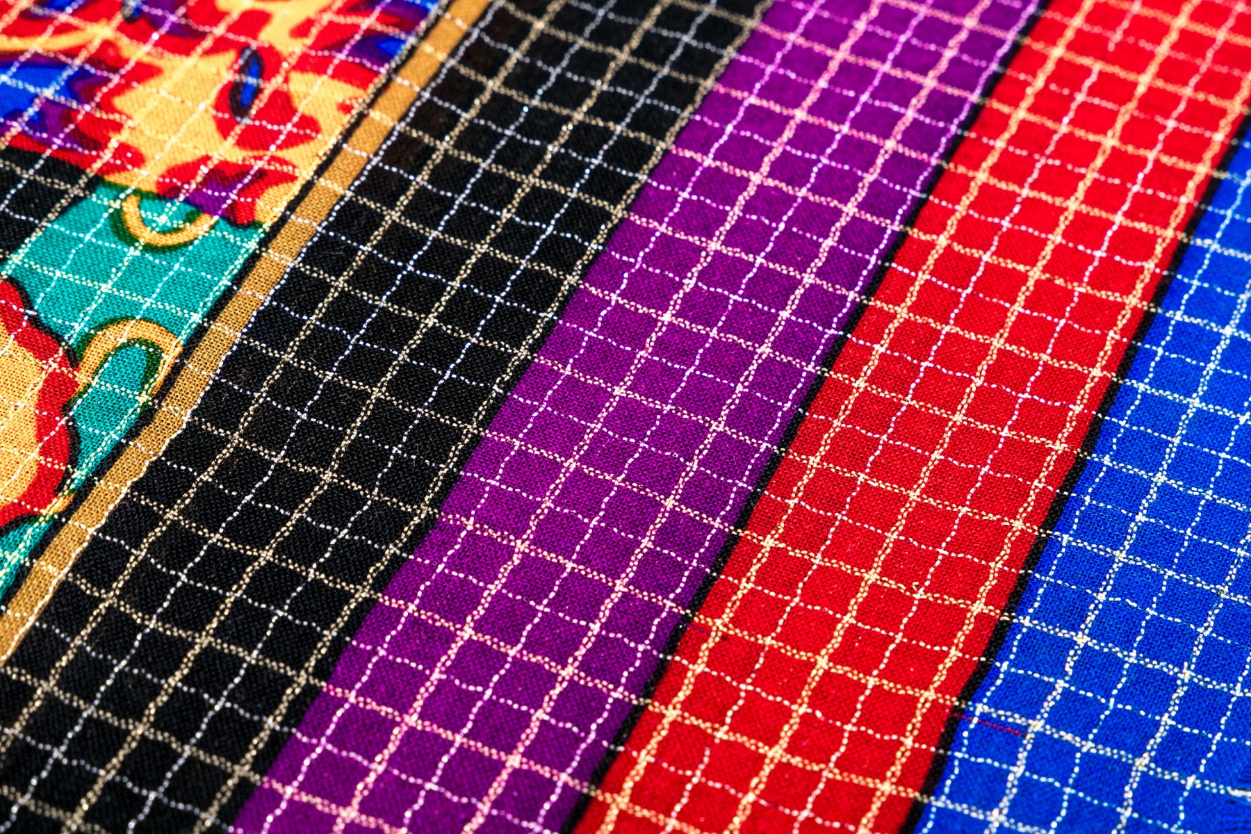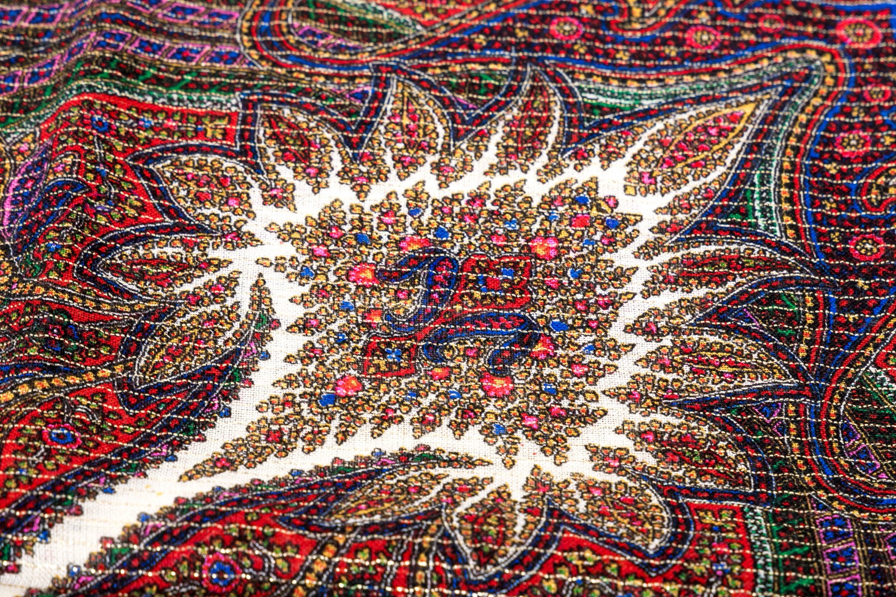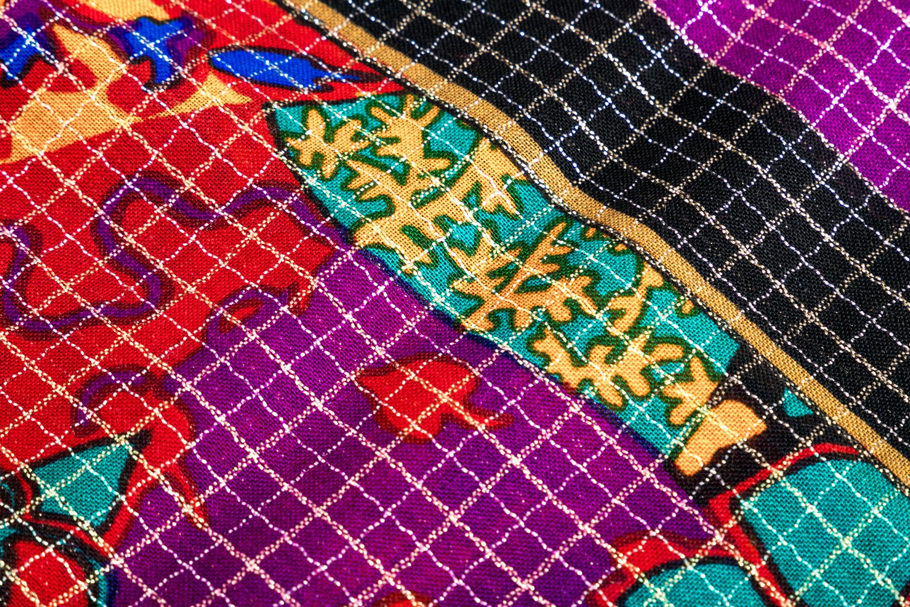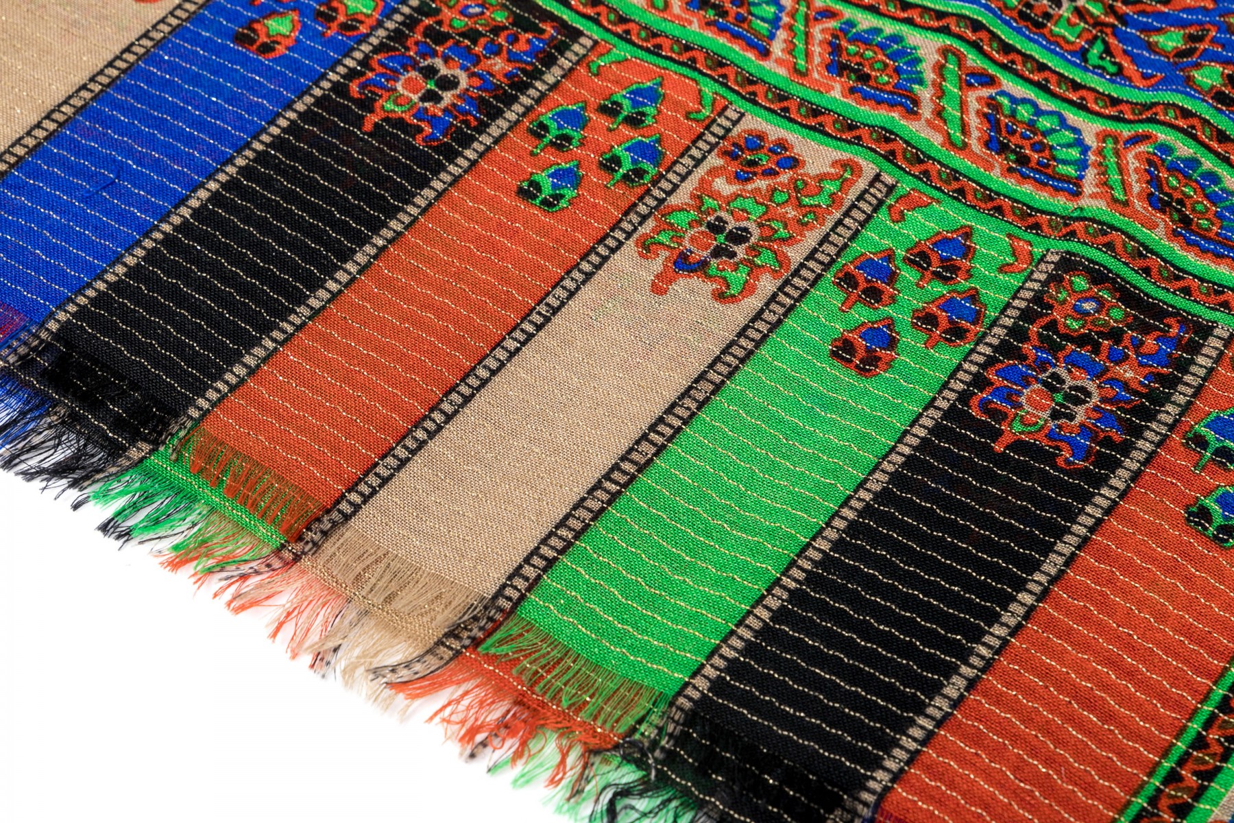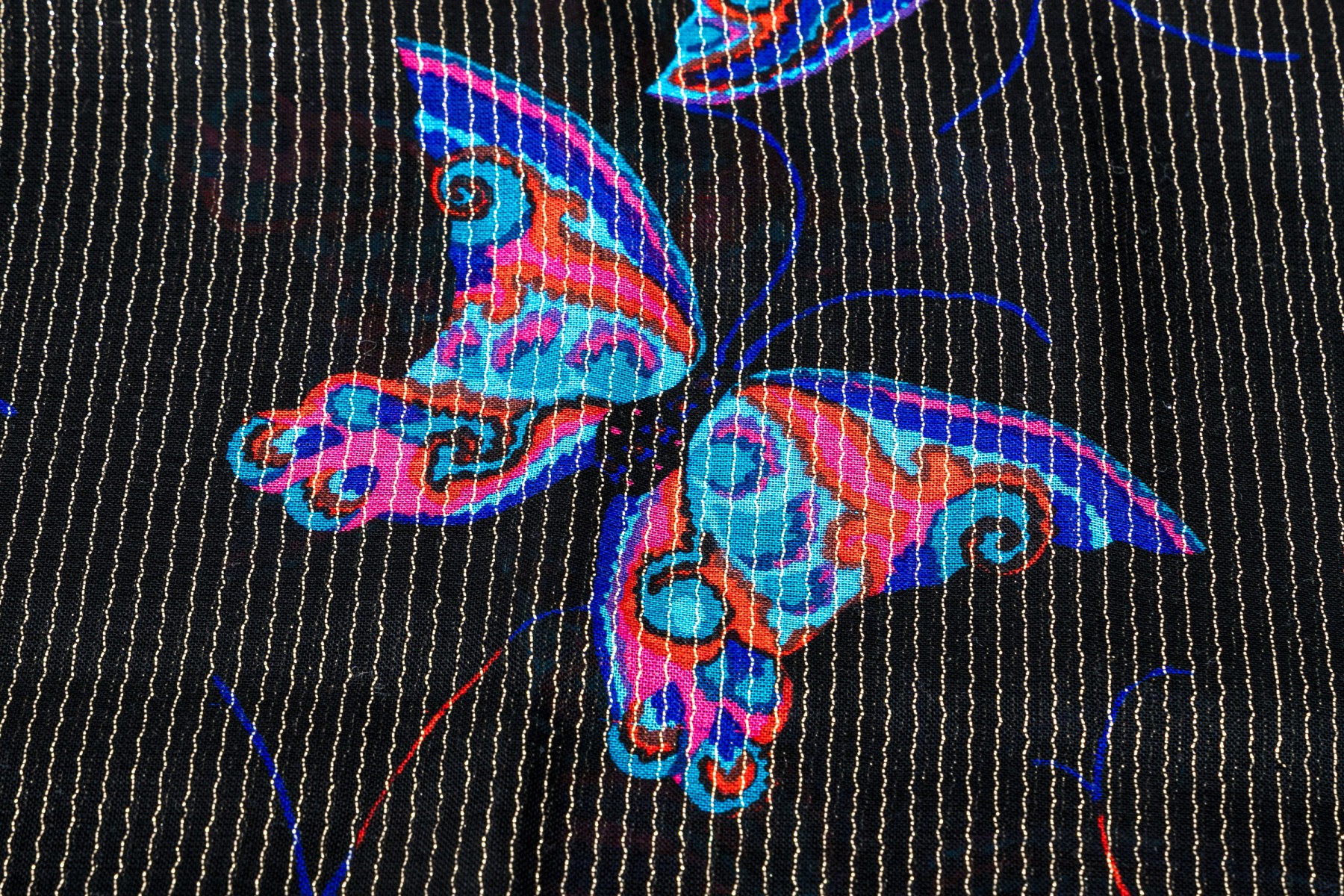 Dimensions: Sizes vary 53" x 53"-Red Plaid, black butterflies, Four Multicolored with Fringe Edges, 64" L x 14 1/2" W-Cream Scarf with Fringe.