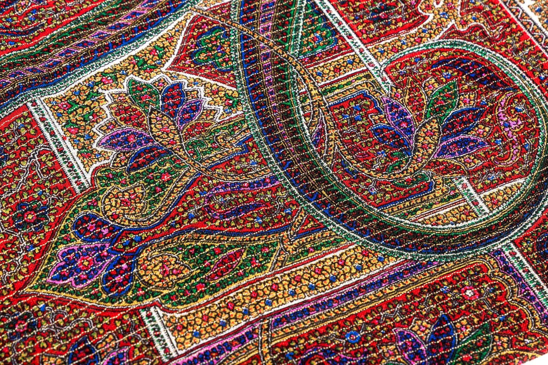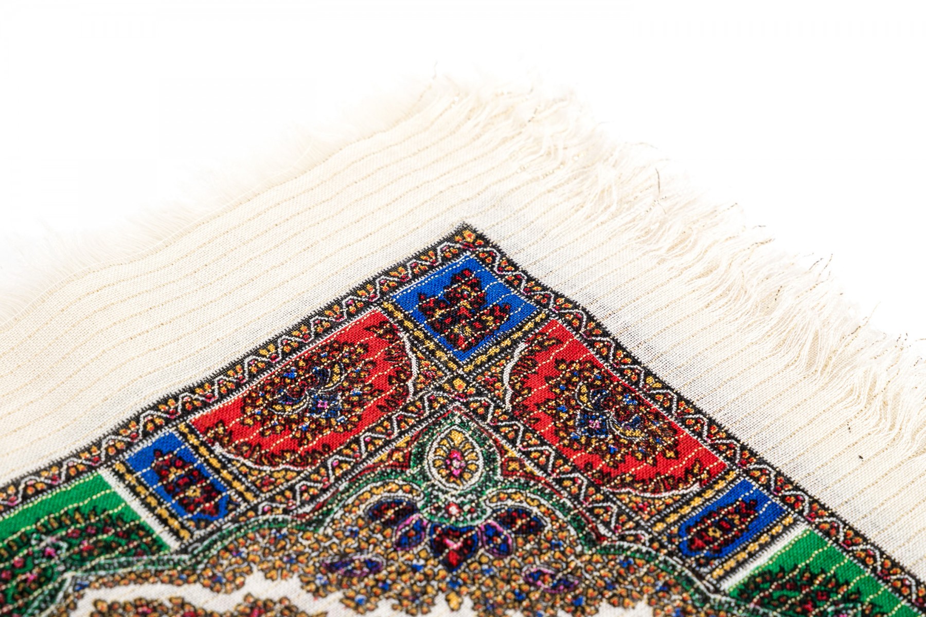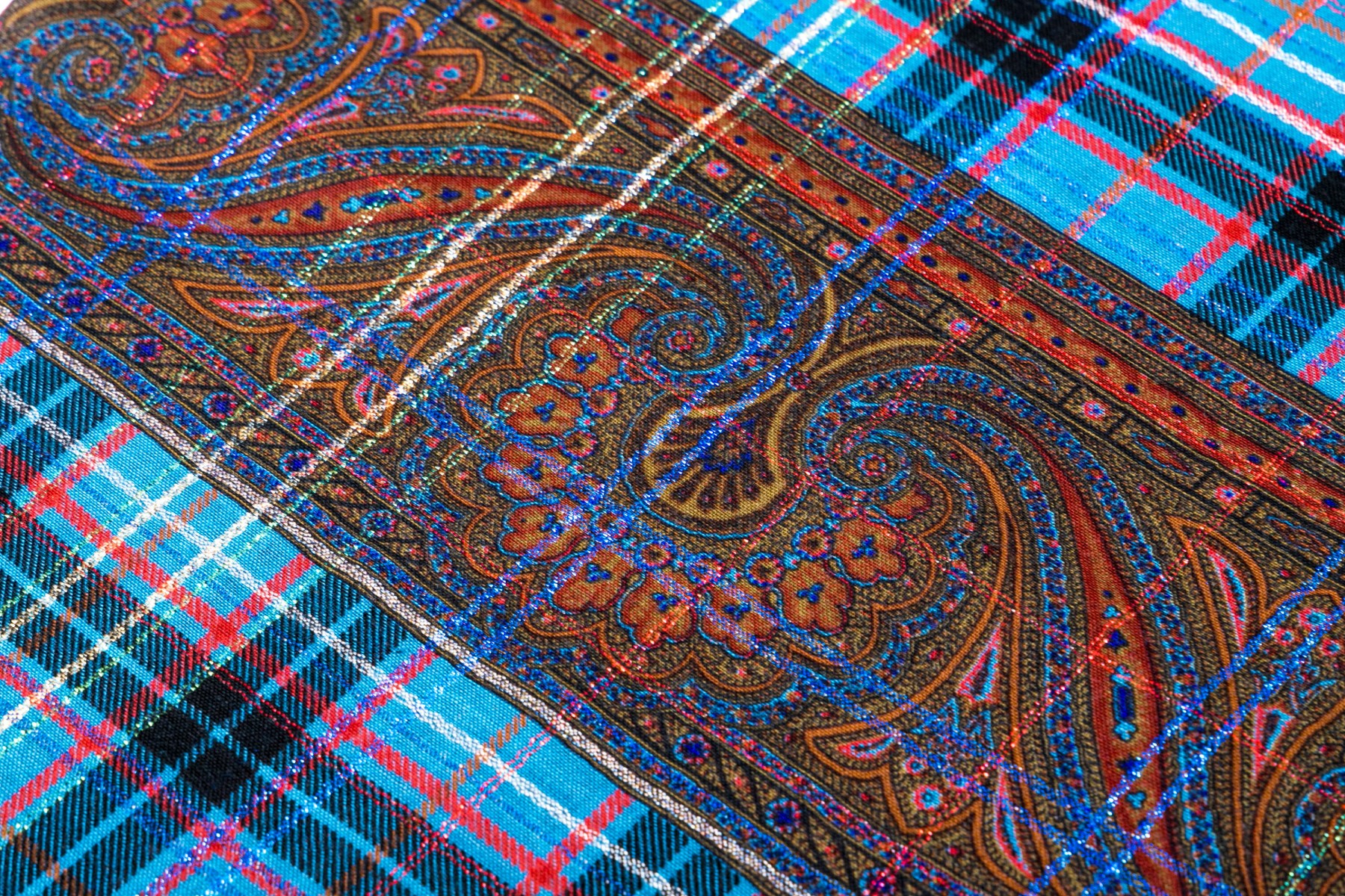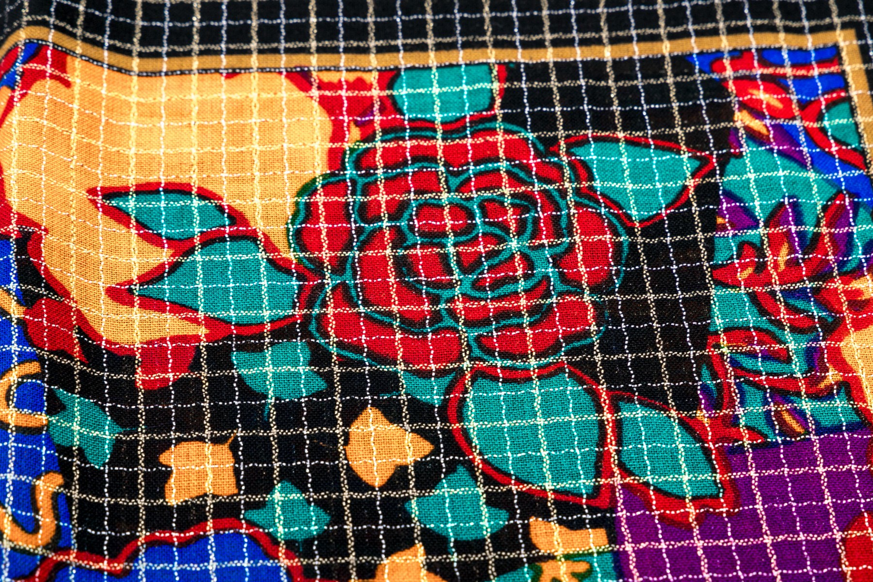 Dimensions: Sizes vary 53" x 53"-Red Plaid, black butterflies, Four Multicolored with Fringe Edges, 64" L x 14 1/2" W-Cream Scarf with Fringe.