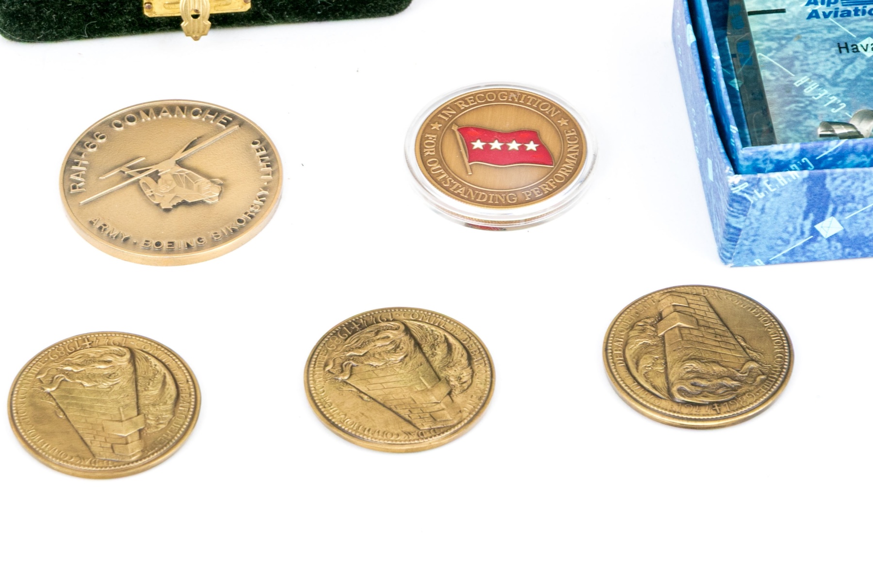 An excellent collection of varied coins, medallions and paperweights, some with boxes.