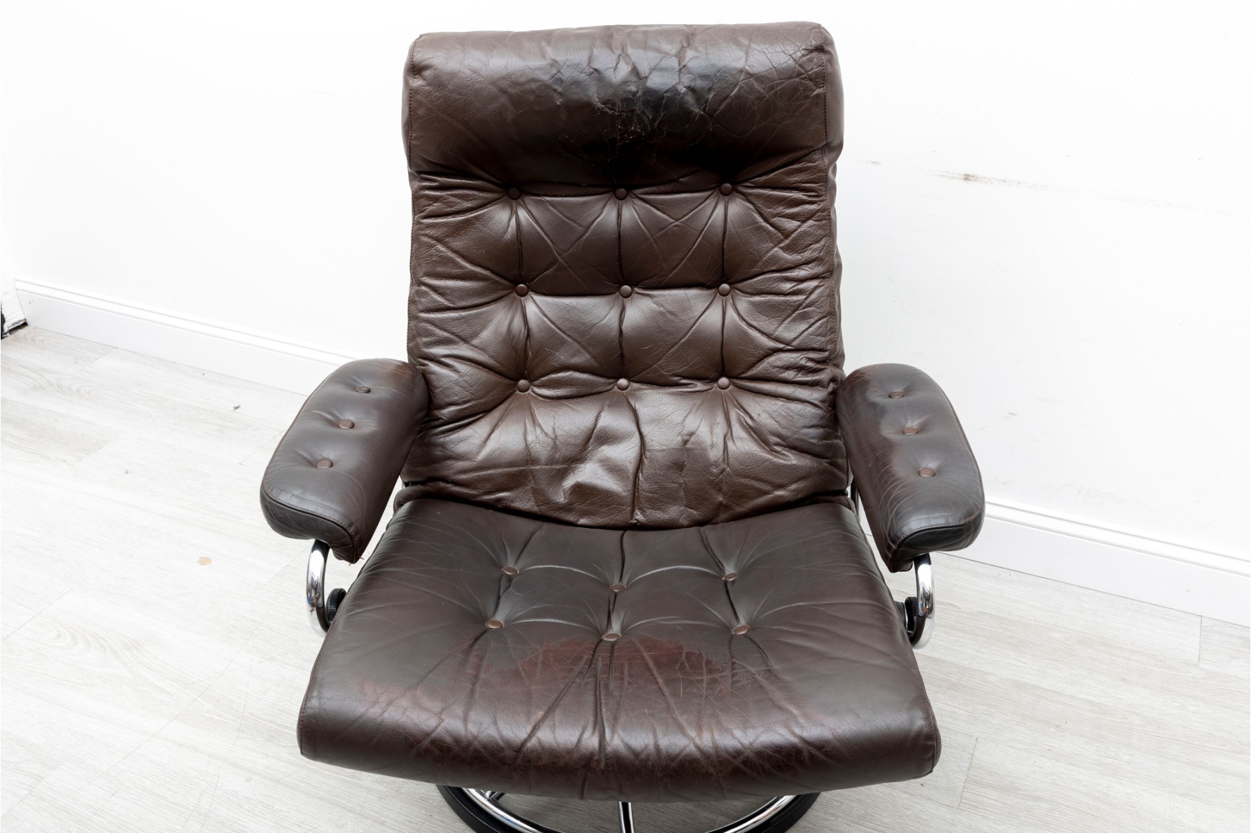 Excess wear to leather. Creasing & color loss. See photos for details.