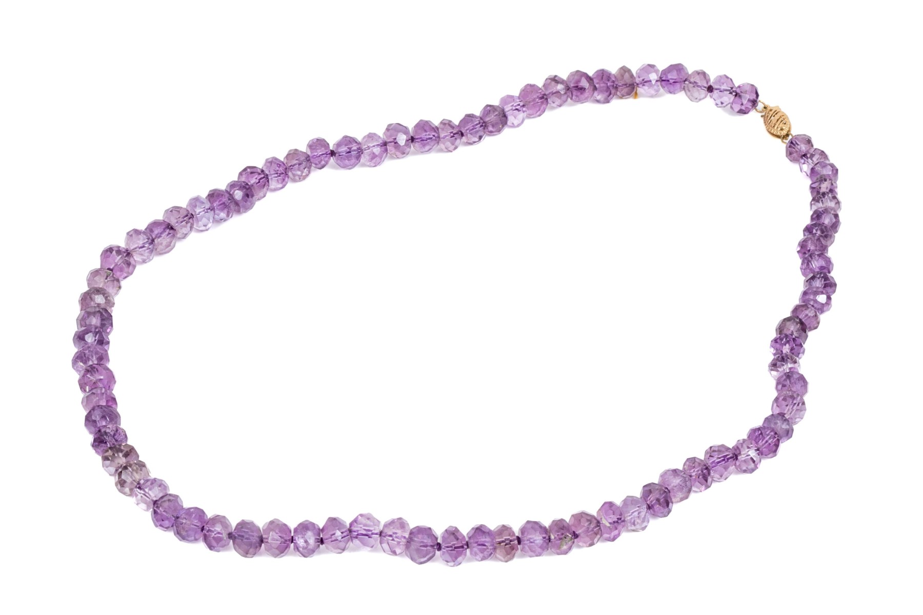Elegant Faceted Purple Amethyst Bead Necklace, With A 14k Yellow Gold Clasp #262610. Black Rock Galleries provides high end estate liquidation services through online estate auctions and a 50,000 sq ft designer showroom. estate liquidator, estate sale, online auction, antiques, fine art, liquidation, clean outs, auction, consignment, interior design, fine jewelry, collectibles, appraisals, estate appraisals, estate services, decor, furniture, furniture consignment, antique center, consignment shop. We offer appraisal services and specialize in fine art, jewelry, antiques and decorative arts. Sell with us. Black Rock Galleries is the tri-state's largest estate liquidator serving New England and the greater New York City area. We are the trusted source for expert appraisals, auction services, estate sales, and consignments. Black Rock Galleries is the east coast's largest and most trusted estate liquidator, with locations in Connecticut, greater Boston, MA and Raleigh, NC, Fairfield, Southport, Apex, TX. We are the best source for expert appraisals, auction services, estate sales and consignments. We have served thousands of families and estates with compassion, professionalism and expertise. BRG works with attorneys, executors, realtors and families to bring the greatest return on personal and estate property in the current market. Our unique combination of services make us the easy choice to get the job done in a timely and stress-free manner. We are with you from the initial consultation to the final clean out. Our house-built online auction software platform offers clients a dynamic approach to liquidating their personal property. This venue is most successful in bringing the best return with the least amount of disruption for our clients. See our services page for a complete description of this offering. Elegant Faceted Purple Amethyst Bead Necklace, With A 14k Yellow Gold Clasp #262610