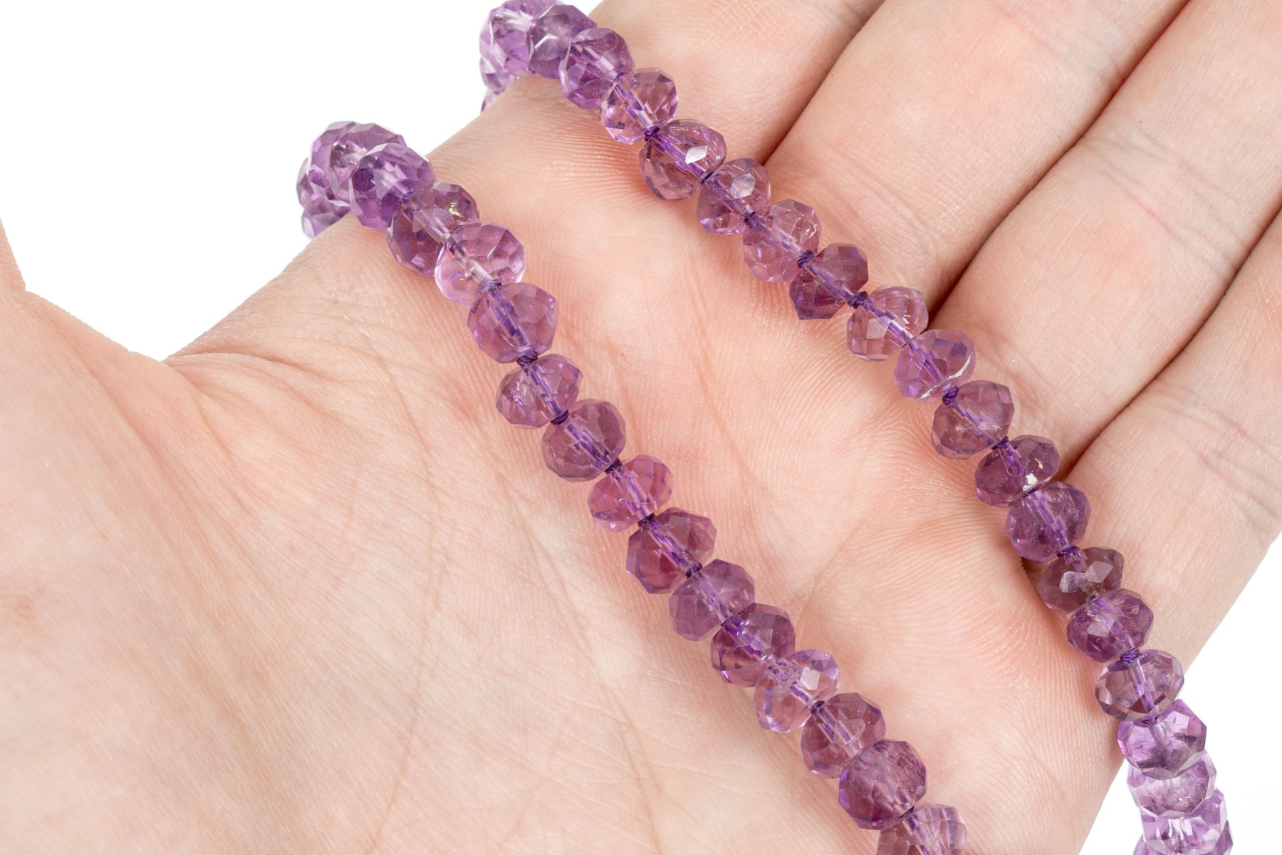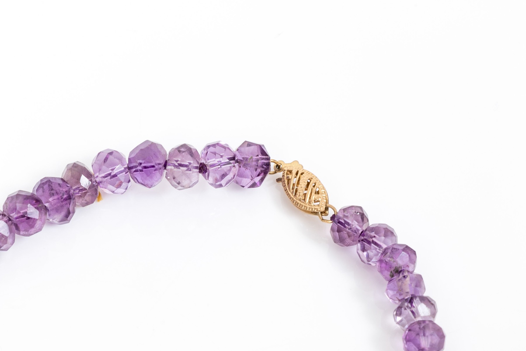 Elegant faceted purple amethyst bead necklace, with a 14k yellow gold fishhook style clasp
