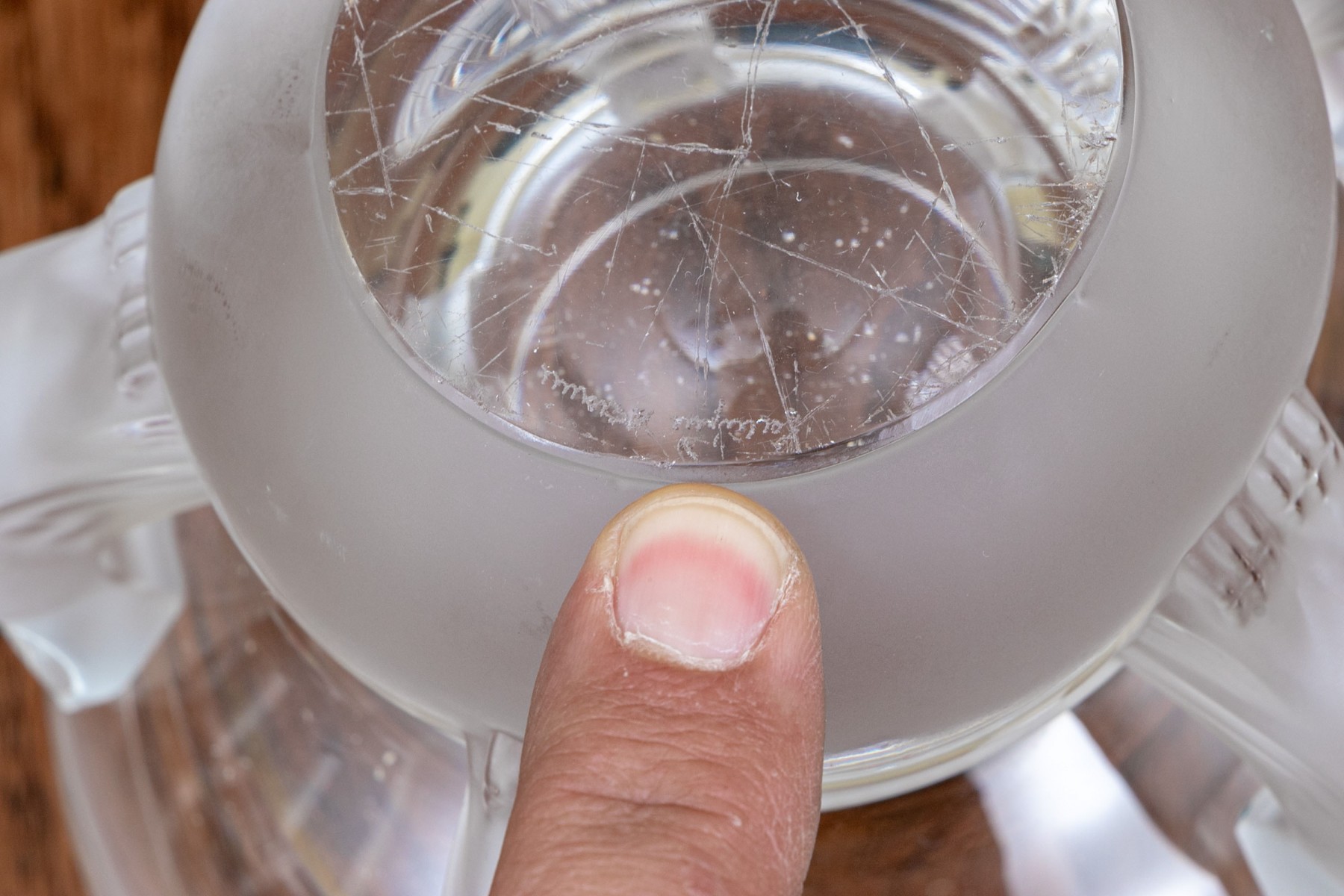 Condition: There are numerous surface scratches and wear to the underfoot which is negligible when the bowl is standing upright. Only other minor surface wear commensurate with age, handling and display. Presents elegantly well overall.