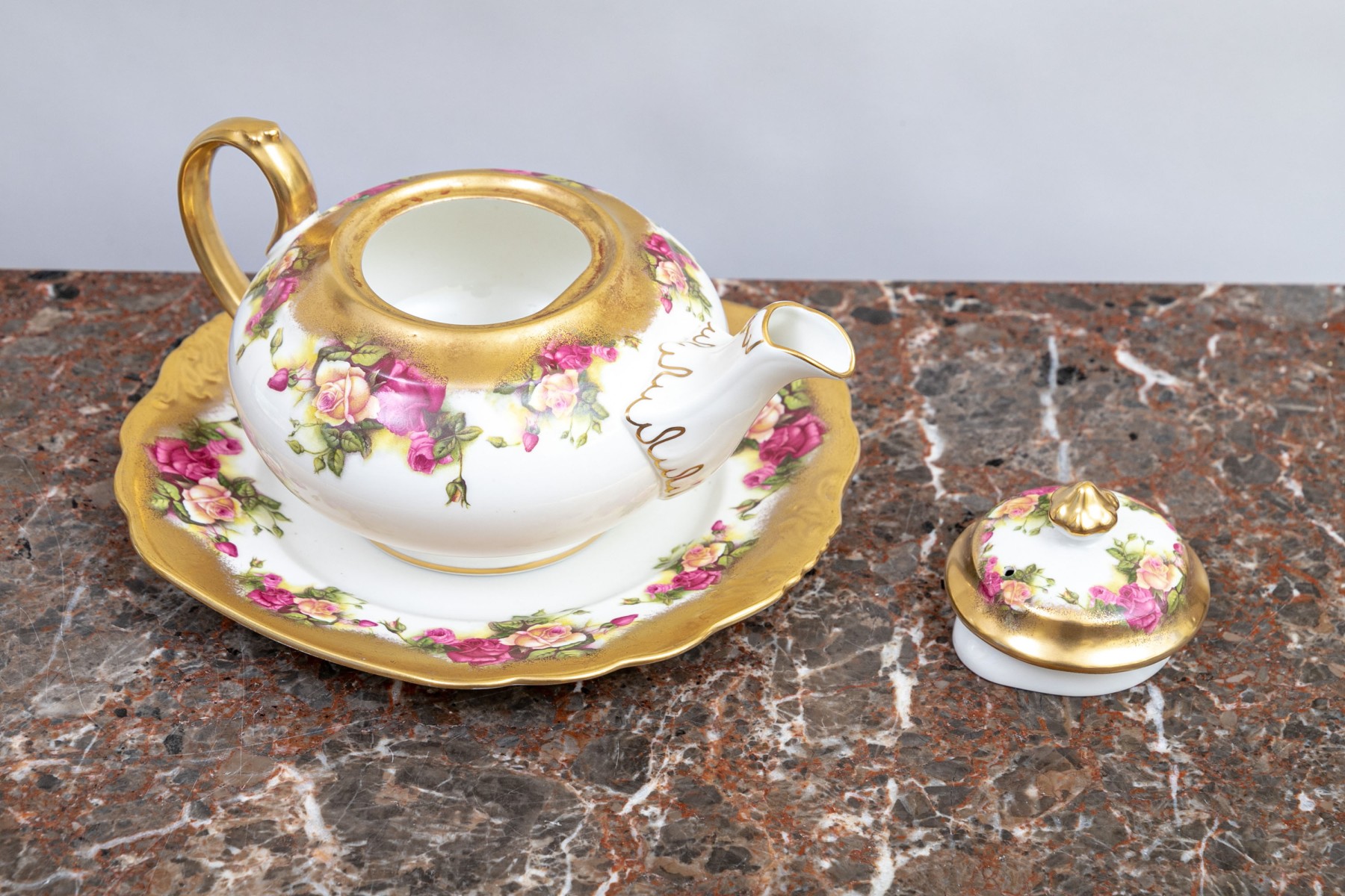 Including exceptionally decorated with polychromatic floral sprays and gilt finishes on bone white china ground.