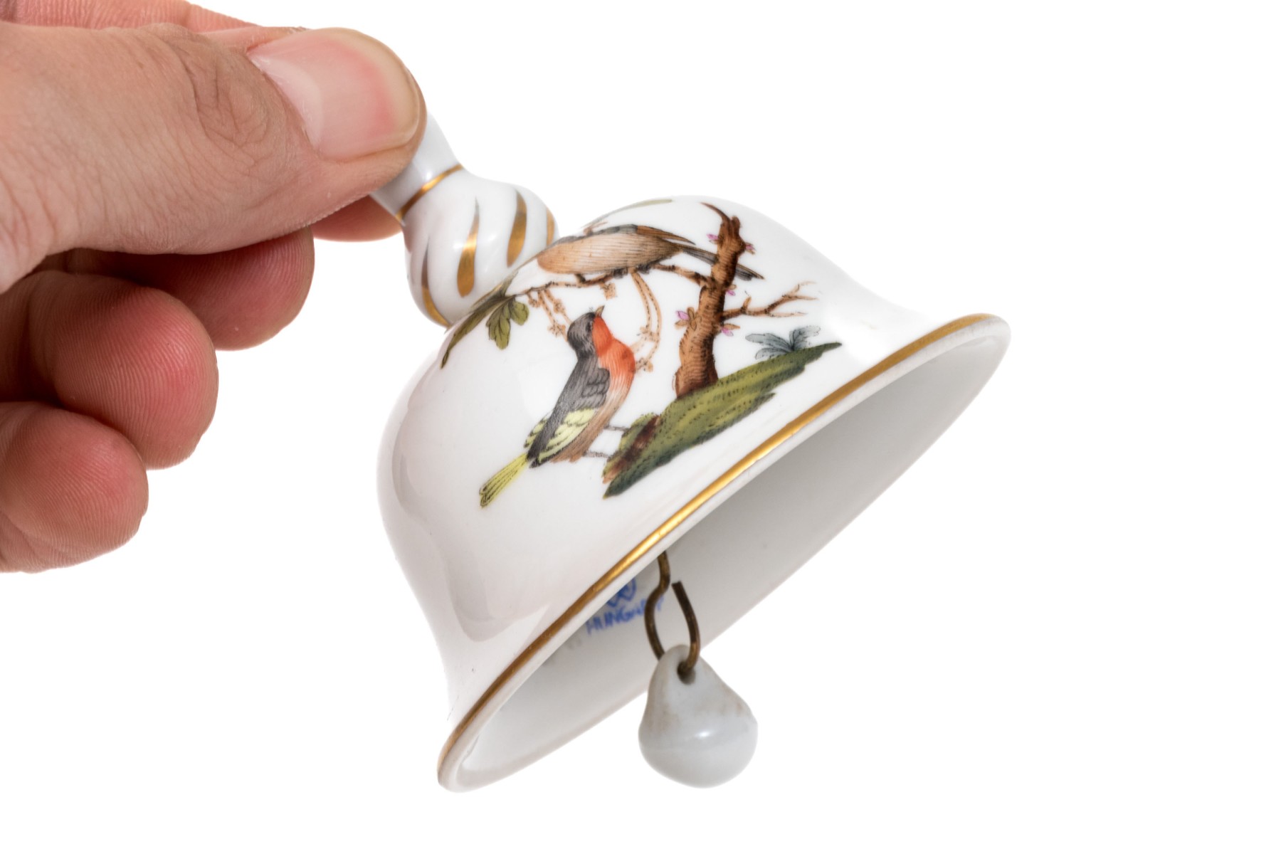 Herend Rothschild bird bell. Delicately painted bird image with gold gilt accents.