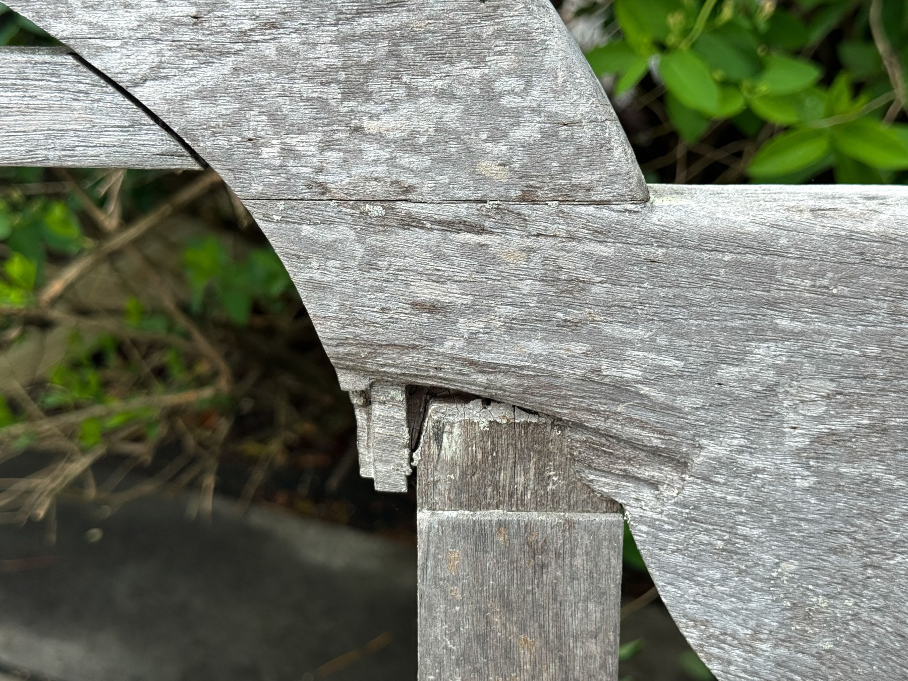 A loss to the rail on the top right back but still a wonderful bench with plenty more life to live.