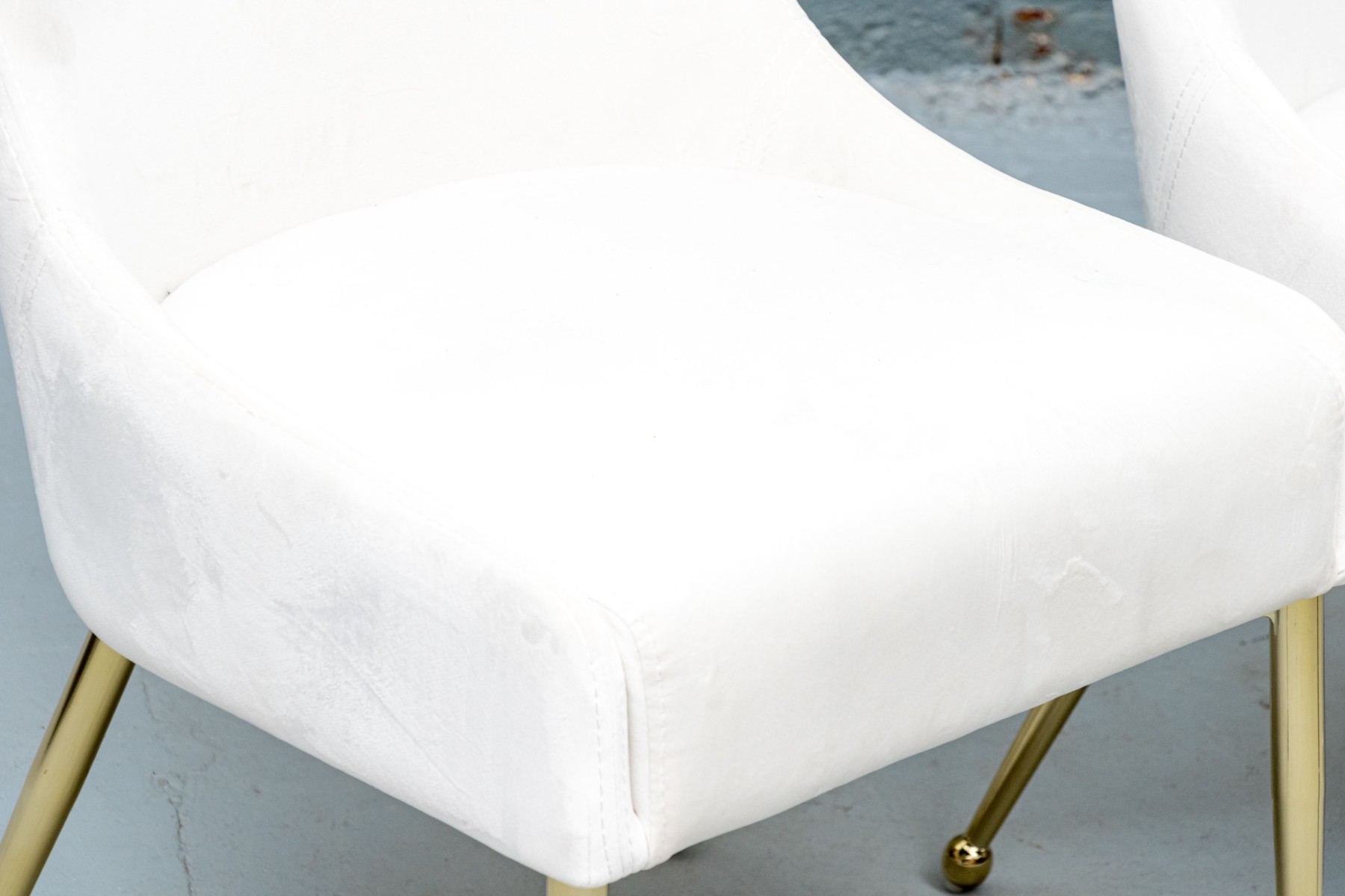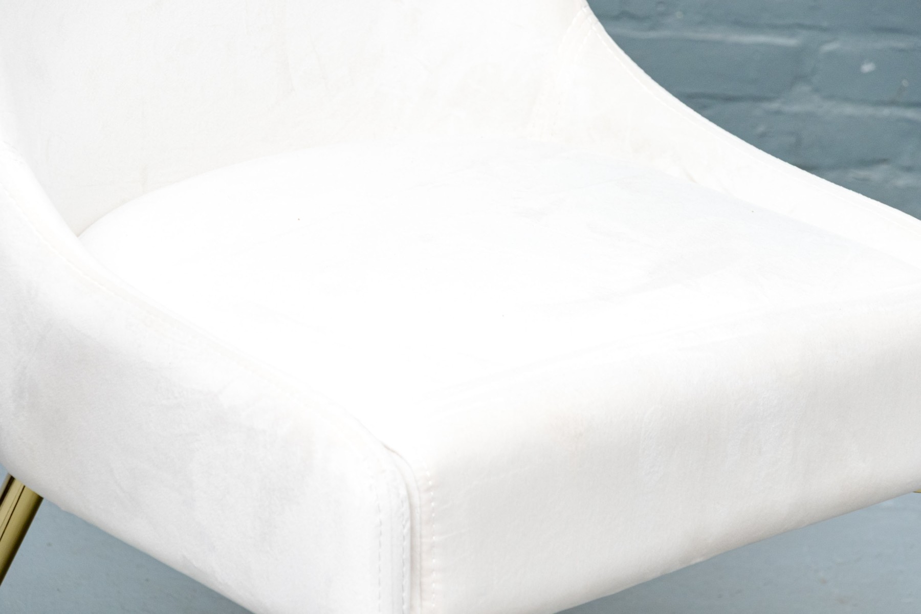 Some scuffs and spot stains to upholstery which could be professionally cleaned. One chair with a is very slight bend to the leg. Aside from one slightly off leg, the chairs have only gentle surface blemishes and gentle wear commensurate with gentle age and care. *Please note: Items may not include all original parts or accessories. Some screws, brackets, hardware, assemblies may be missing.
