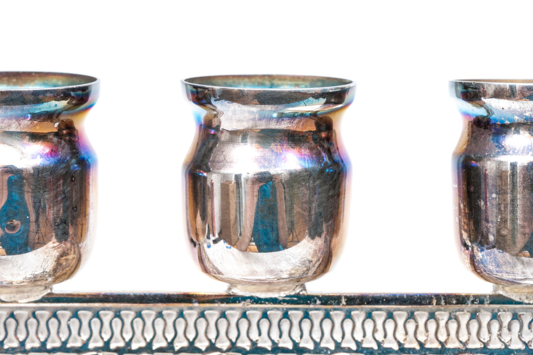 Condition: Tarnishing and some bends, fire scale from candles. Removable ninth candle holder.