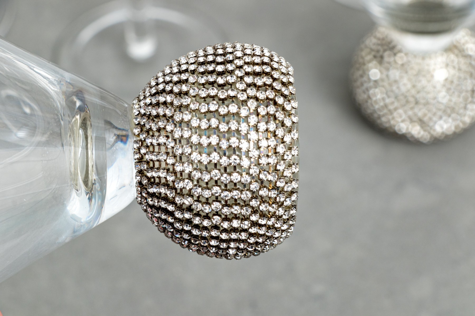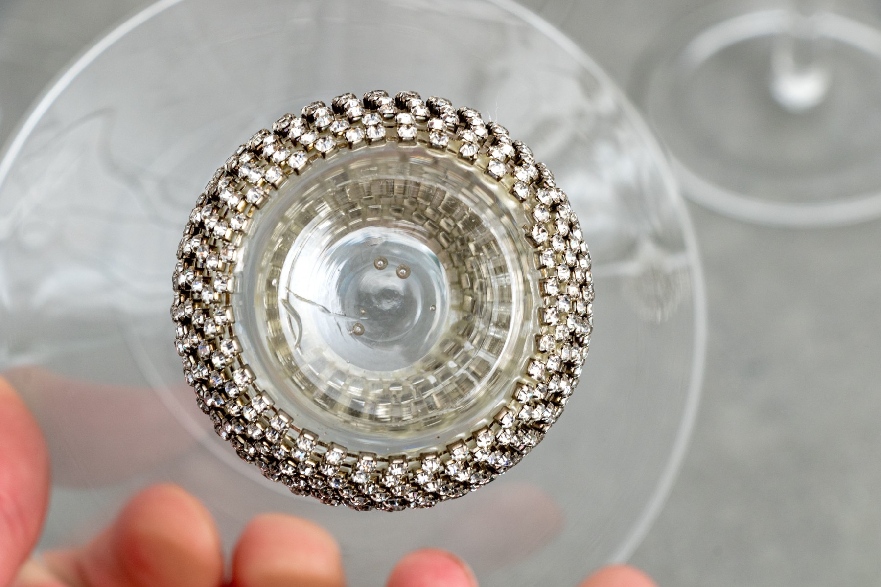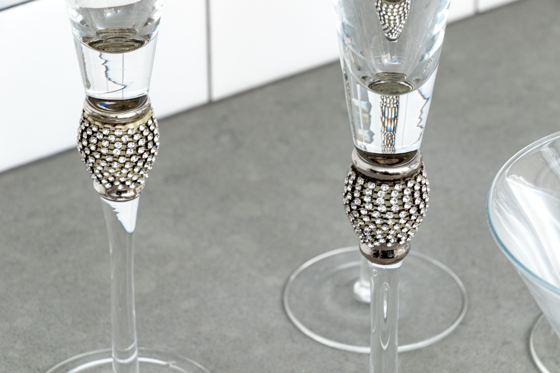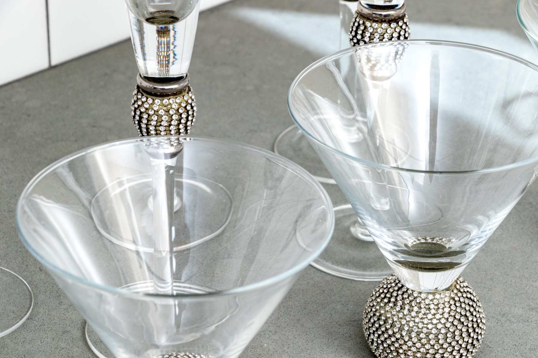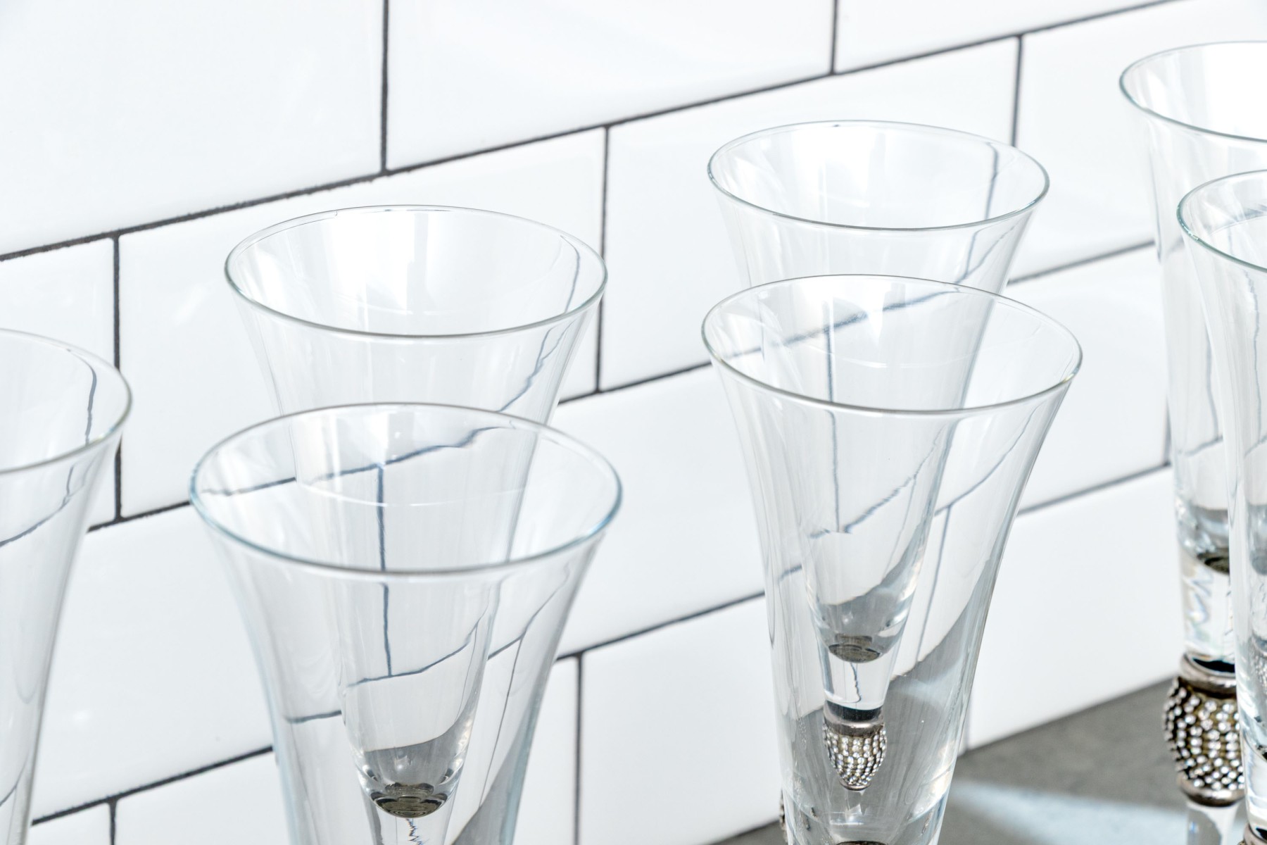 7 flutes, 4 martinis. All with decorative embellished sections.