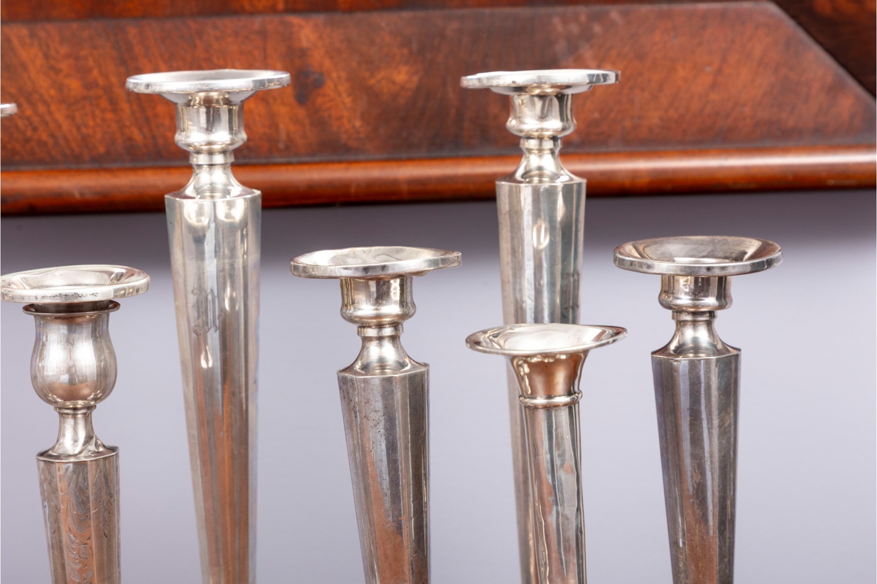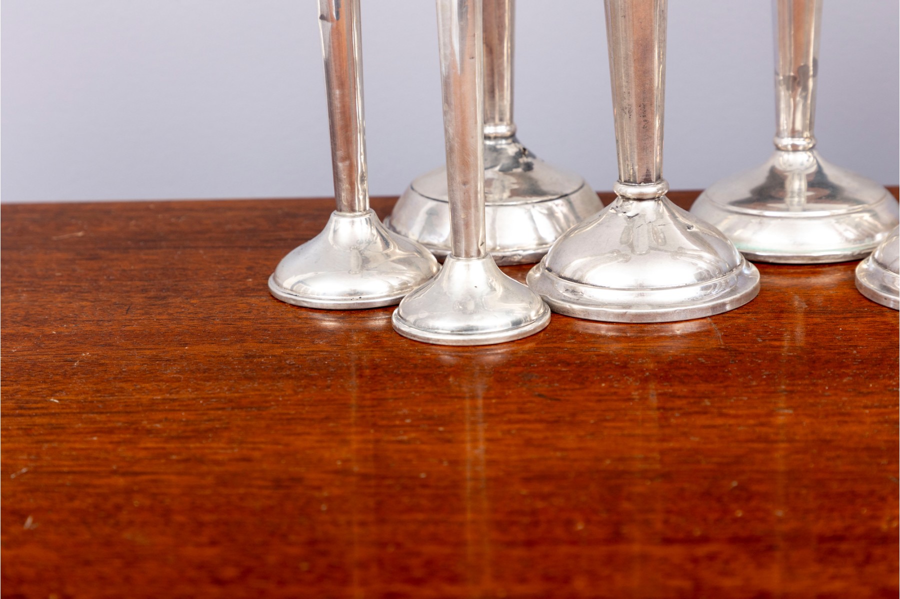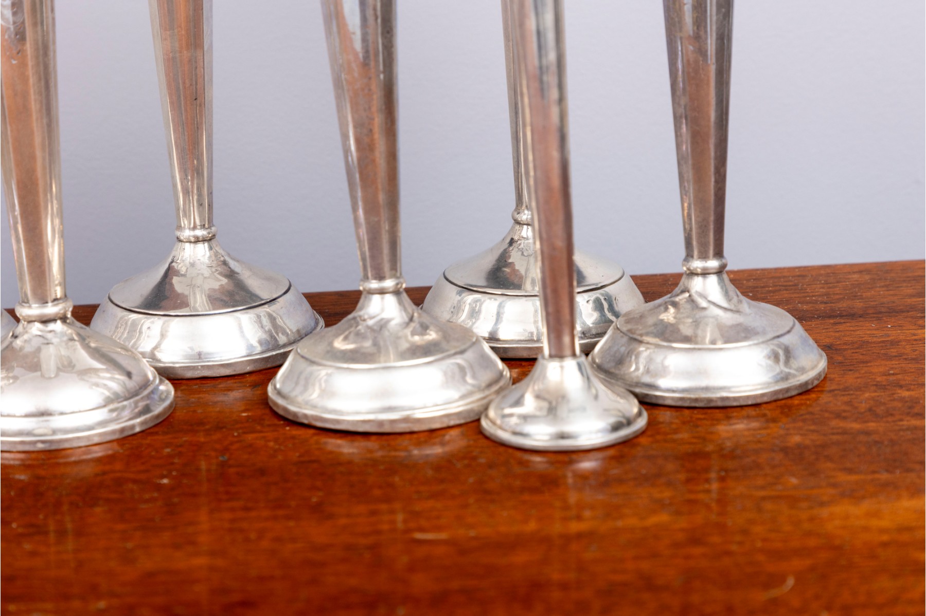 A lovely collection of weighted sterling candlesticks, including five pairs and one single. All with similar tapered profiles over circular bases.