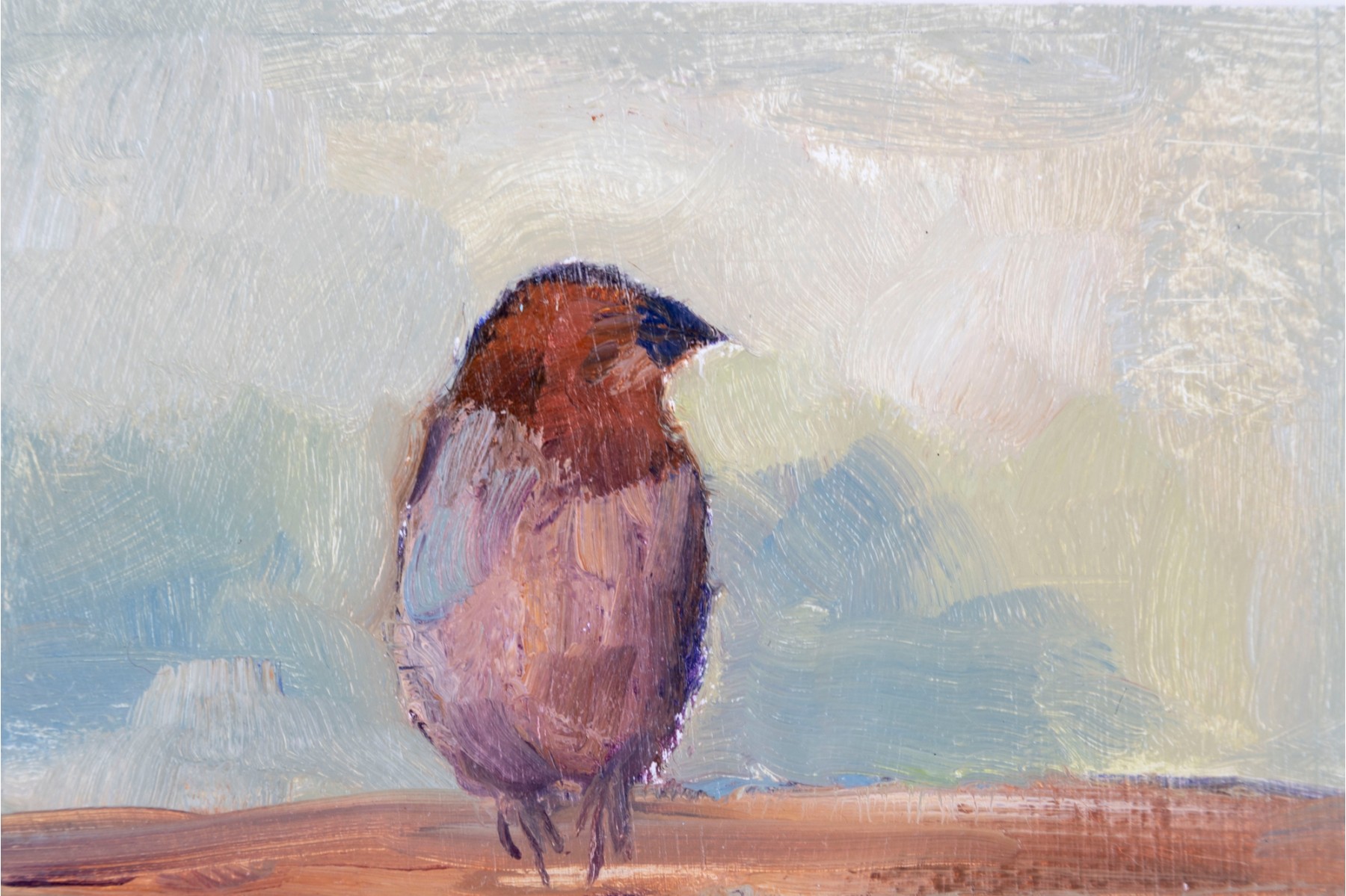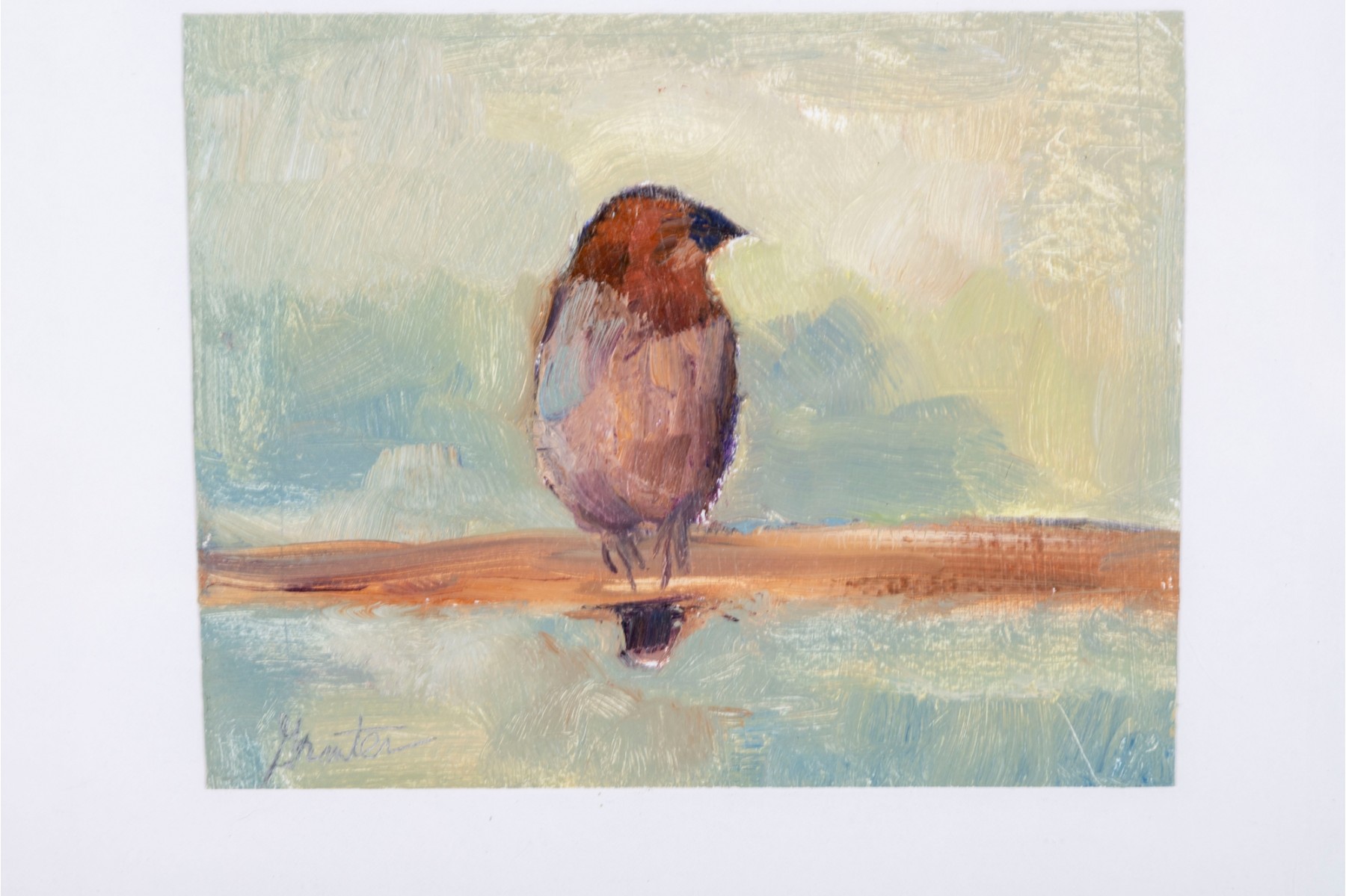 Ellen Welch Granter "Brown Finch Composed" Oil On Paper Painting