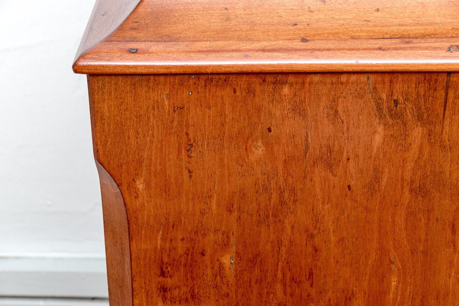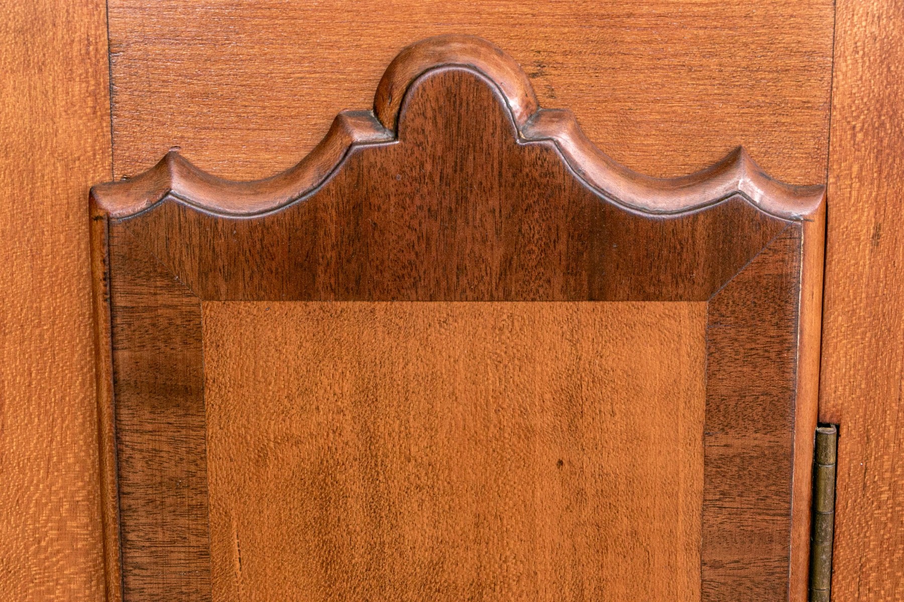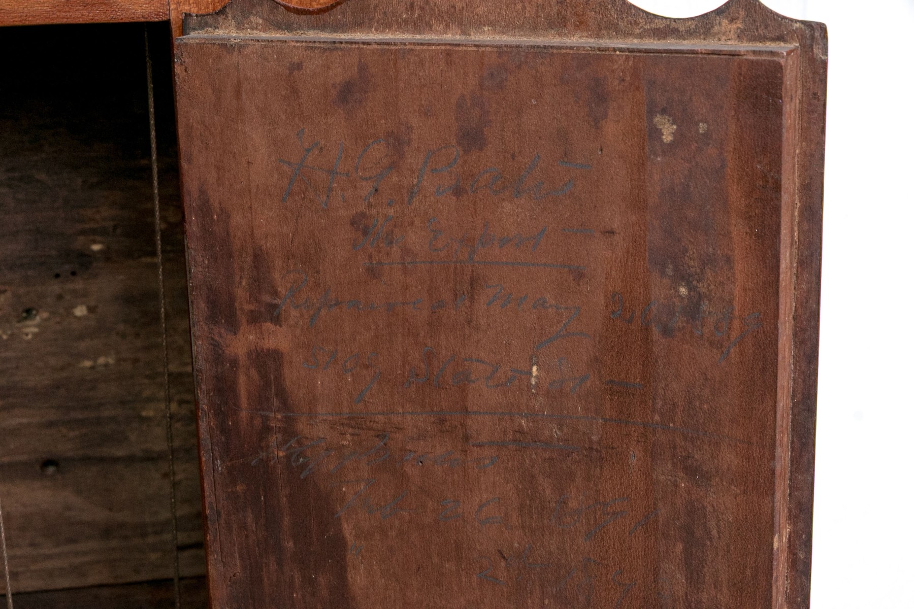A gorgeous Elnathan Taber (Massachusetts, 1768-1854) Federal tall case clock in classic design, finely crafted with gorgeous warm-toned brown wood with a swan neck pediment sporting rosettes and urn-form finials over an arched glass case flanked by stately columnar posts around a white dial. The dial, marked E. Taber, is detailed with black Roman numerals, along with two subdials and is decorated with elegant black details at the corners. The trunk of the clock is nicely banded with a darker inlaid panel, leading to a rectangular base with nicely faceted corners and a shapely, serpentine apron on bracket feet. The case more than likely made in the Elijah Warner factory in Lexington Kentucky.
