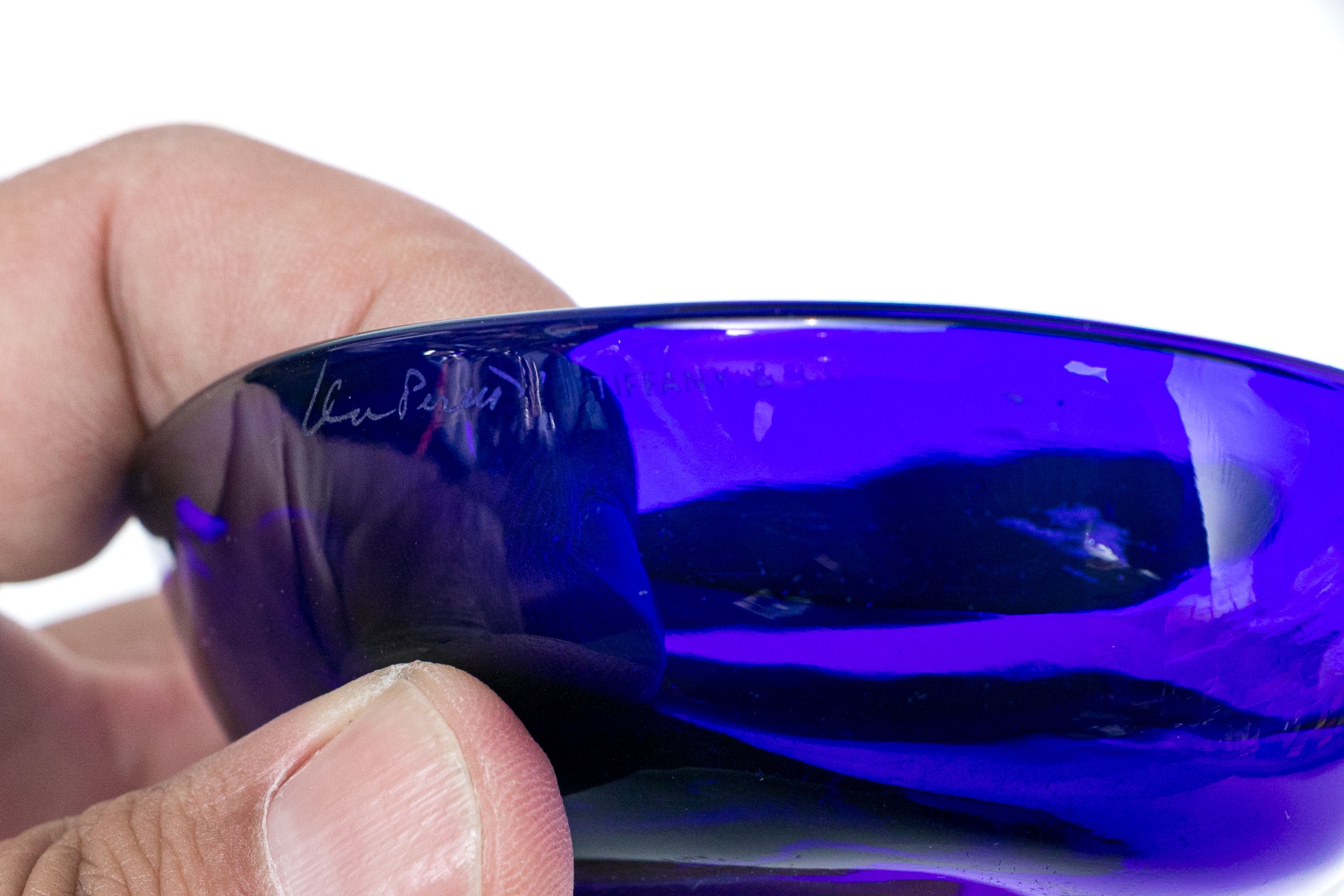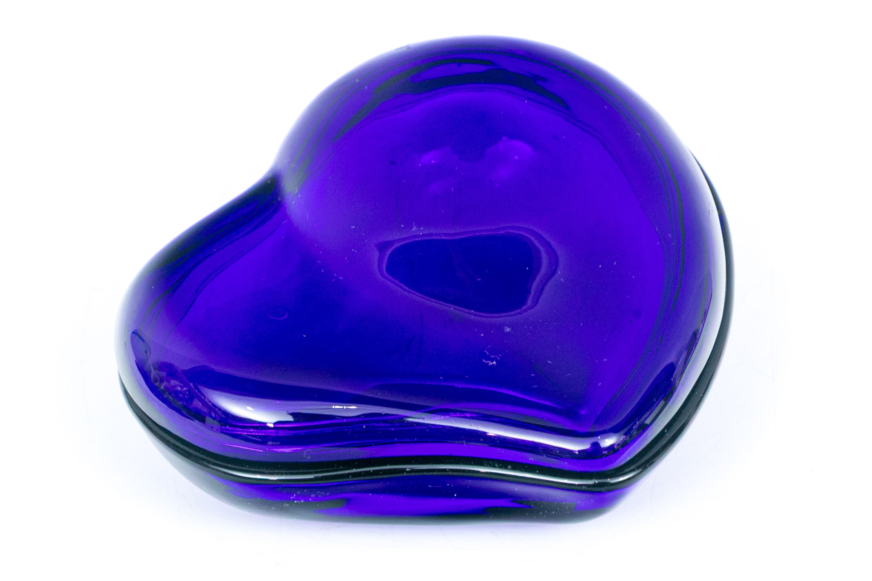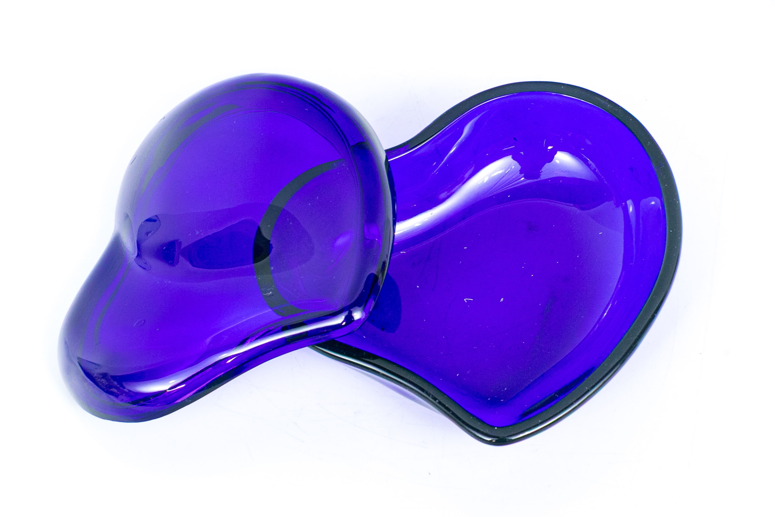 Her iconic cobalt blue glass heart shaped trinket box. Signed.