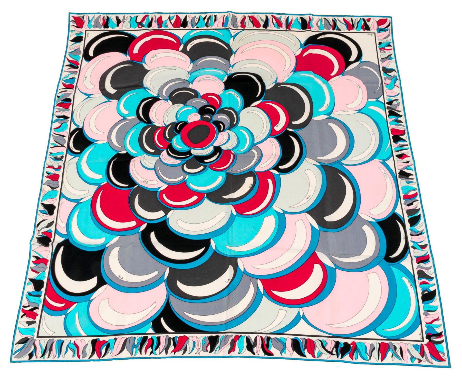 Emilio Pucci lovely dahlia floral motif vintage silk scarf