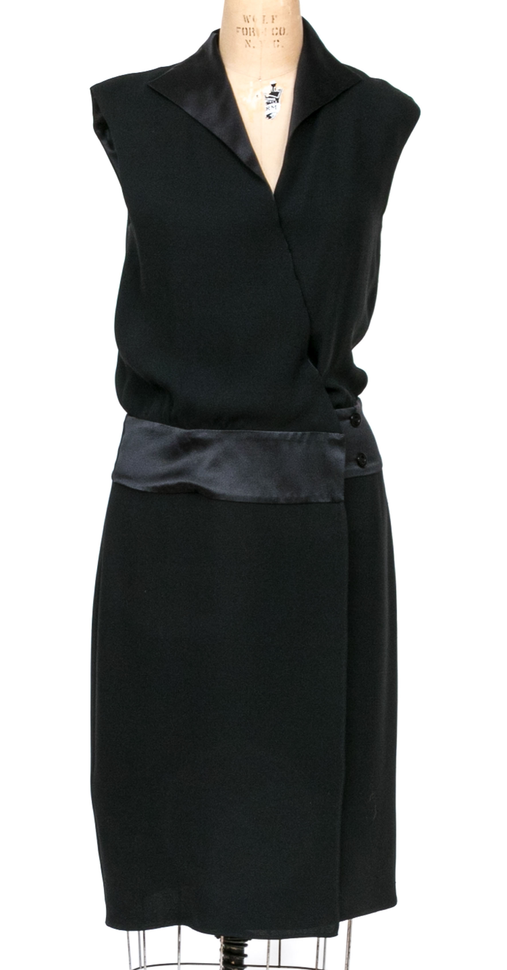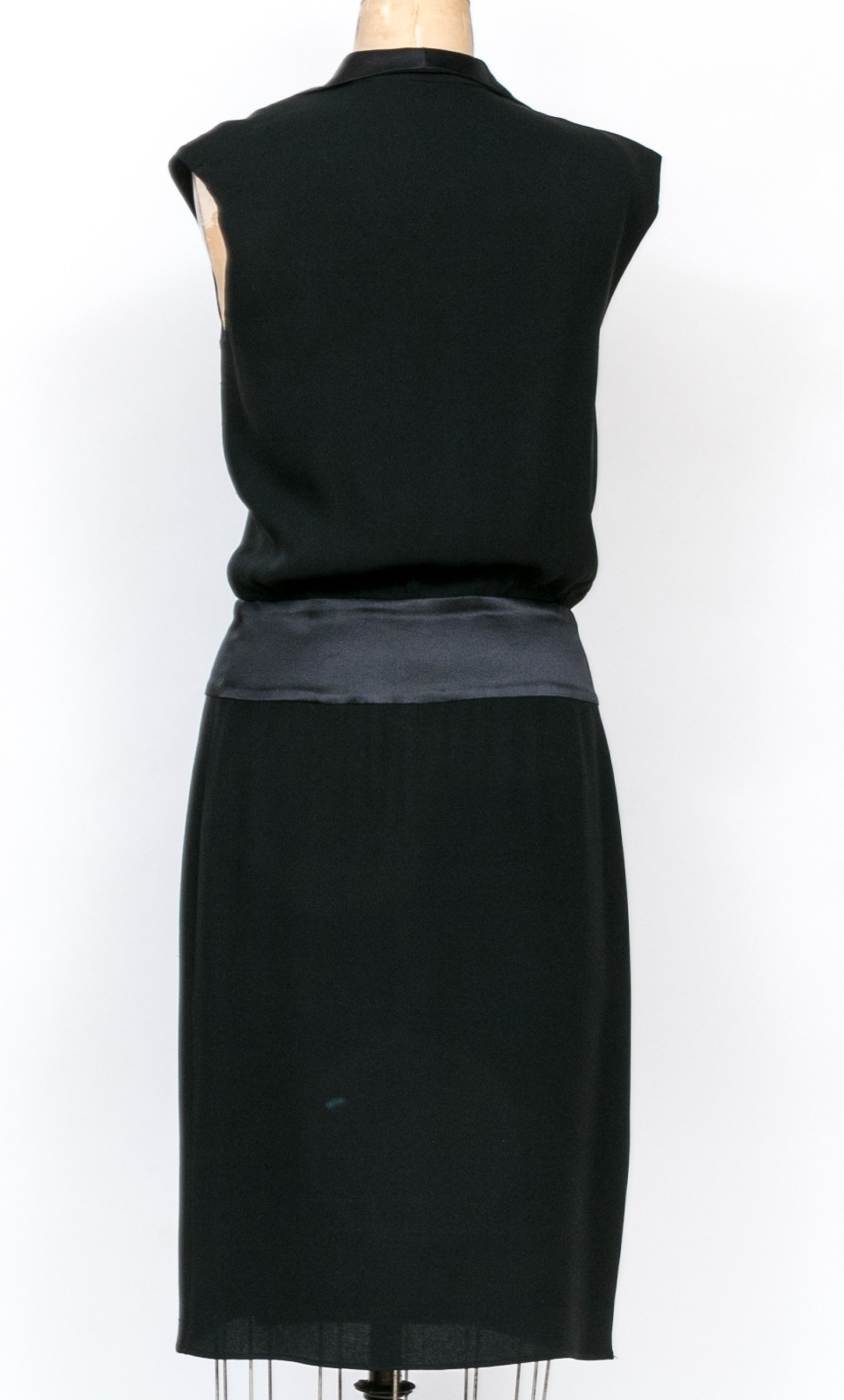 Emmanuel Ungaro fabulous black satin trimmed sleeveless dress