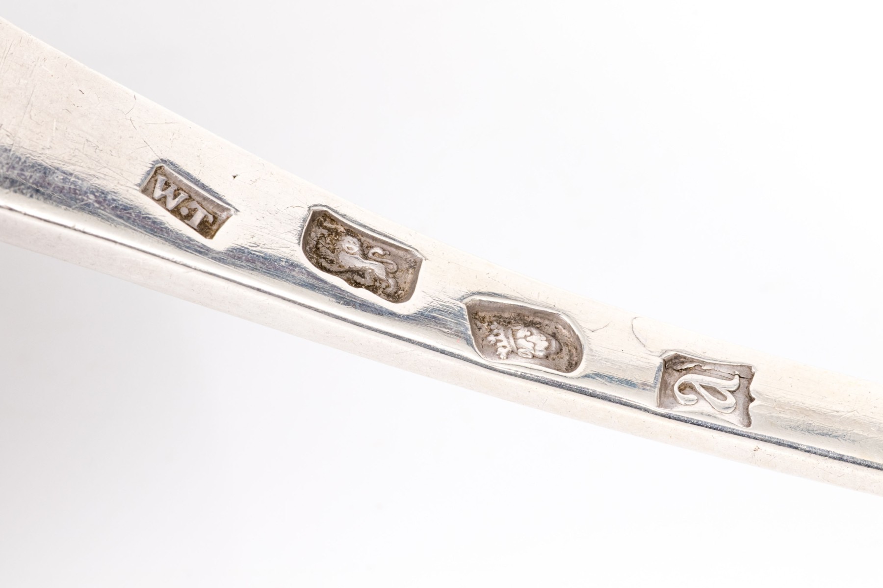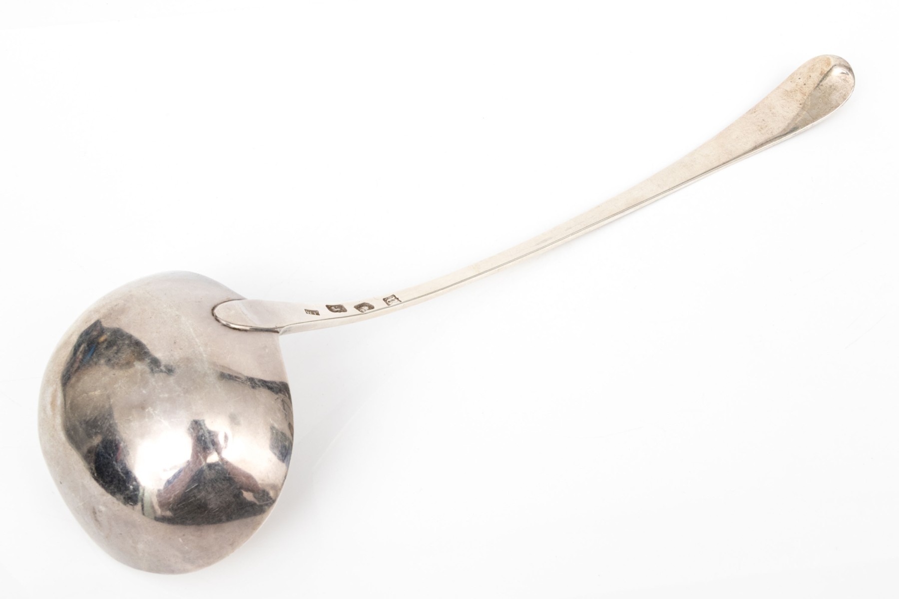 Marked London, 1776-77. By either Walter Tweedie or Wiliam Turton. The ladle with delicate chased foliate scrolled decoration on the end and a fine border.