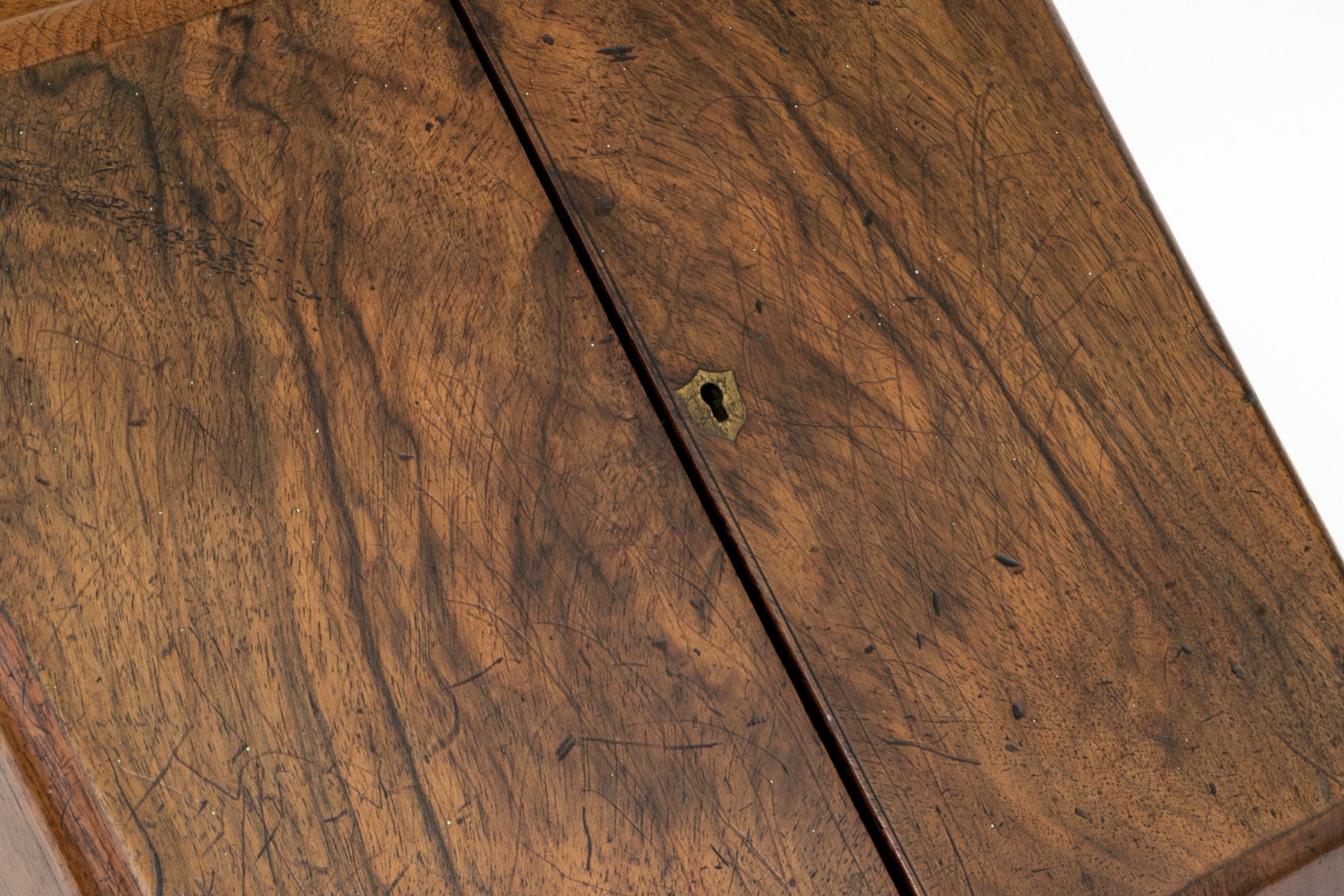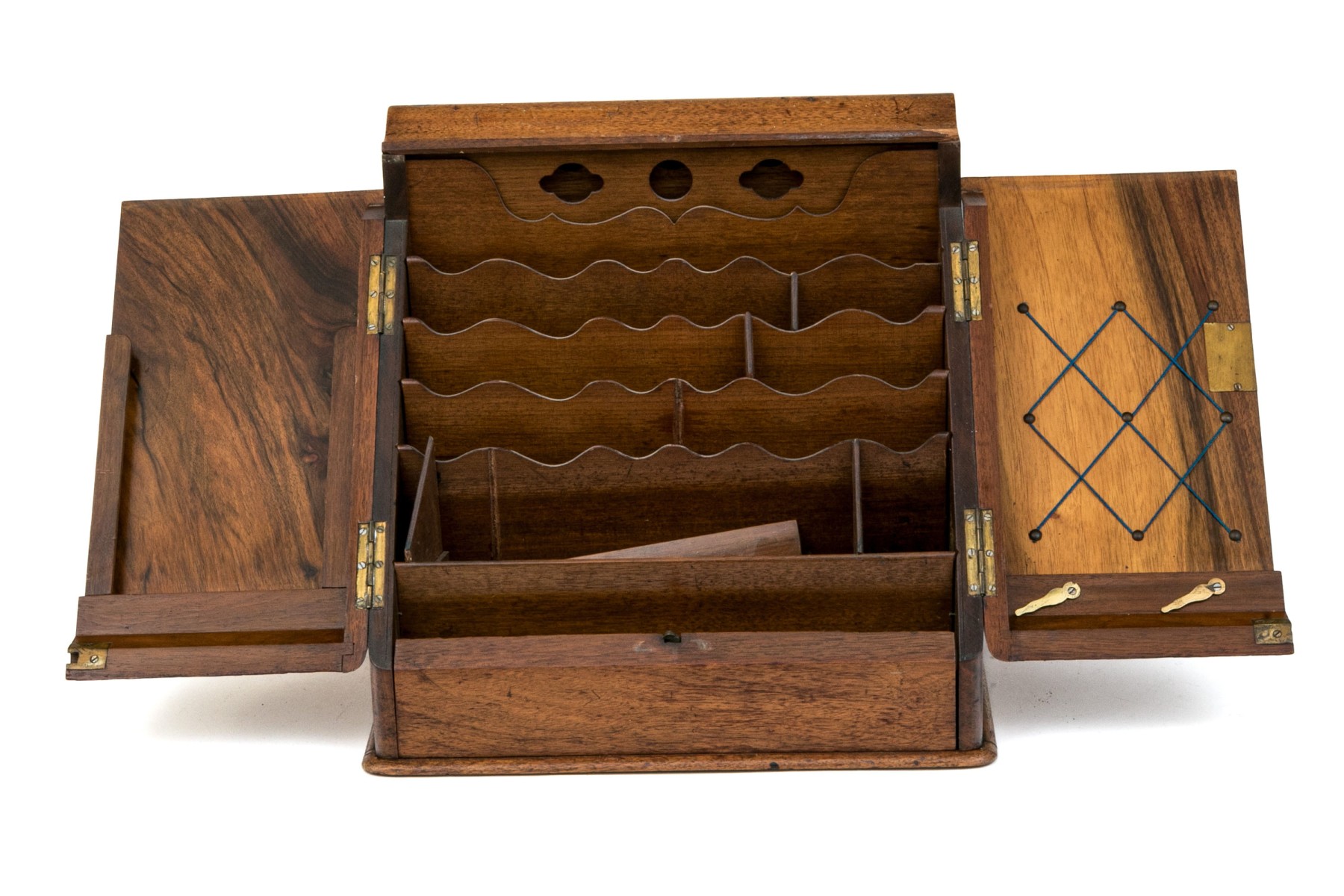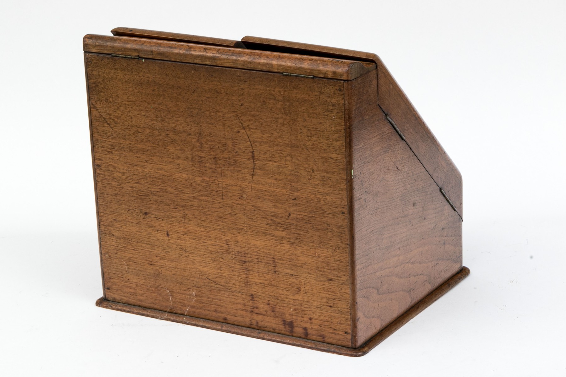 A fabulous circa 1860 English letter box in medium brown mahogany, featuring double slant-front doors opening to an interior of scalloped dividers.