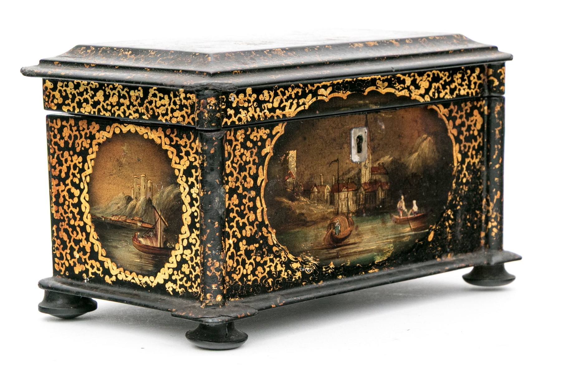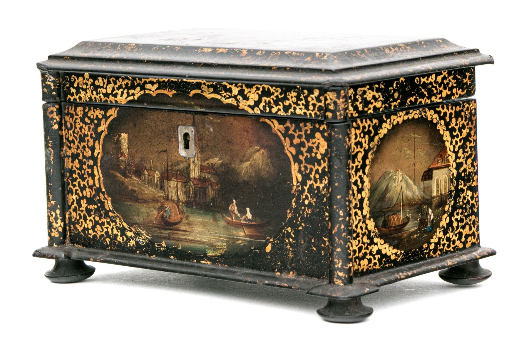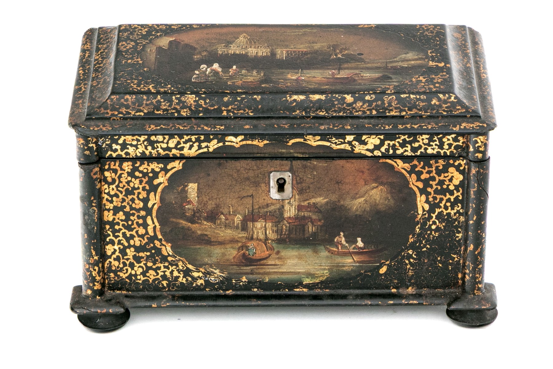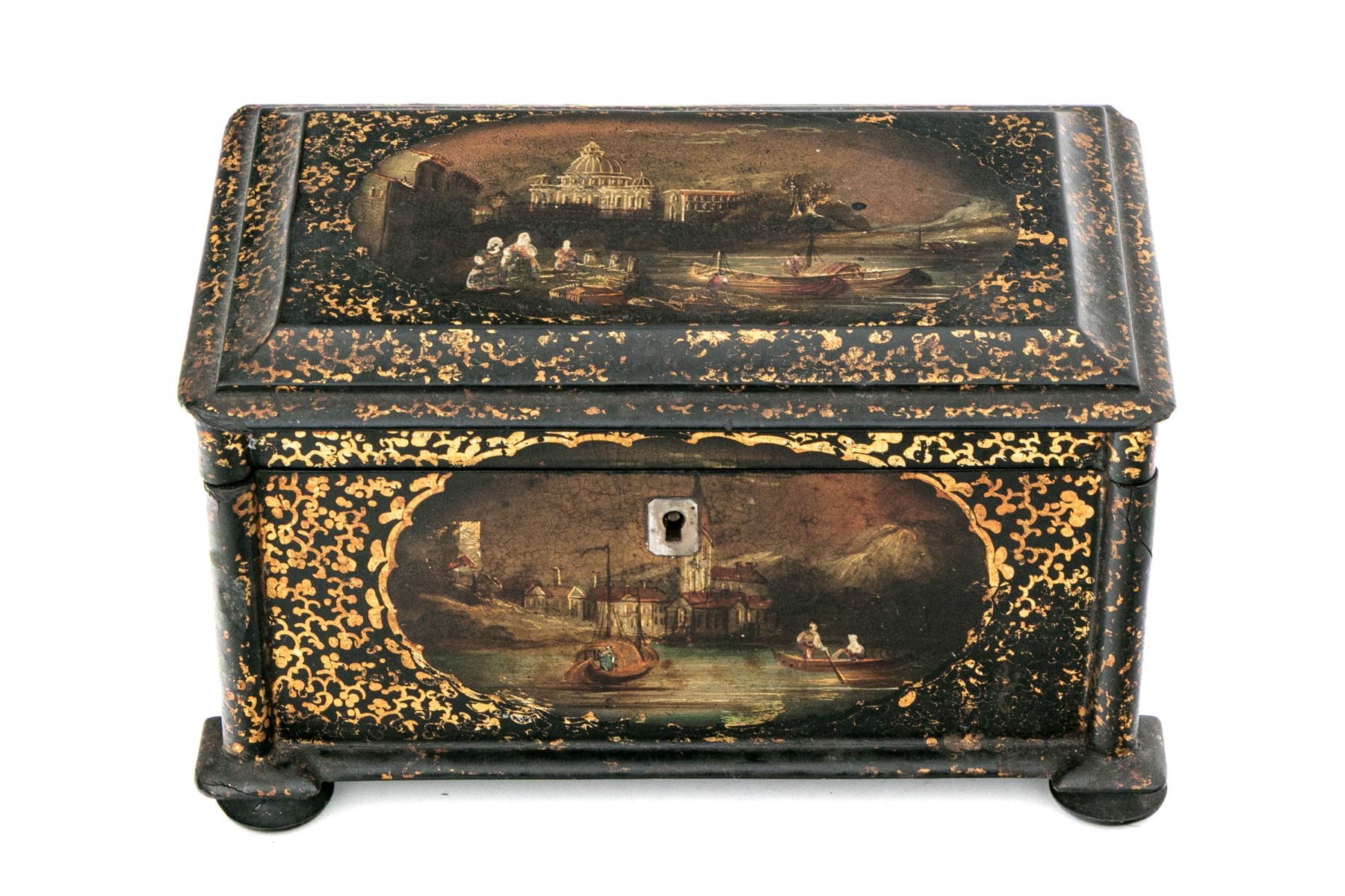 English Papier Mache Lacquered Tea Caddy, Ca. 1840-60 #442669. Black Rock Galleries provides high end estate liquidation services through online estate auctions and a 50,000 sq ft designer showroom. estate liquidator, estate sale, online auction, antiques, fine art, liquidation, clean outs, auction, consignment, interior design, fine jewelry, collectibles, appraisals, estate appraisals, estate services, decor, furniture, furniture consignment, antique center, consignment shop. We offer appraisal services and specialize in fine art, jewelry, antiques and decorative arts. Sell with us. Black Rock Galleries is the tri-state's largest estate liquidator serving New England and the greater New York City area. We are the trusted source for expert appraisals, auction services, estate sales, and consignments. Black Rock Galleries is the east coast's largest and most trusted estate liquidator, with locations in Connecticut, greater Boston, MA and Raleigh, NC, Fairfield, Southport, Apex, TX. We are the best source for expert appraisals, auction services, estate sales and consignments. We have served thousands of families and estates with compassion, professionalism and expertise. BRG works with attorneys, executors, realtors and families to bring the greatest return on personal and estate property in the current market. Our unique combination of services make us the easy choice to get the job done in a timely and stress-free manner. We are with you from the initial consultation to the final clean out. Our house-built online auction software platform offers clients a dynamic approach to liquidating their personal property. This venue is most successful in bringing the best return with the least amount of disruption for our clients. See our services page for a complete description of this offering. English Papier Mache Lacquered Tea Caddy, Ca. 1840-60 #442669