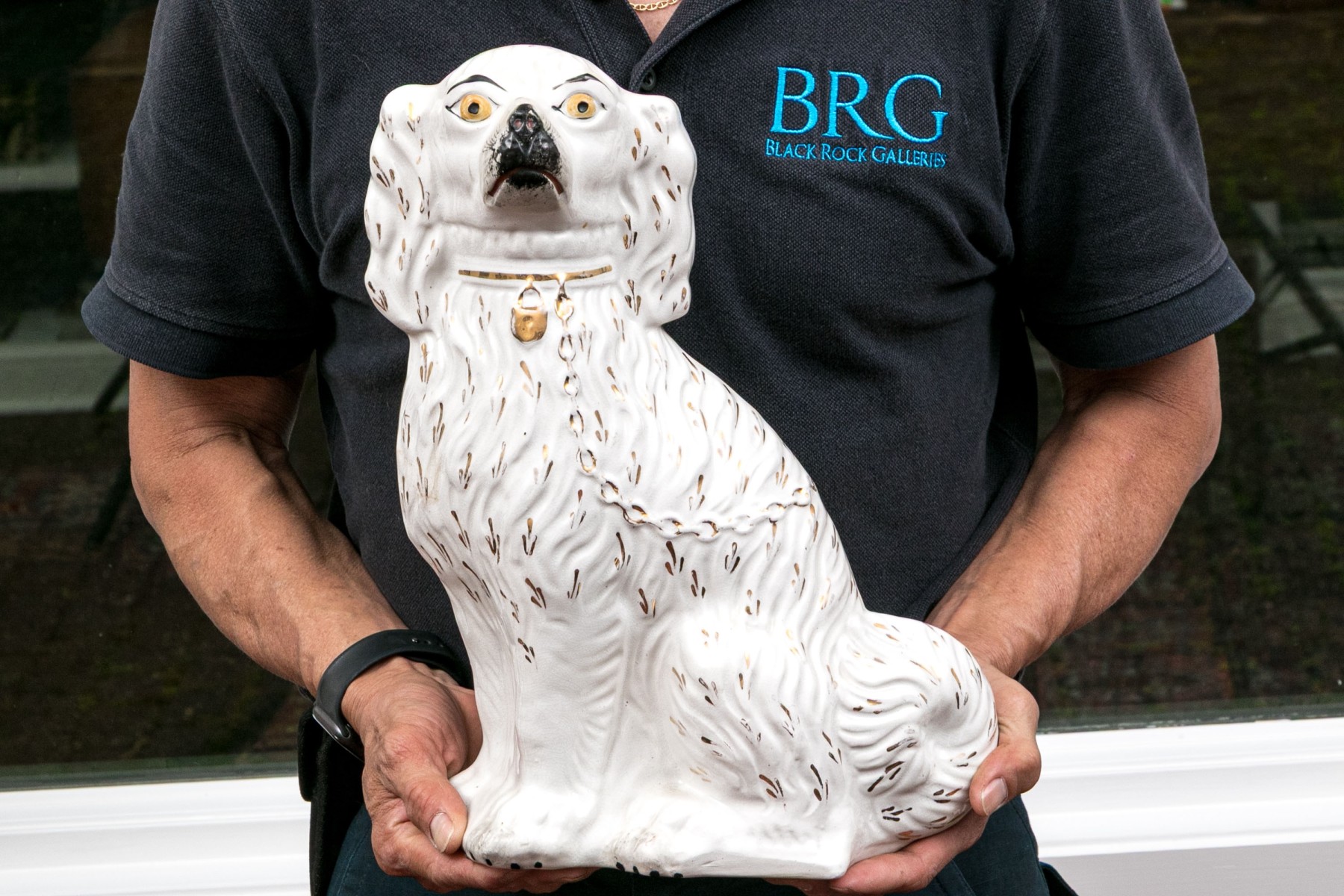 English Staffordshire Ceramic Spaniel #448519. Black Rock Galleries provides high end estate liquidation services through online estate auctions and a 50,000 sq ft designer showroom. estate liquidator, estate sale, online auction, antiques, fine art, liquidation, clean outs, auction, consignment, interior design, fine jewelry, collectibles, appraisals, estate appraisals, estate services, decor, furniture, furniture consignment, antique center, consignment shop. We offer appraisal services and specialize in fine art, jewelry, antiques and decorative arts. Sell with us. Black Rock Galleries is the tri-state's largest estate liquidator serving New England and the greater New York City area. We are the trusted source for expert appraisals, auction services, estate sales, and consignments. Black Rock Galleries is the east coast's largest and most trusted estate liquidator, with locations in Connecticut, greater Boston, MA and Raleigh, NC, Fairfield, Southport, Apex, TX. We are the best source for expert appraisals, auction services, estate sales and consignments. We have served thousands of families and estates with compassion, professionalism and expertise. BRG works with attorneys, executors, realtors and families to bring the greatest return on personal and estate property in the current market. Our unique combination of services make us the easy choice to get the job done in a timely and stress-free manner. We are with you from the initial consultation to the final clean out. Our house-built online auction software platform offers clients a dynamic approach to liquidating their personal property. This venue is most successful in bringing the best return with the least amount of disruption for our clients. See our services page for a complete description of this offering. English Staffordshire Ceramic Spaniel #448519