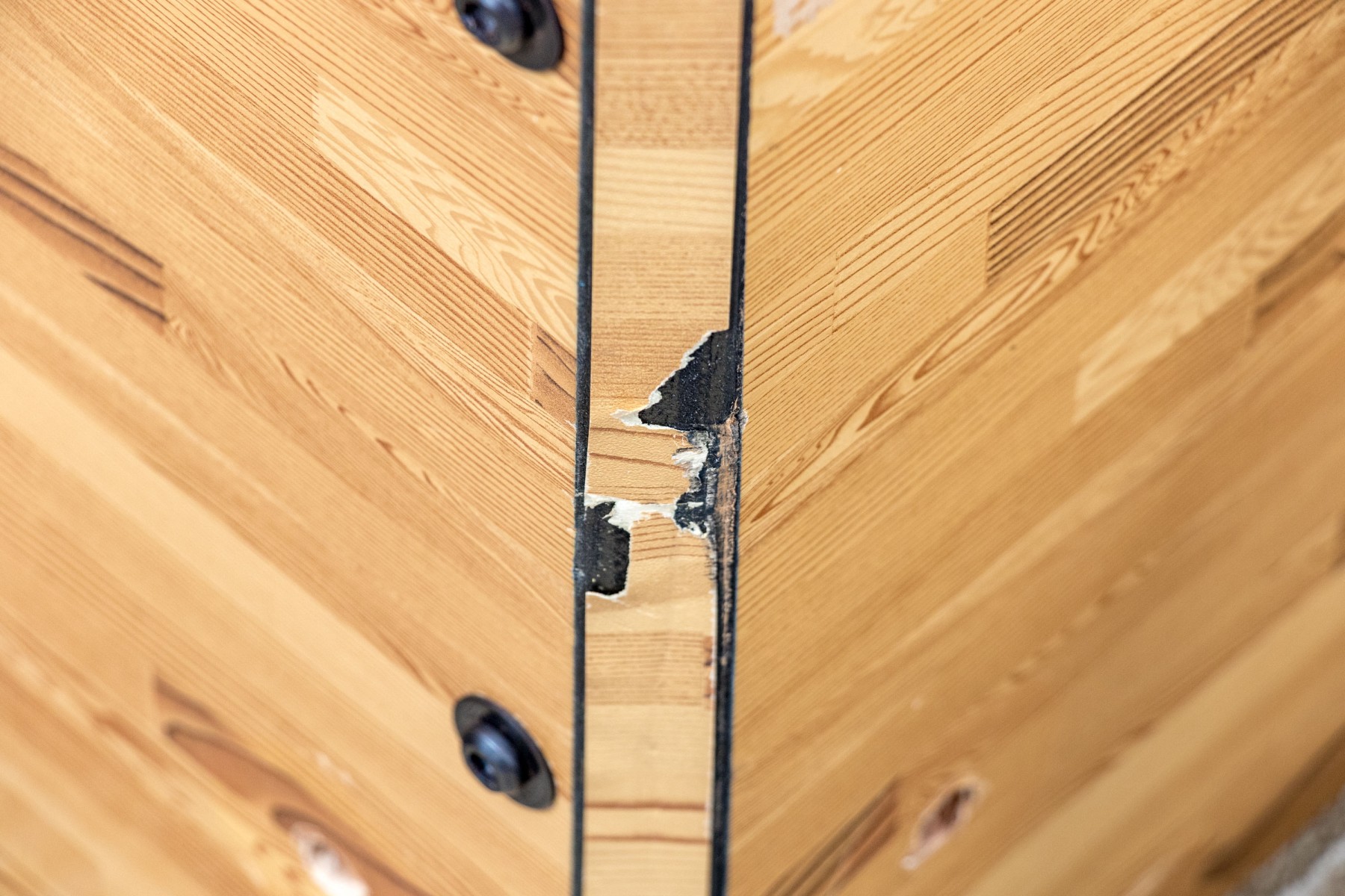 Corners and ends are delaminating on both sides and marker inscribed markings to one end. Fair condition.