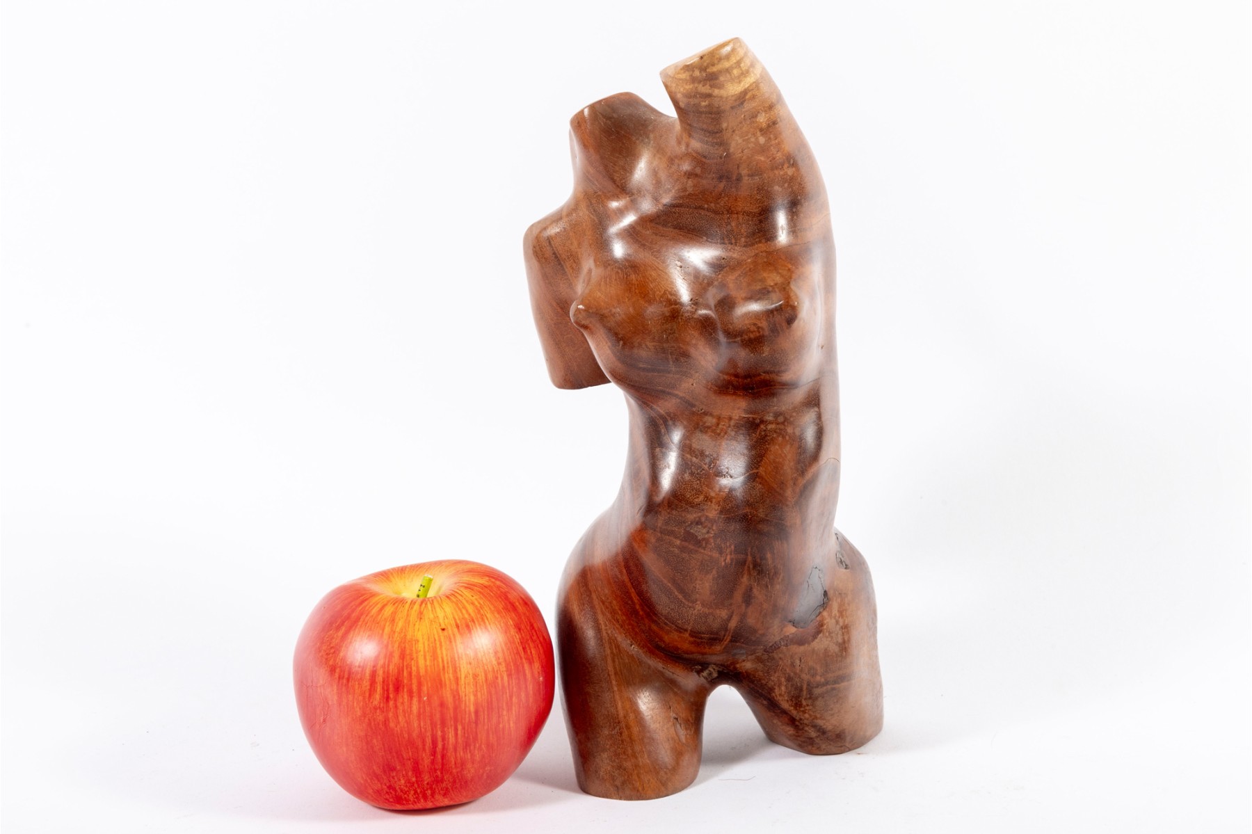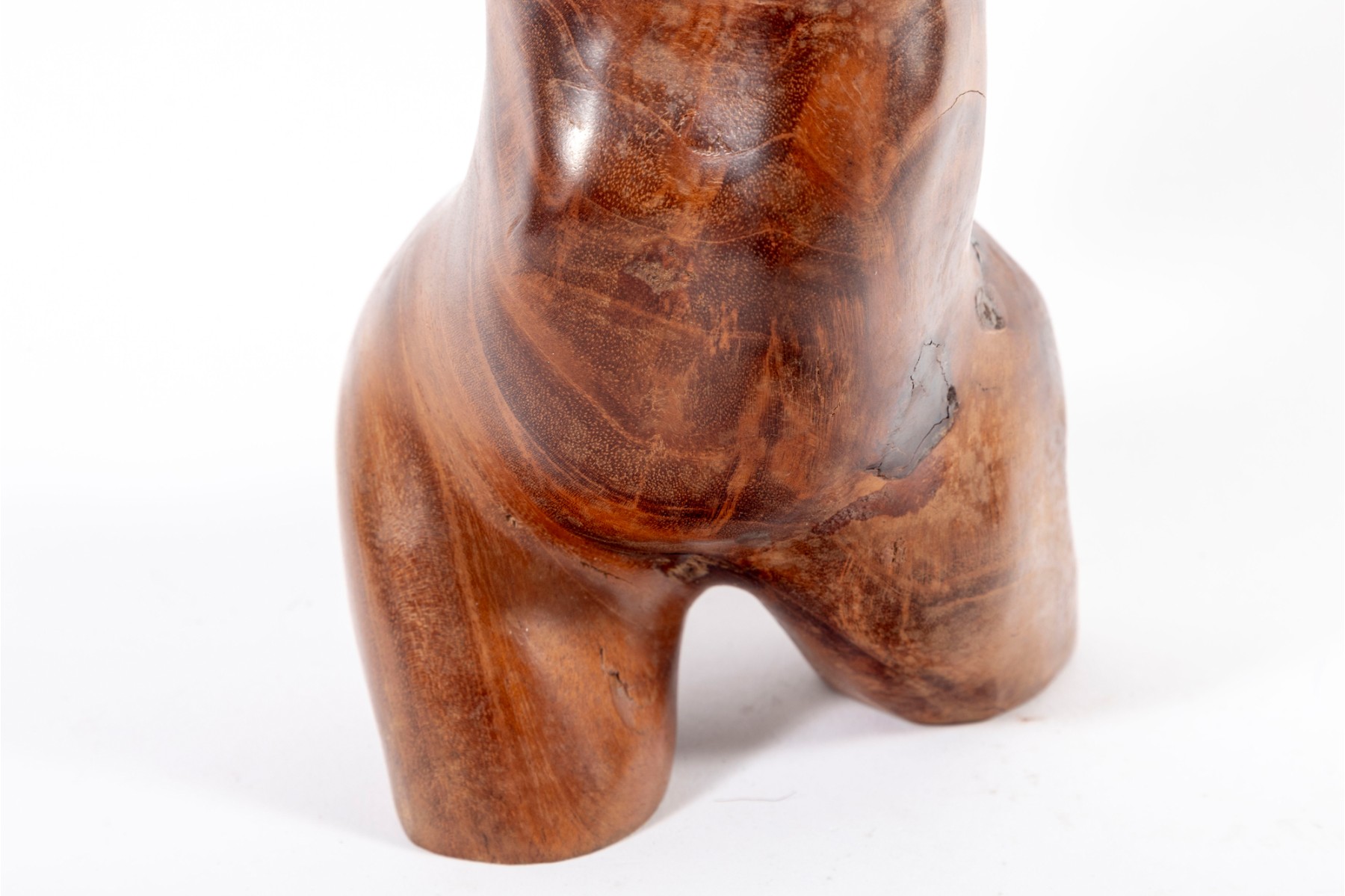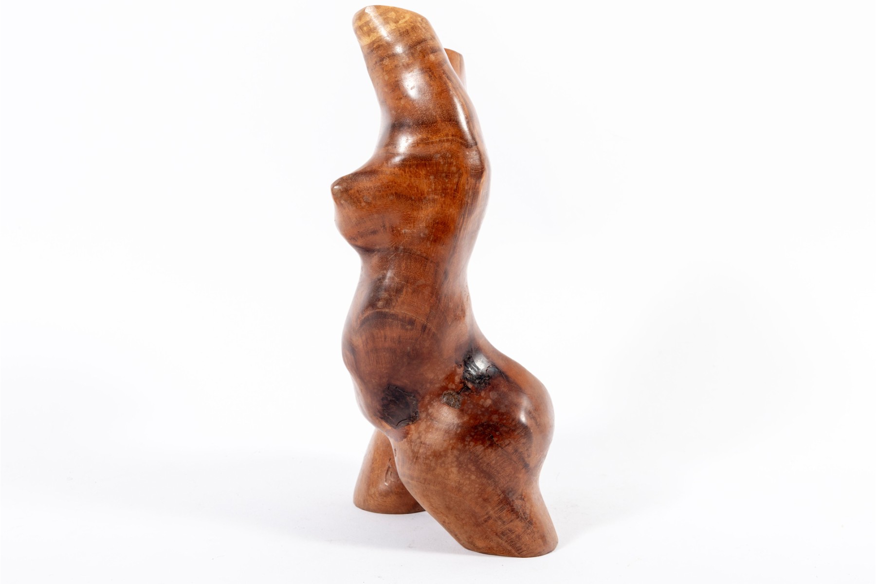 A signed figural wood carving by Epigmenio Lopez, a remarkable piece of Mexican folk art in the female form set with a semi-gloss finish.