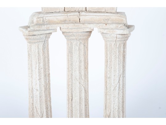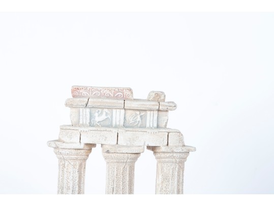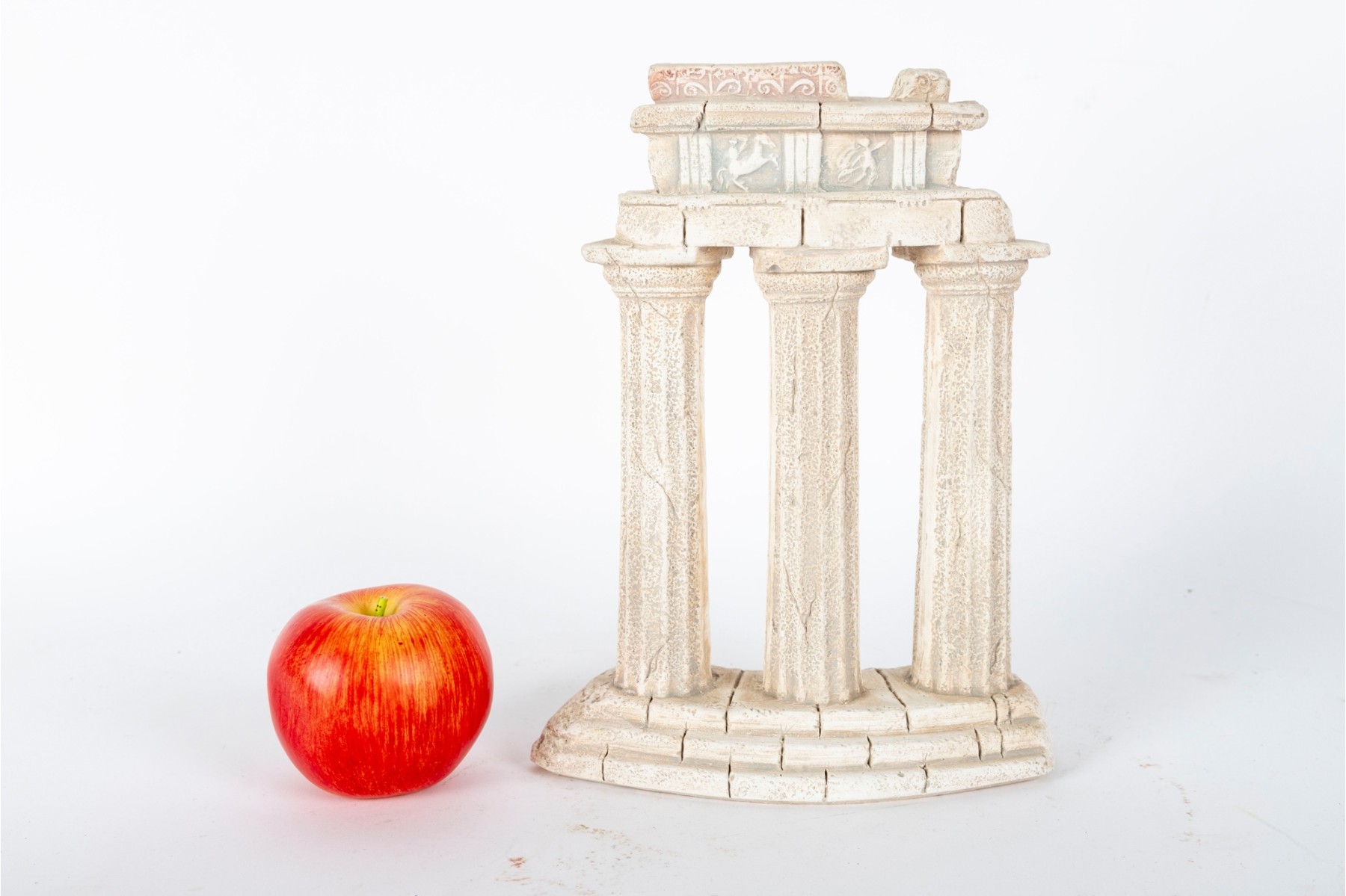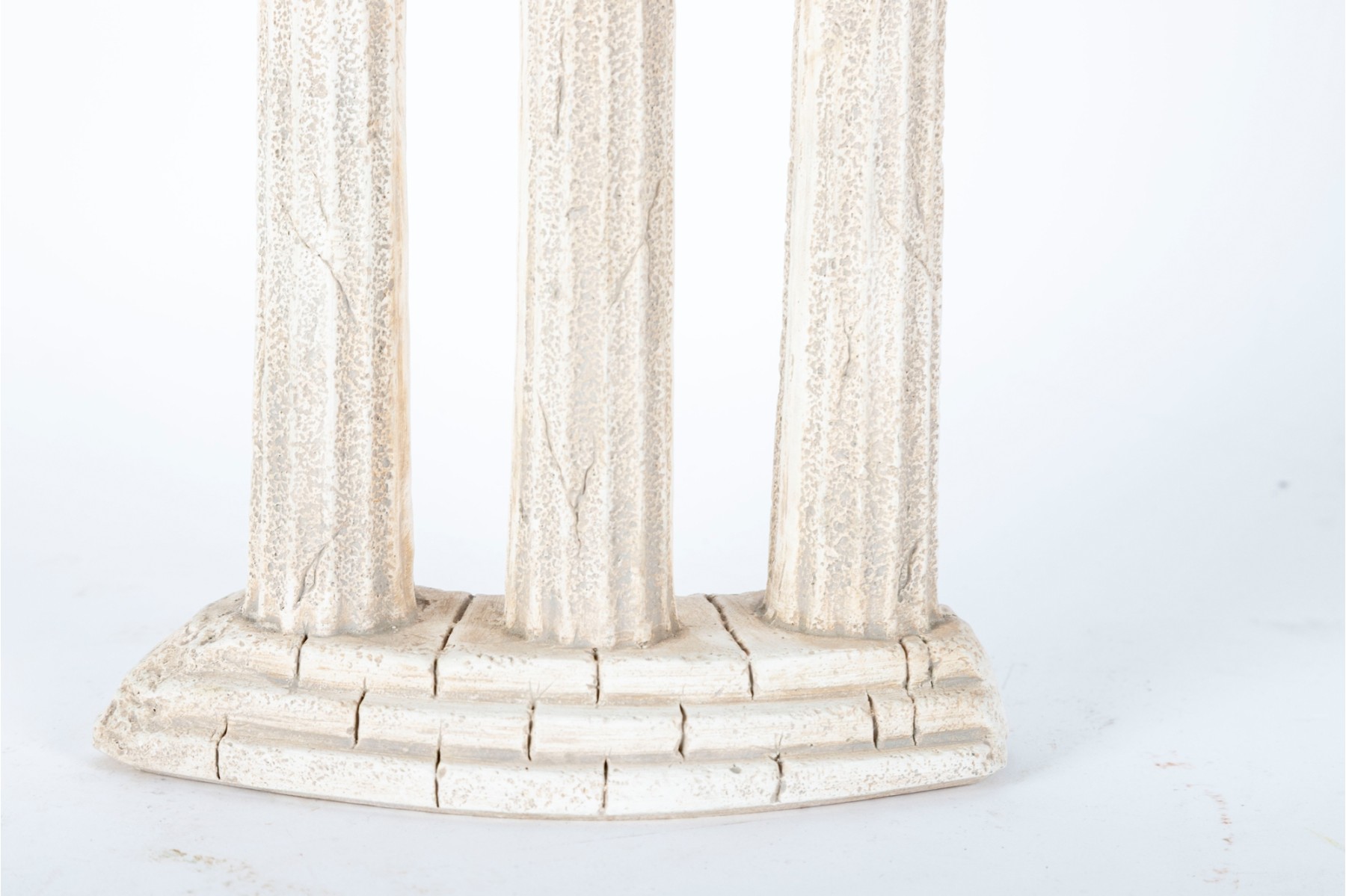 A decorative sculpture of three standing columns, likely a replica from Greece's historic architecture. Standing at a mere 10" tall, this piece is perfect for sophisticated desktop display.