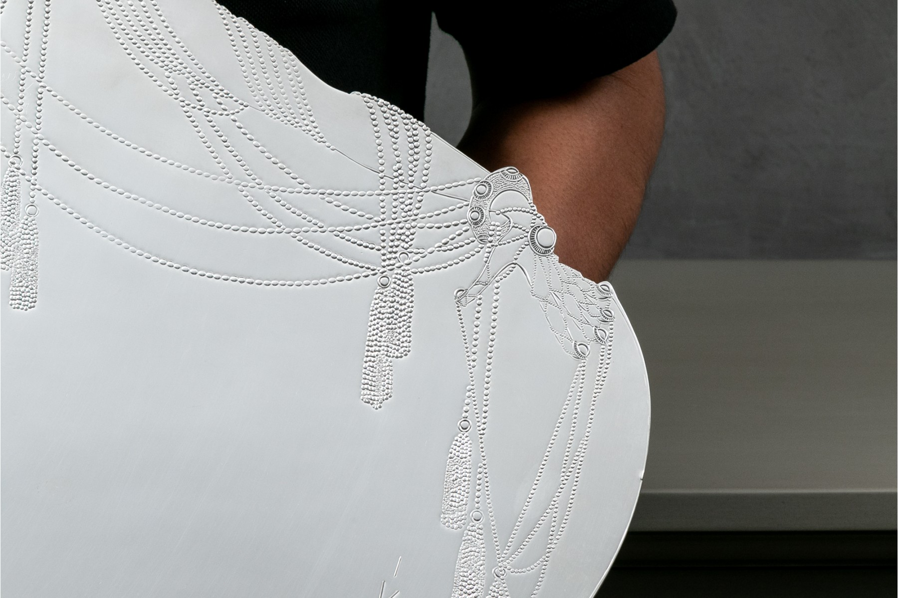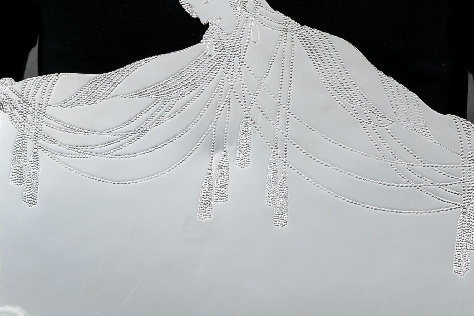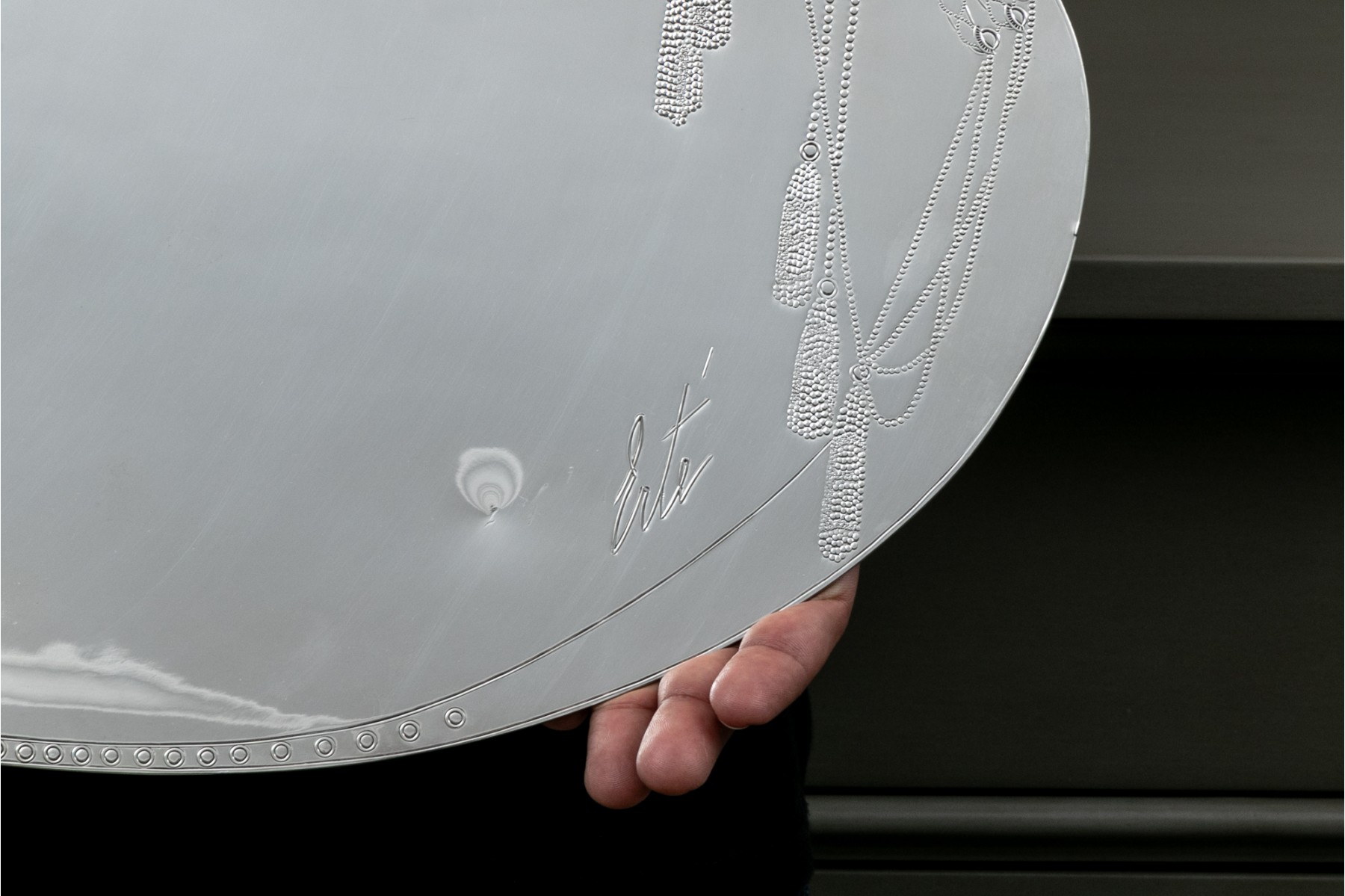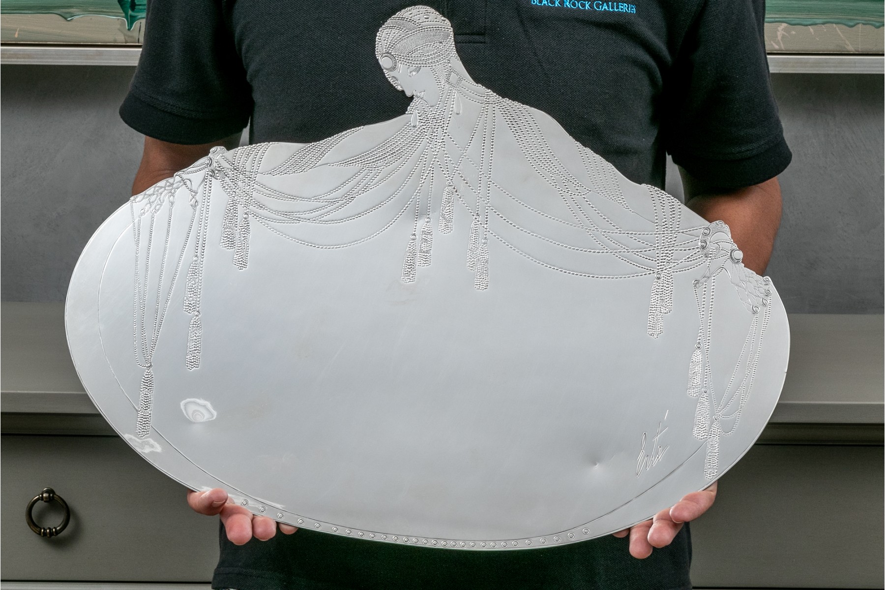 This Erte Sevenarts Limited footed tray ,a stunning collectible. It features a signature etch in the lower right corner and is marked on the back "1989.