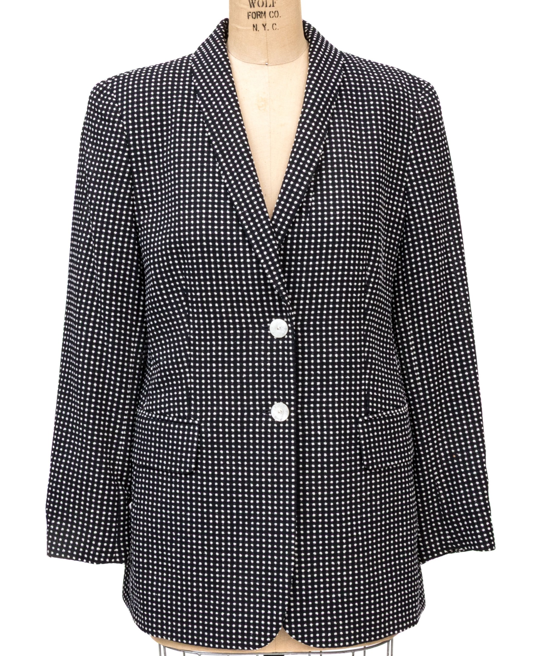 Escada Margaretha Ley black and white polka dotted collared blazer, size 40