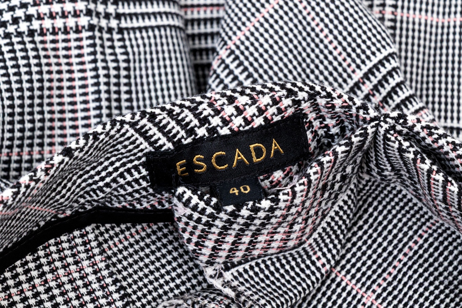 Escada striking plaid double breasted pants suit, size 40, please see note