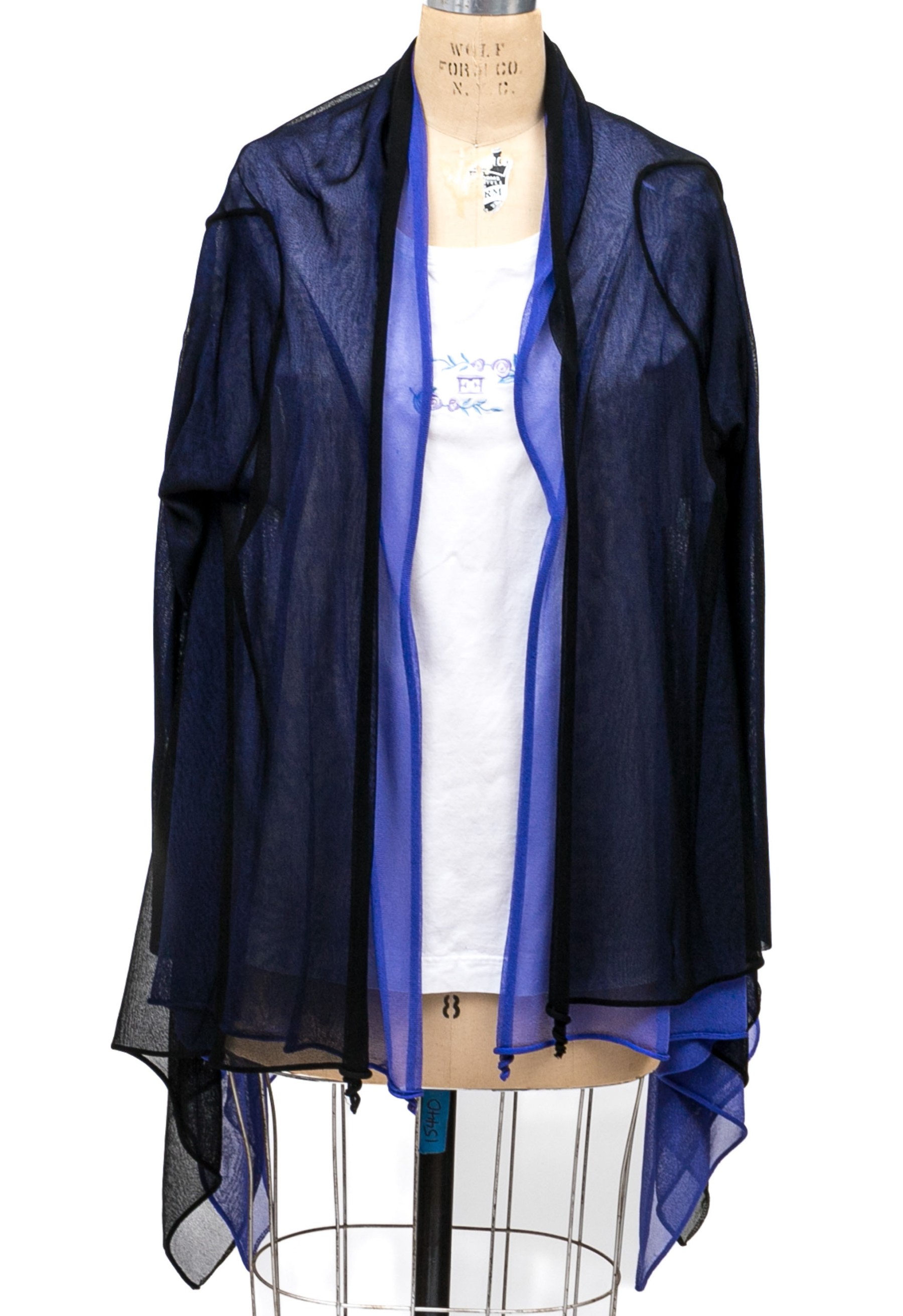 Escada white t-shirt, size 42, with purple and black viscose cardigan, size 44