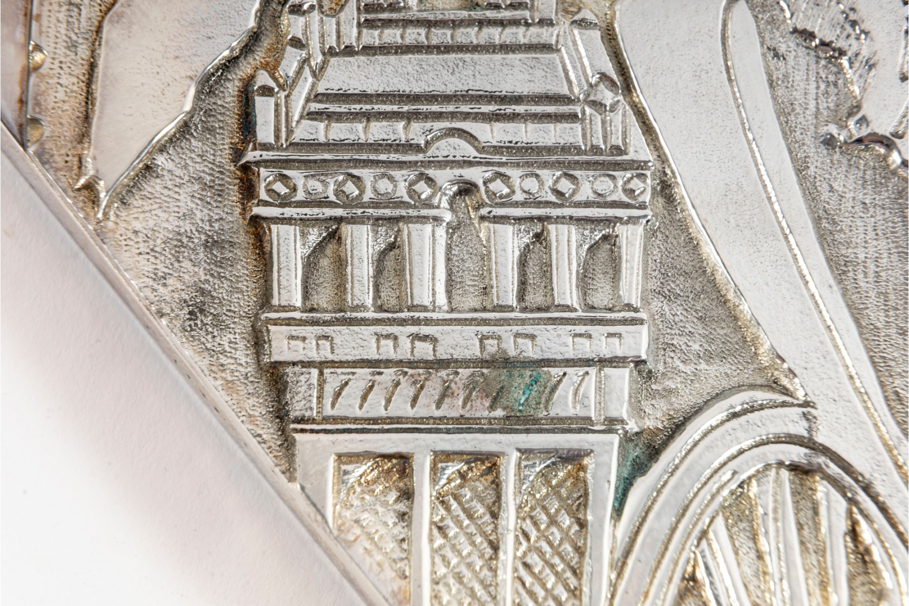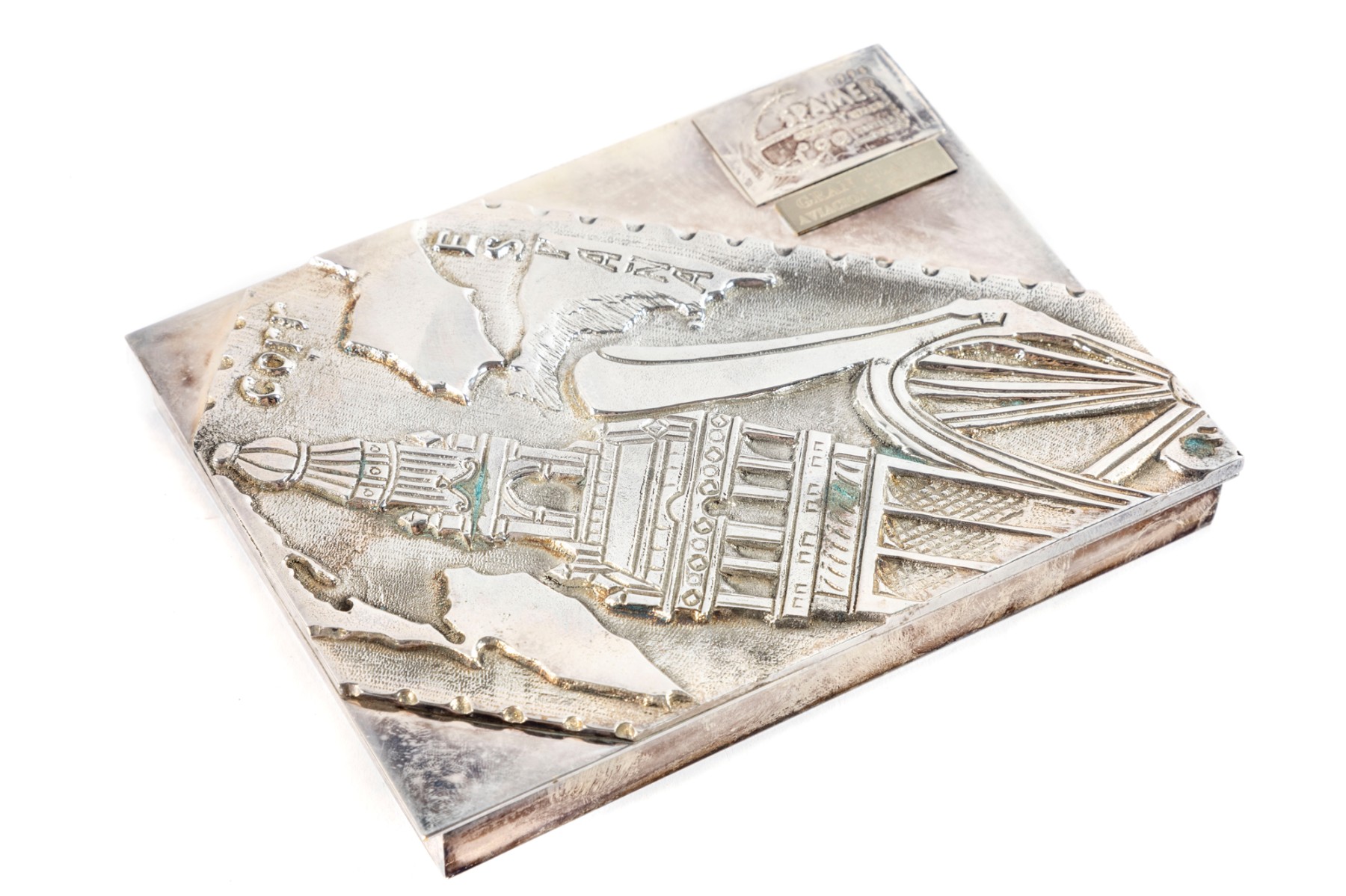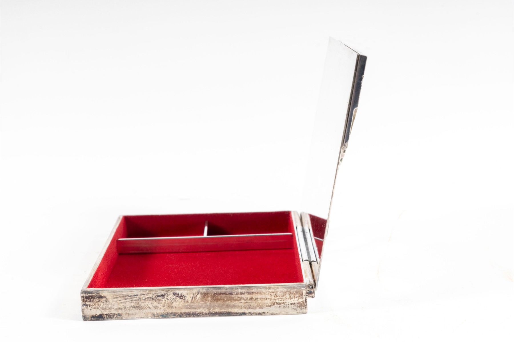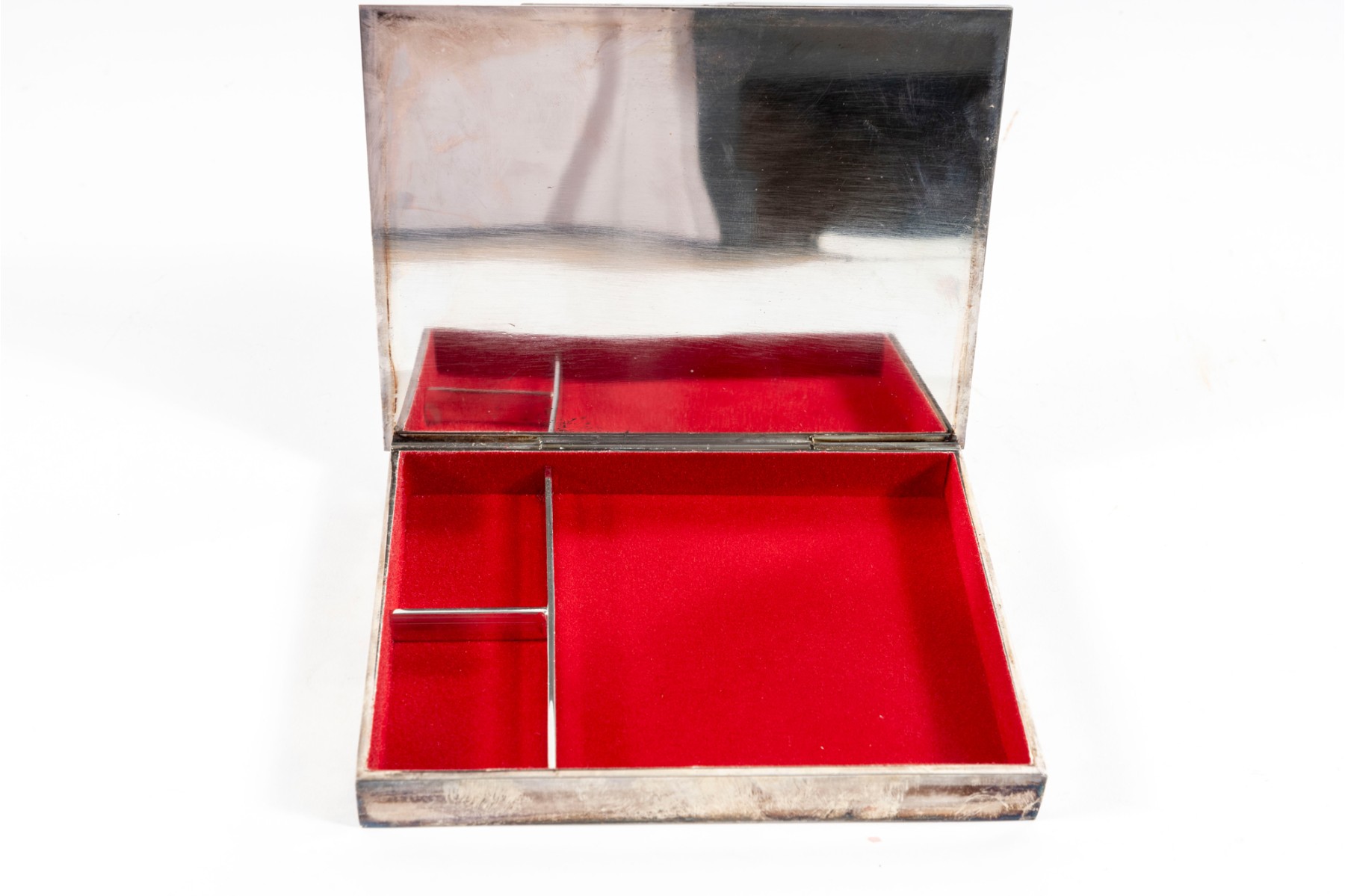 The 1993 Espamer Seville Exhibition was briefly home to 60 stands from varying countries where it was possible to purchase material supplied by their postal administrations relating to the Seville Exhibition. Among various medals minted in silver and copper, this Jewelry box was produced for the event. Silver plated with a mirror finish, the interior is divided with a red felt-lined surface. Case included.