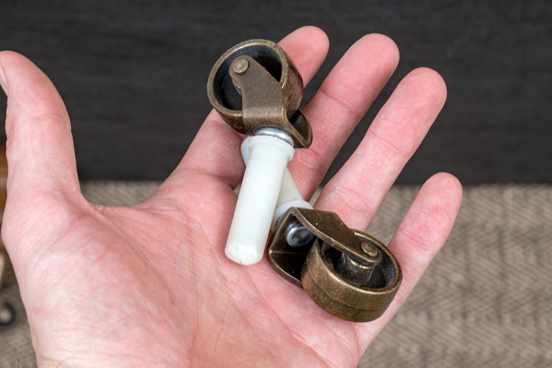 Condition: Two of the casters have come loose from the feet and will need to be restored and re affixed. There is slight wear to the leather commensurate with some light age and use and is slightly sun struck but overall presents well.